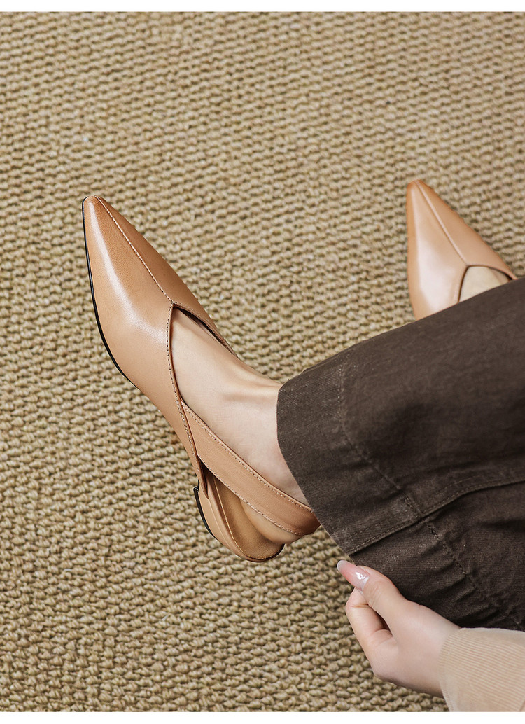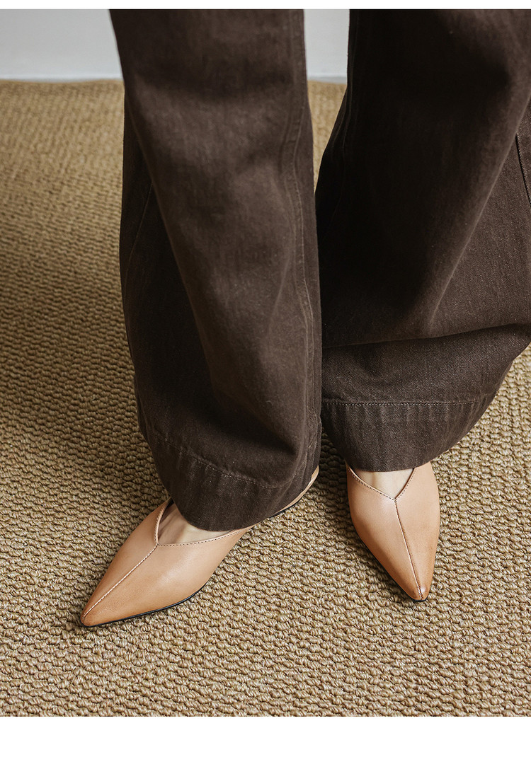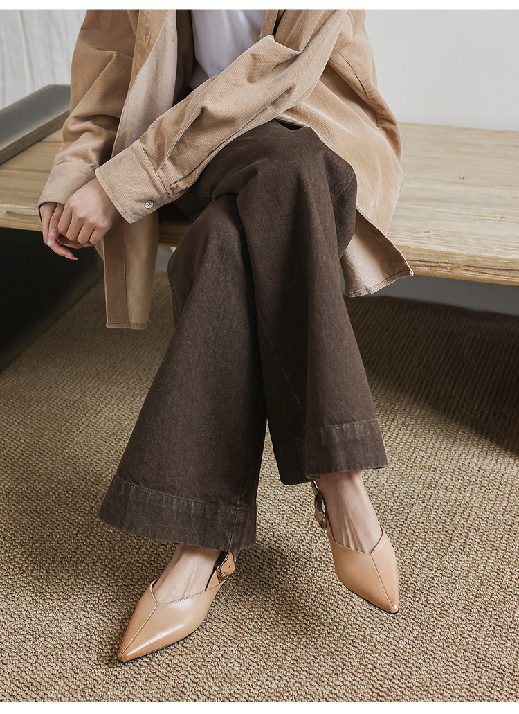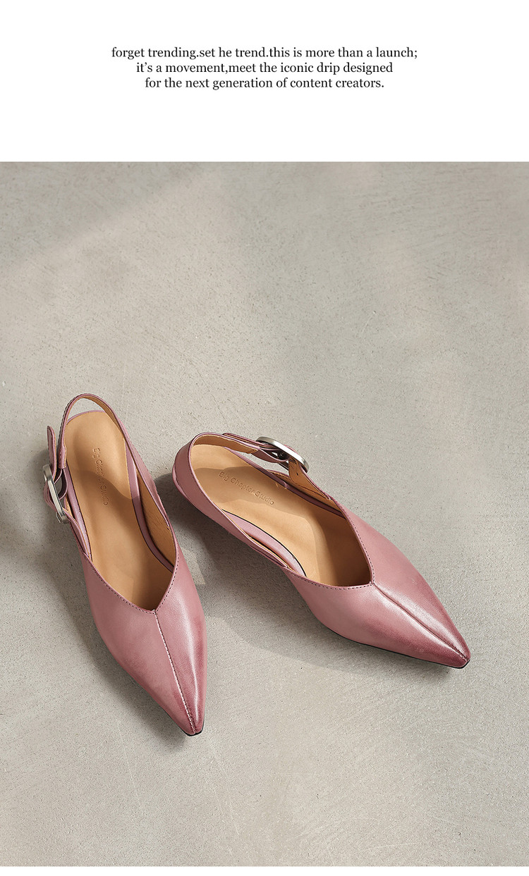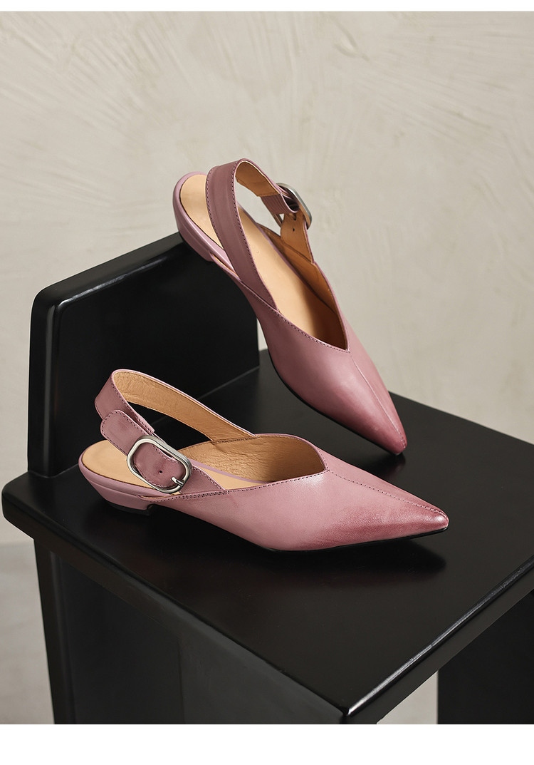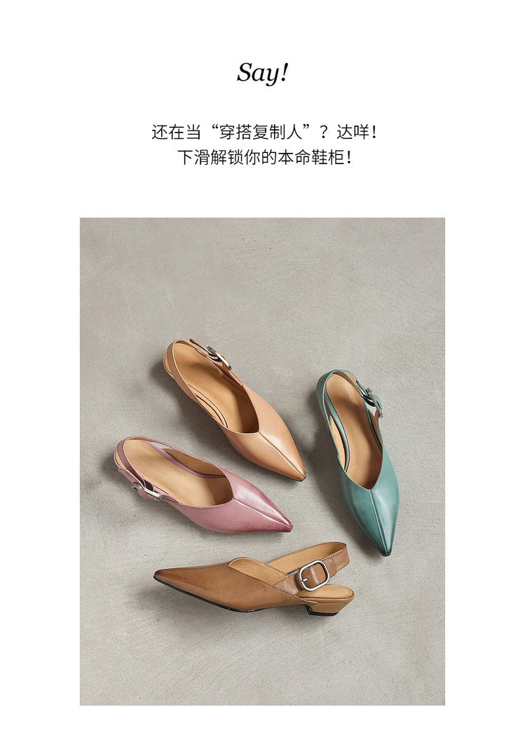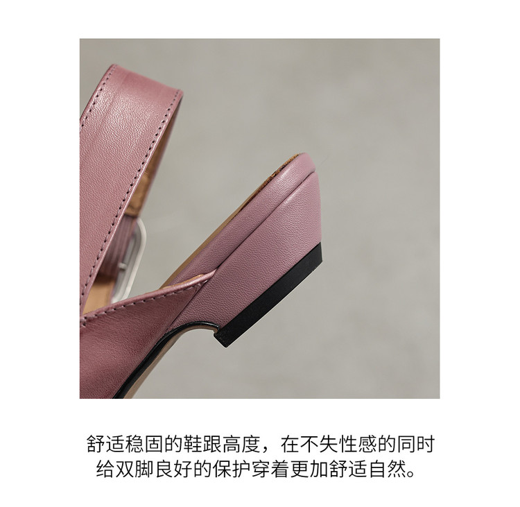 【预售5天】新款百搭一字带后空平底凉鞋女夏粗跟低跟尖头复古单鞋小皮鞋MX&mx26-099