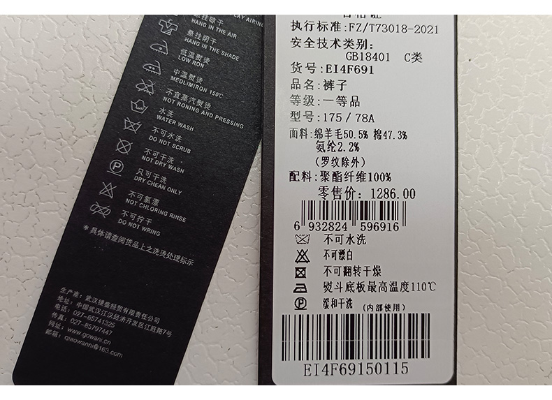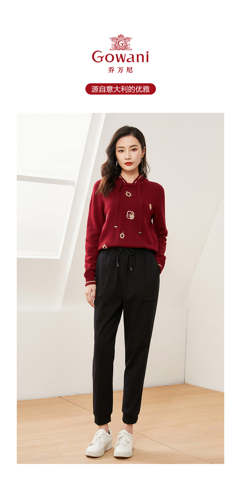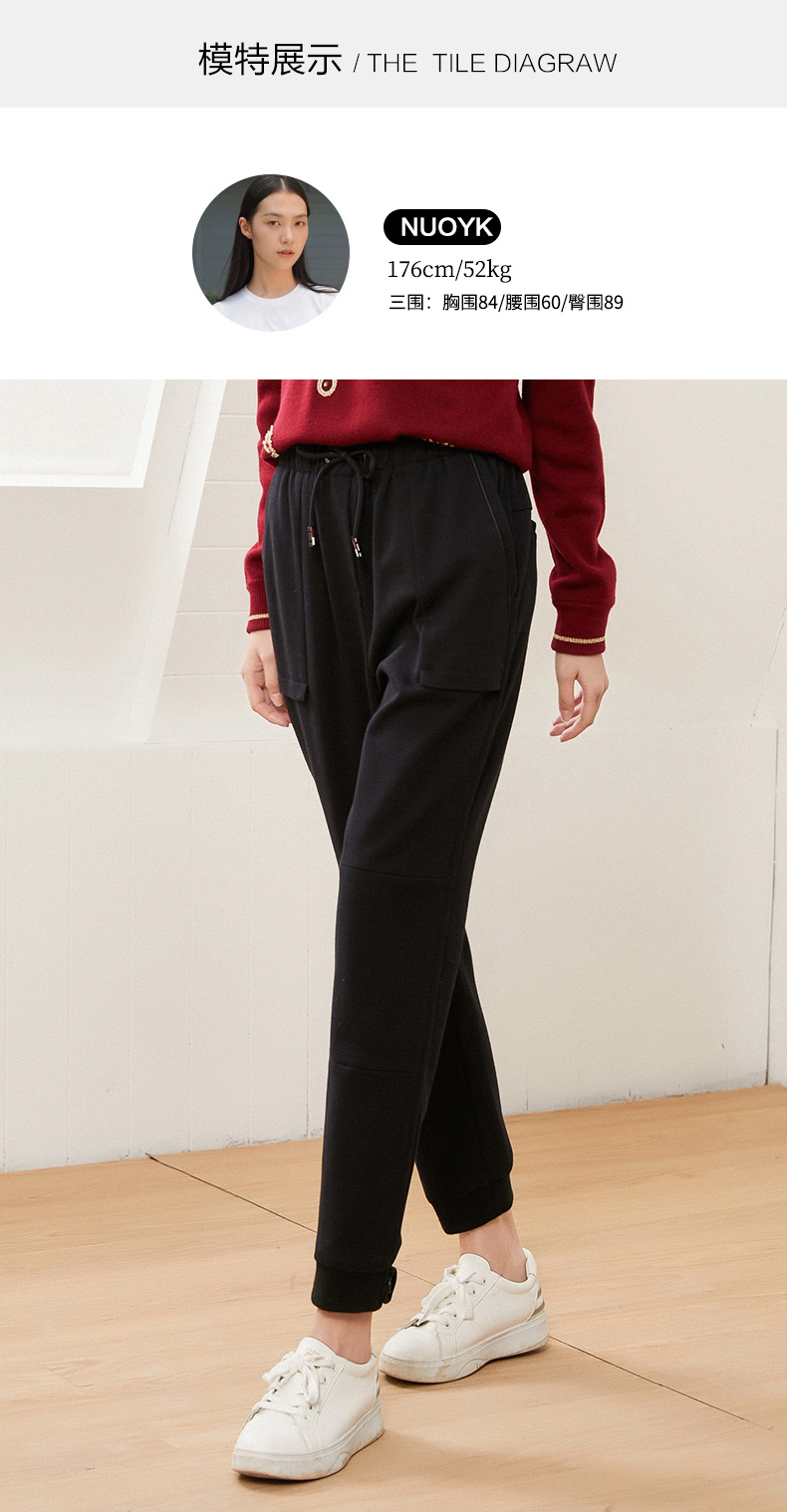 乔万尼休闲裤绵羊毛保暖长裤高腰松紧束脚裤EI4F691