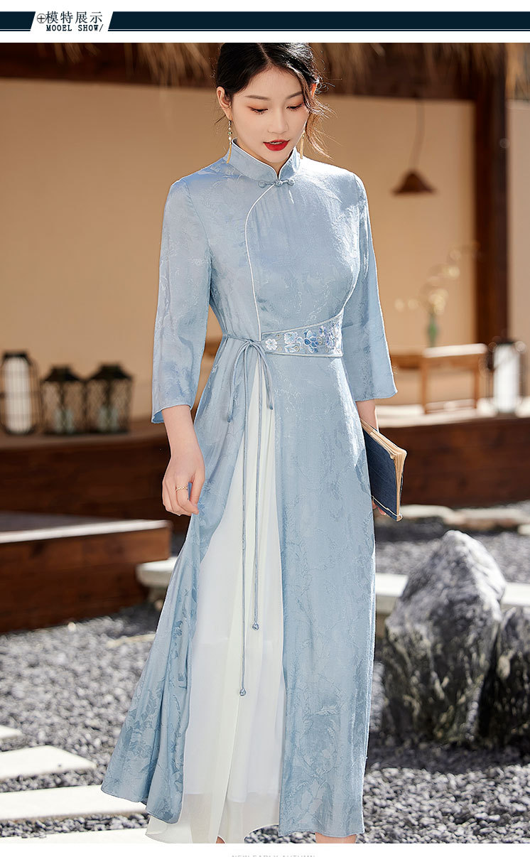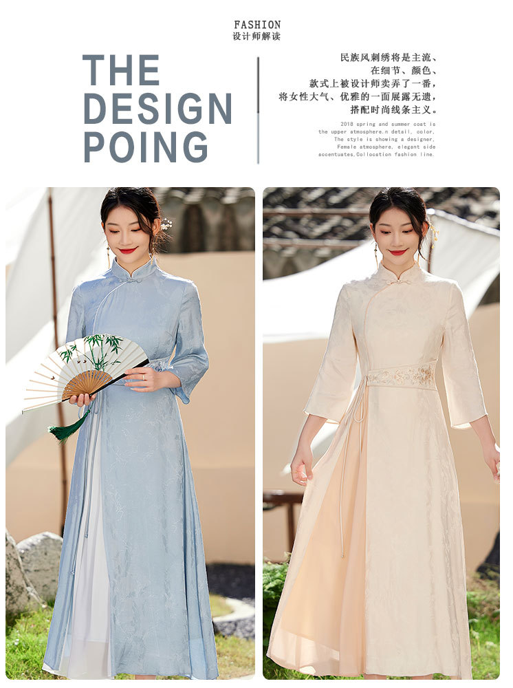 春夏茶服仙女装,复古民族日常年轻款改良奥黛旗袍连衣裙OG-9140