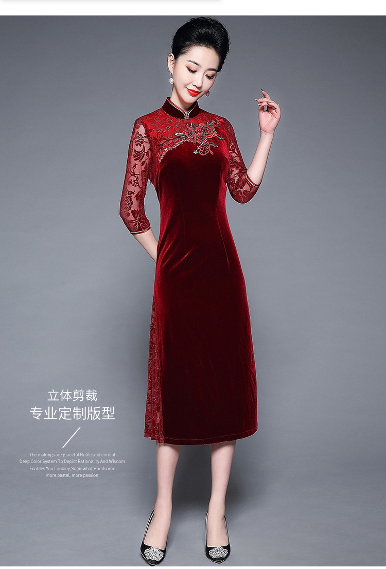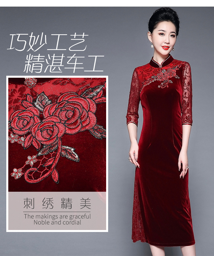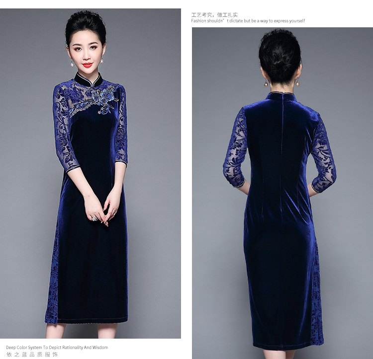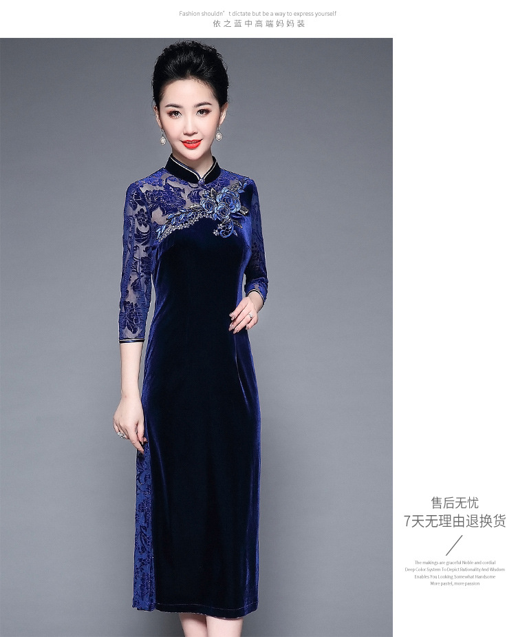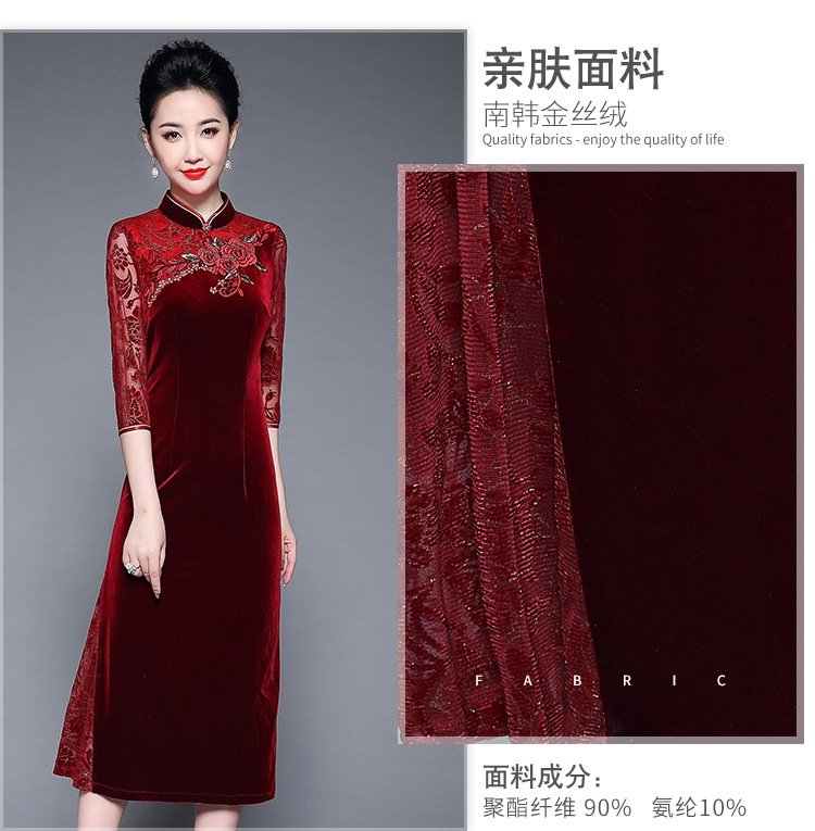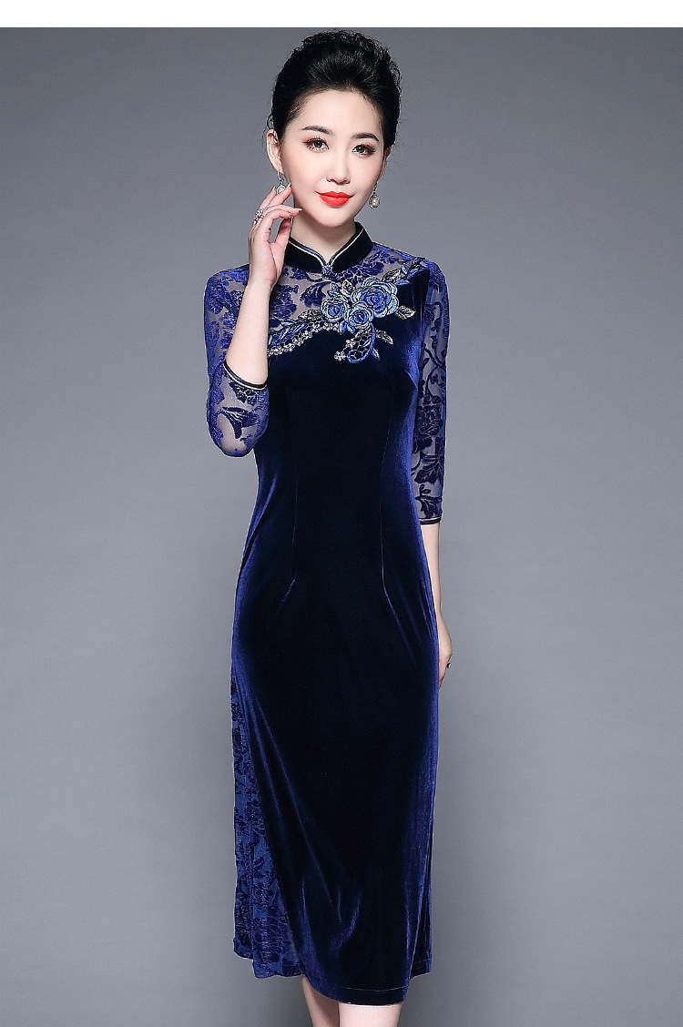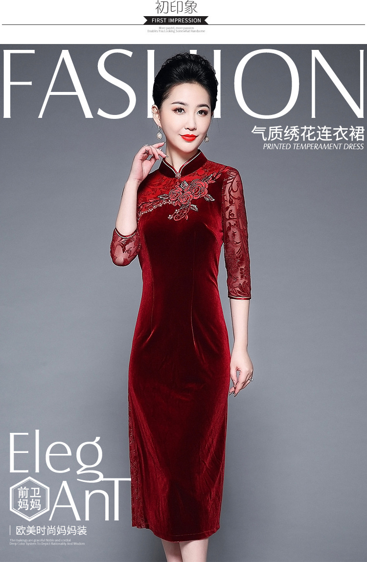 YZL-683新款欧美大牌印花刺绣长袖圆领高腰连衣裙TZW