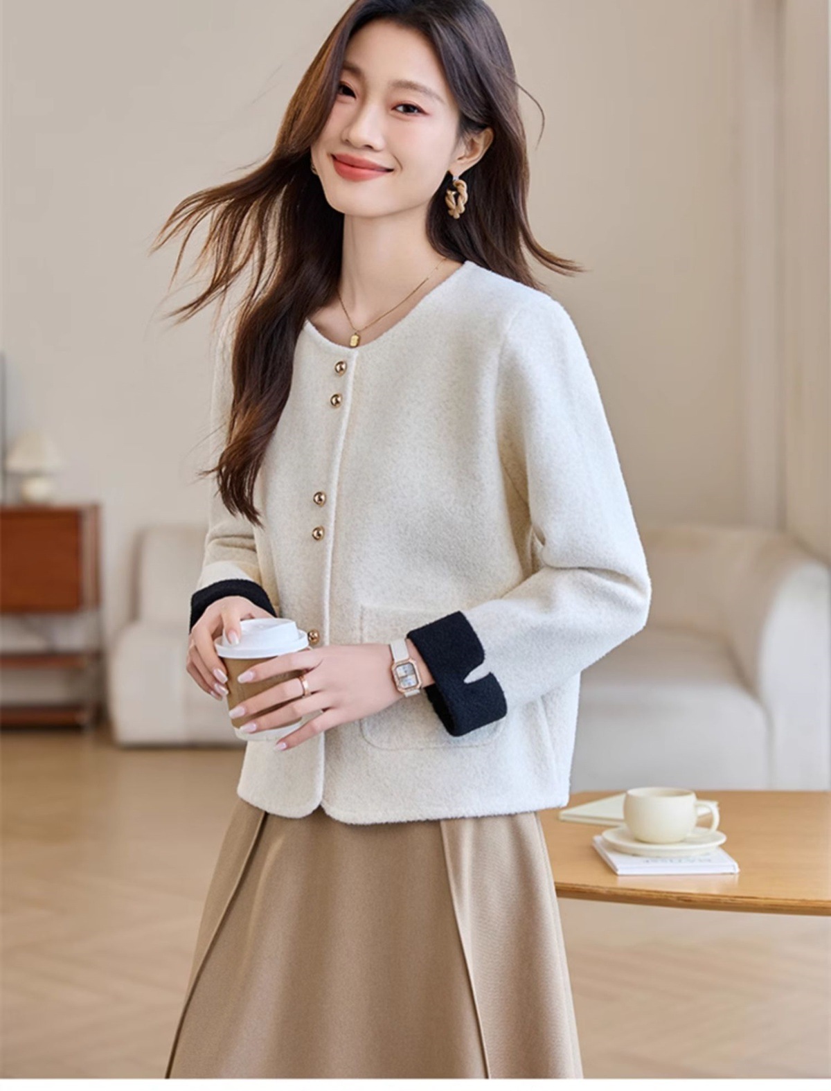 时尚减龄洋气短外套,休闲百搭小香风上衣HRYZ22507