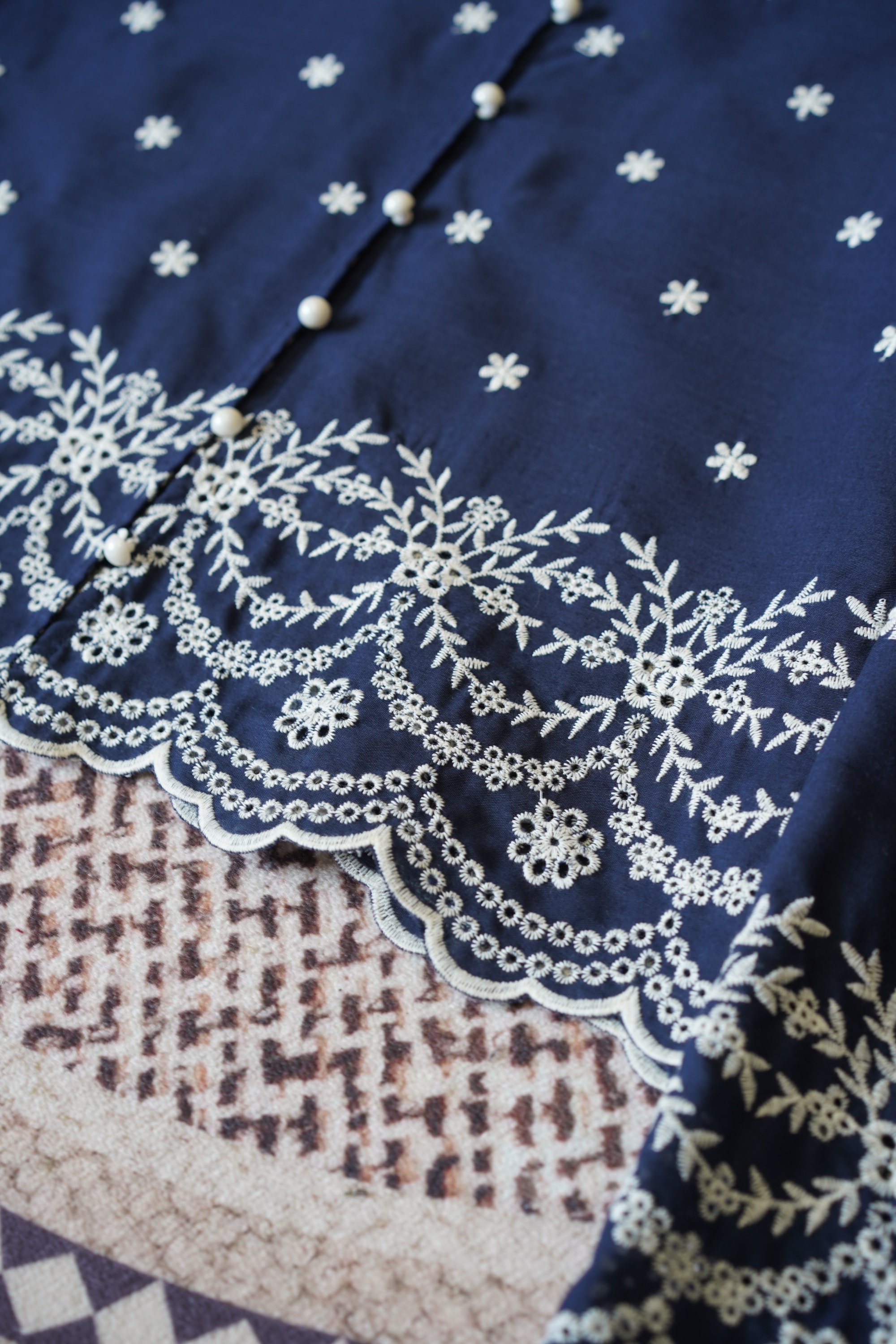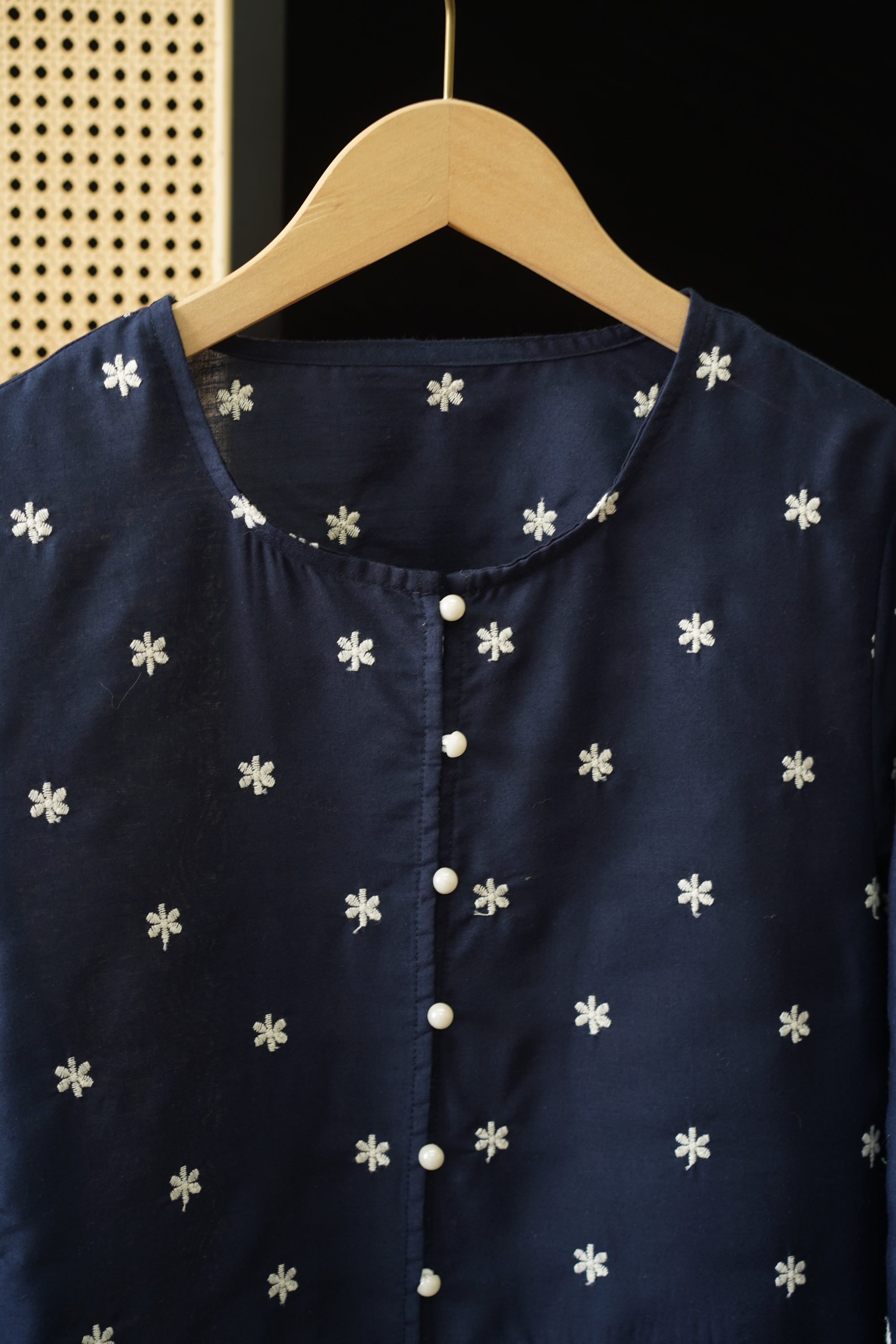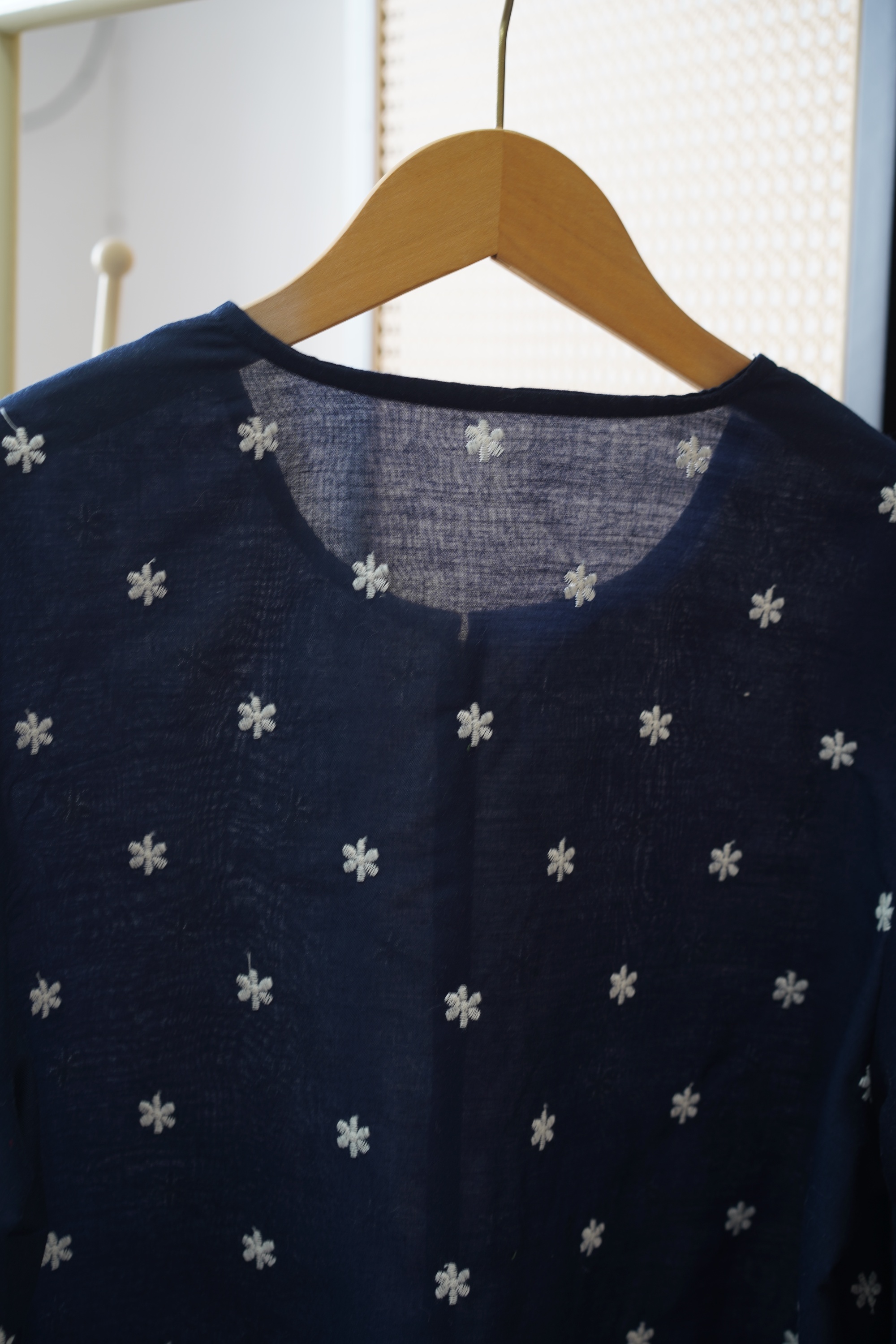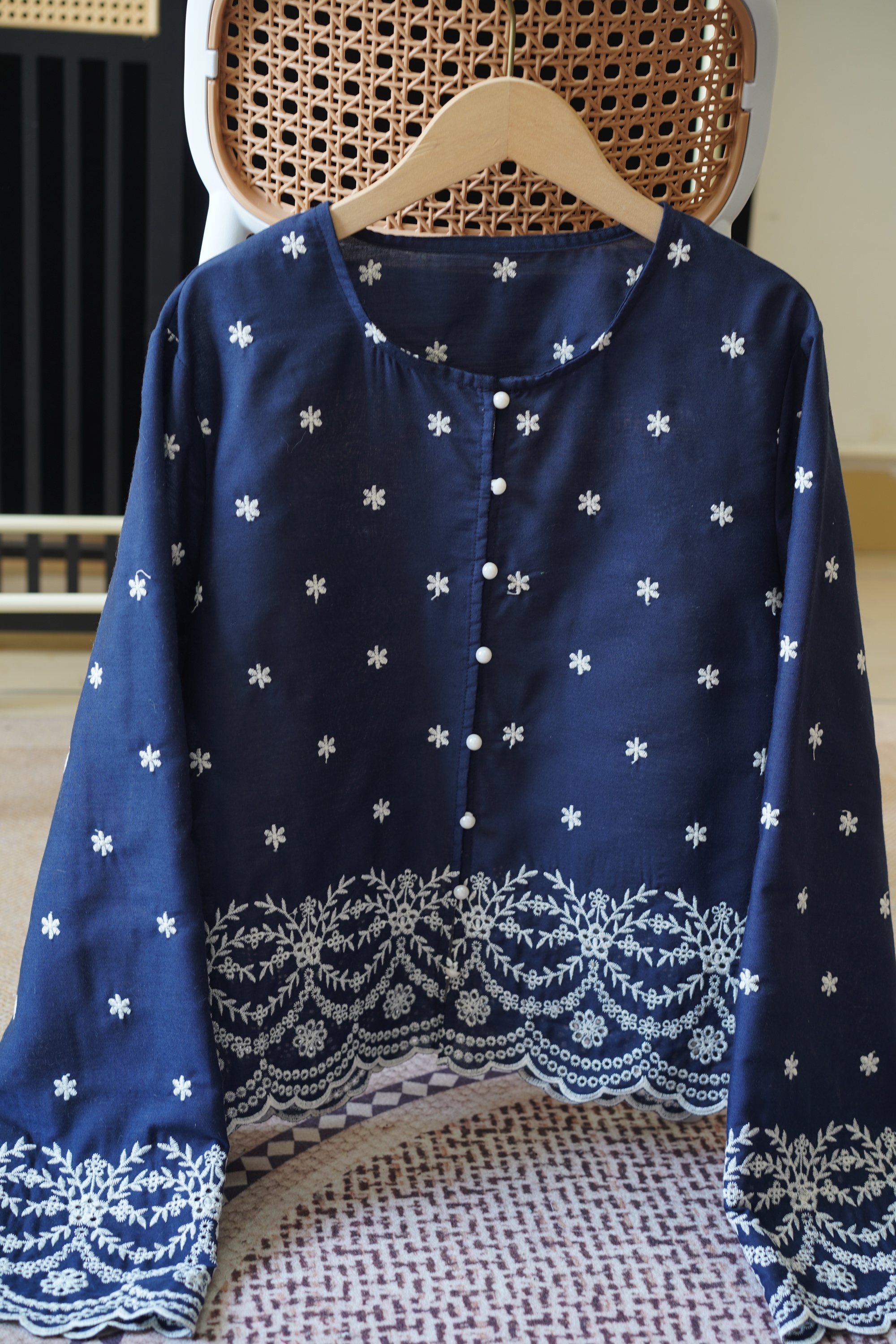 藏青色撞白满天星刺绣花边上衣:棉50% 涤纶50%