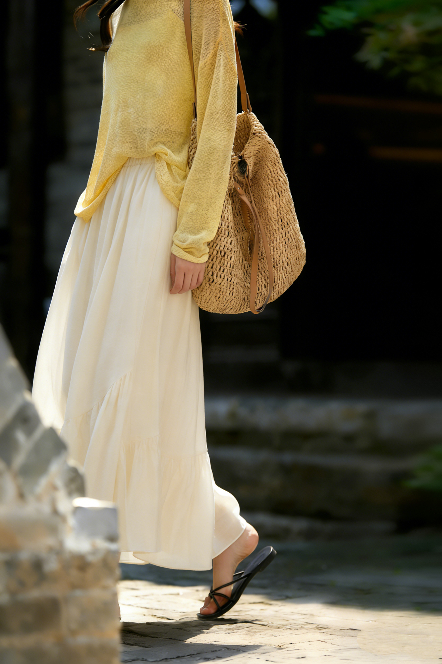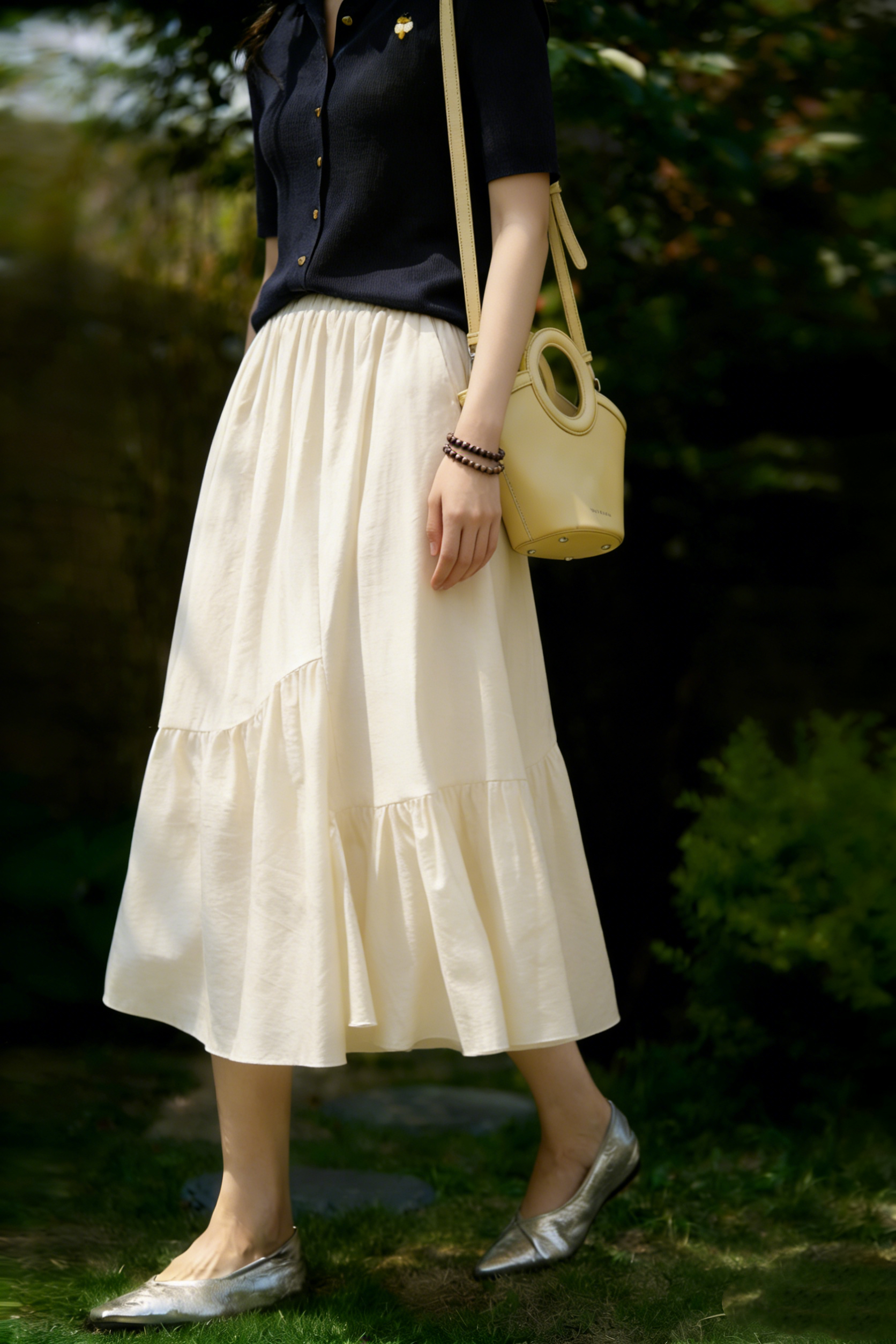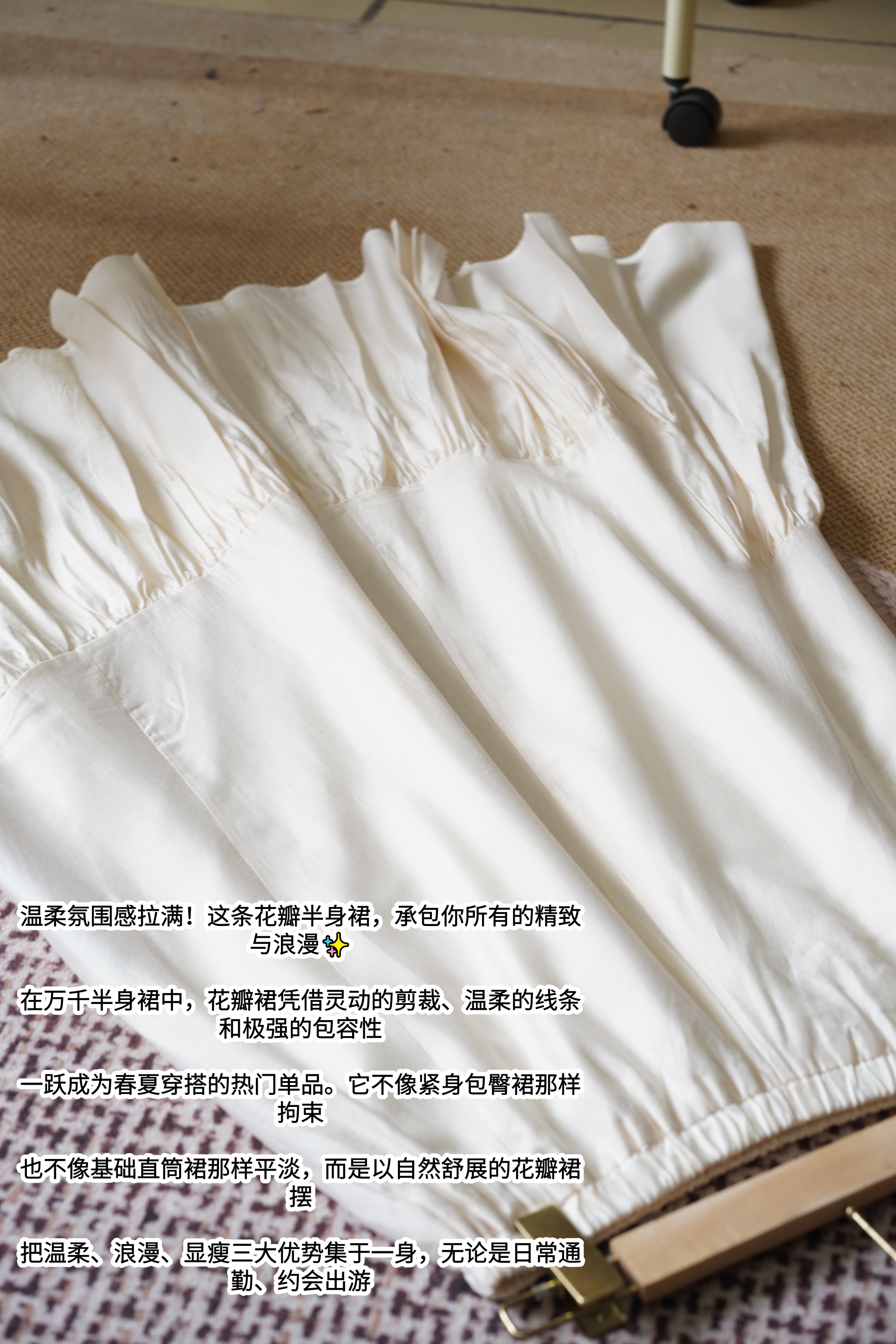 奶油色花瓣半裙:人棉80% 涤纶20%