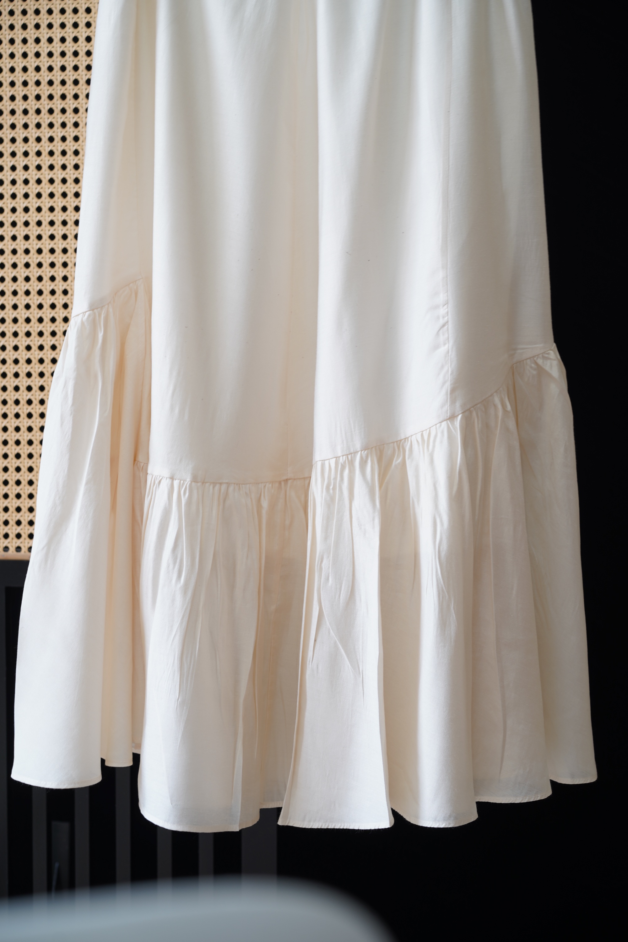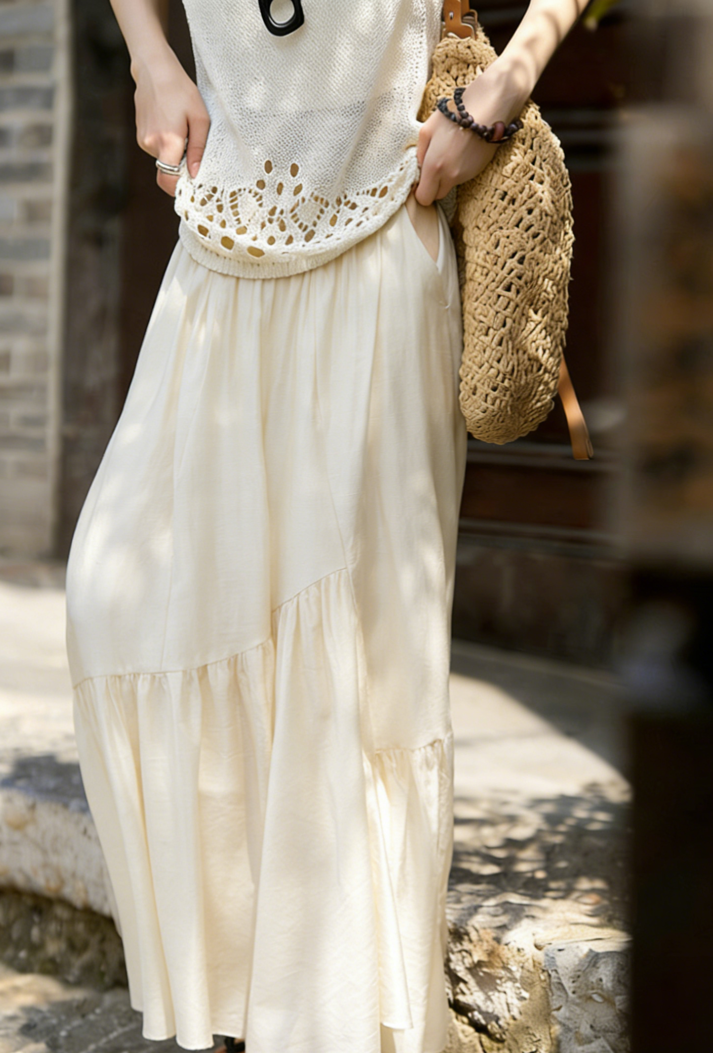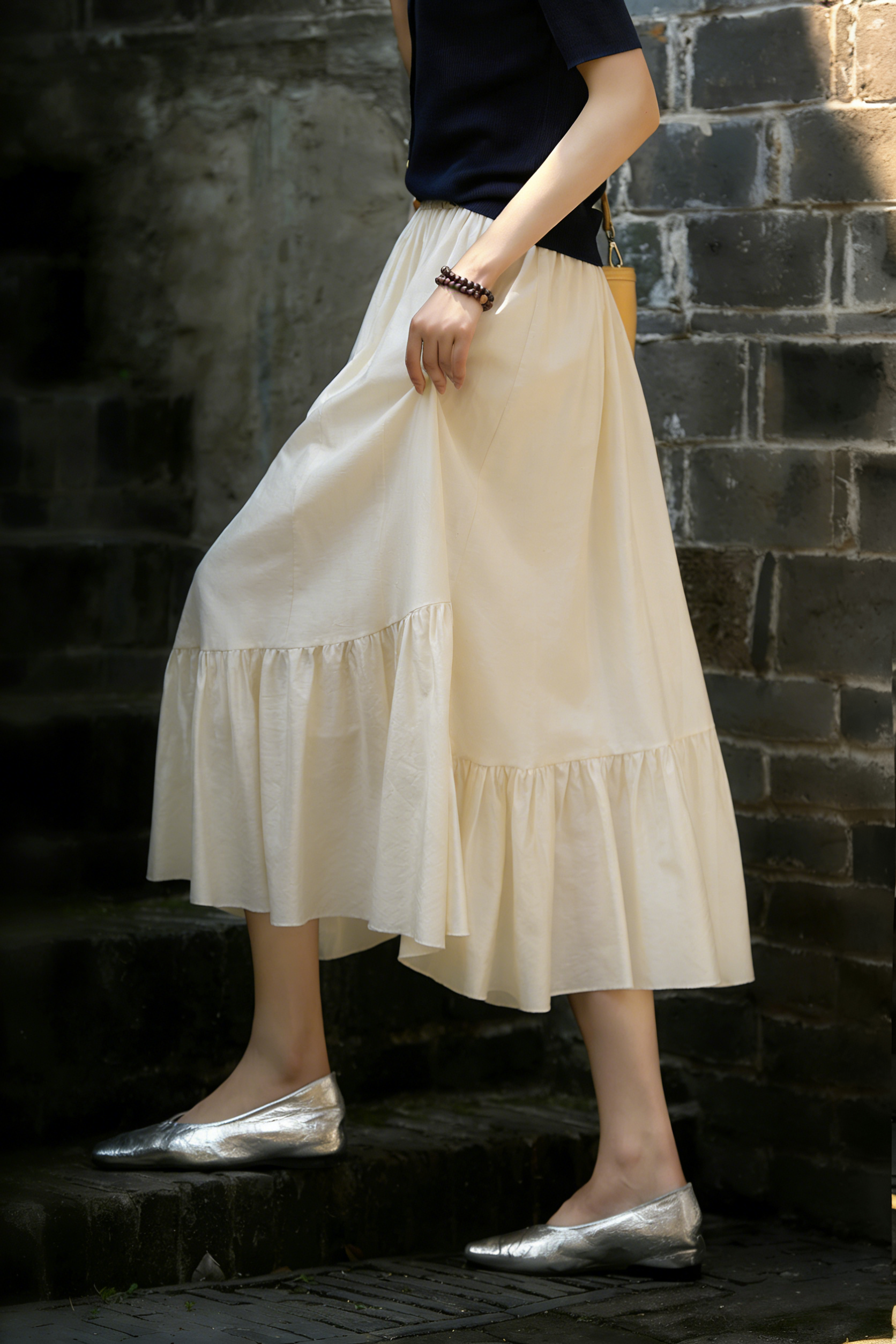 奶油色花瓣半裙:人棉80% 涤纶20%