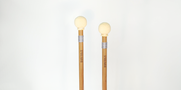 1″ diameter wood ball with tight chamois cover. Chamois is always carefully selected for matched thickness and evenness. Warmer than #1 and still very bright and clear. Perfect for Mozart, Haydn, Beethoven and much more. Also excellent for percussion instruments and chamber music.
