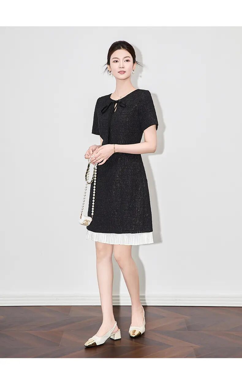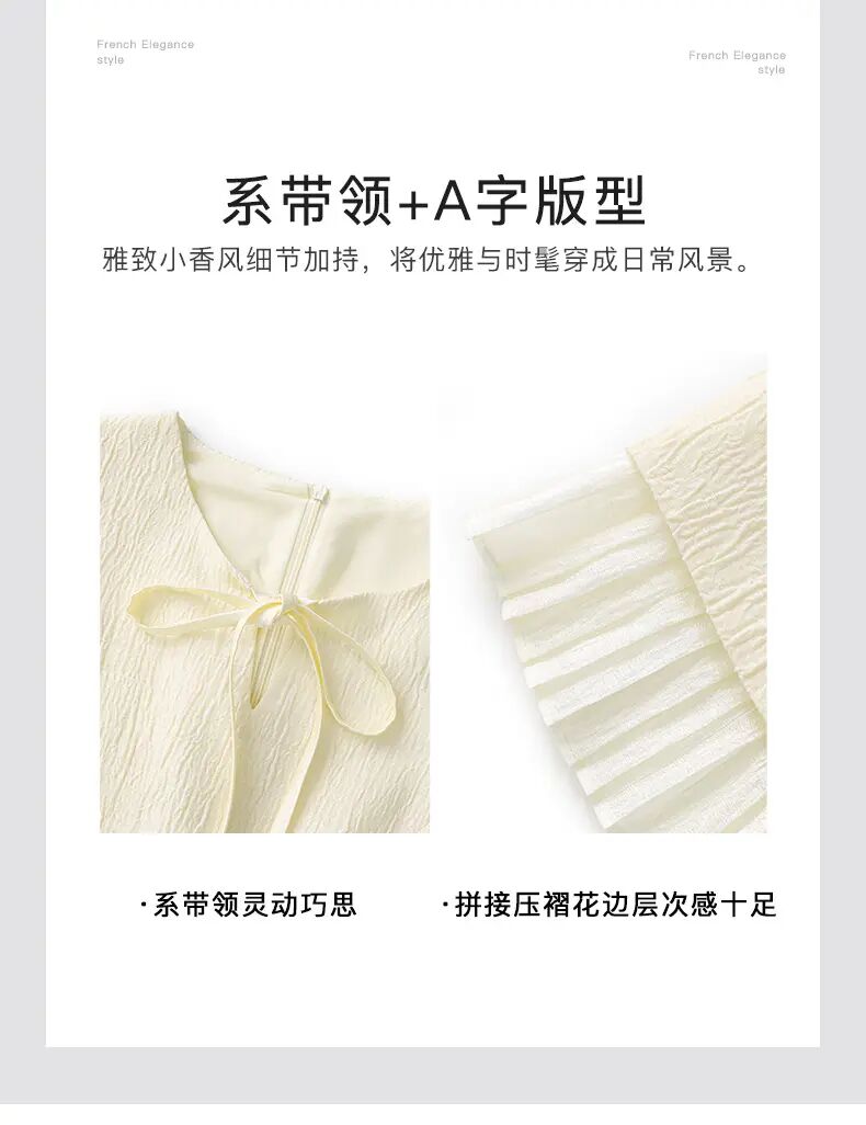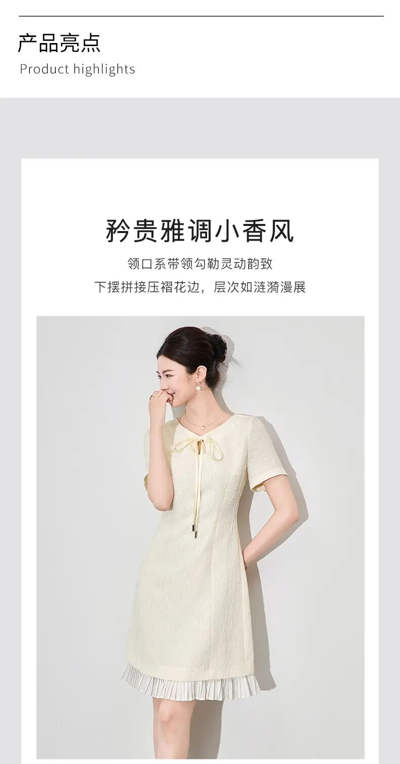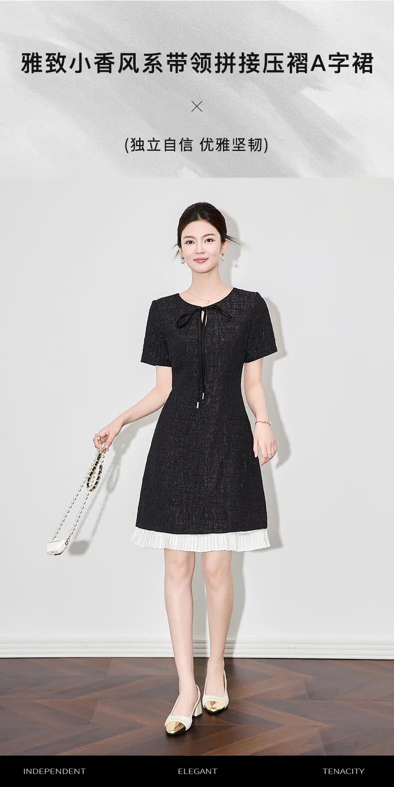 【高货wl】全新升级【铂金会员330/天猫439/差价109】(01349) 洛诗琳新款雅致小香风系带领高级感时髦拼接百褶连衣裙