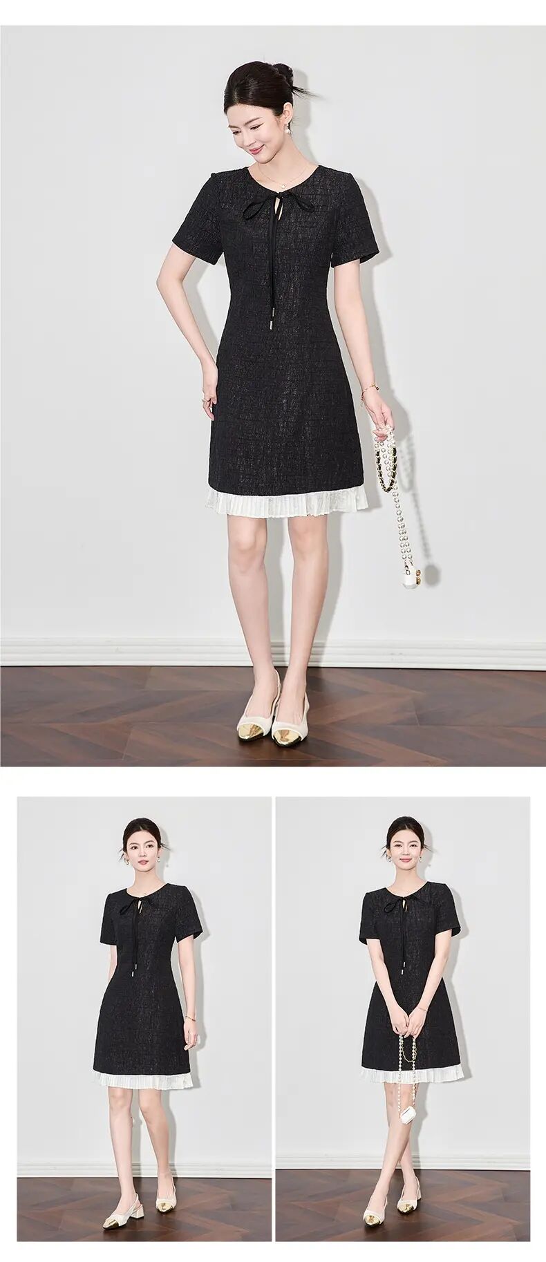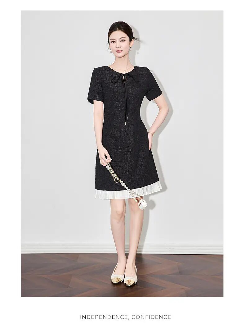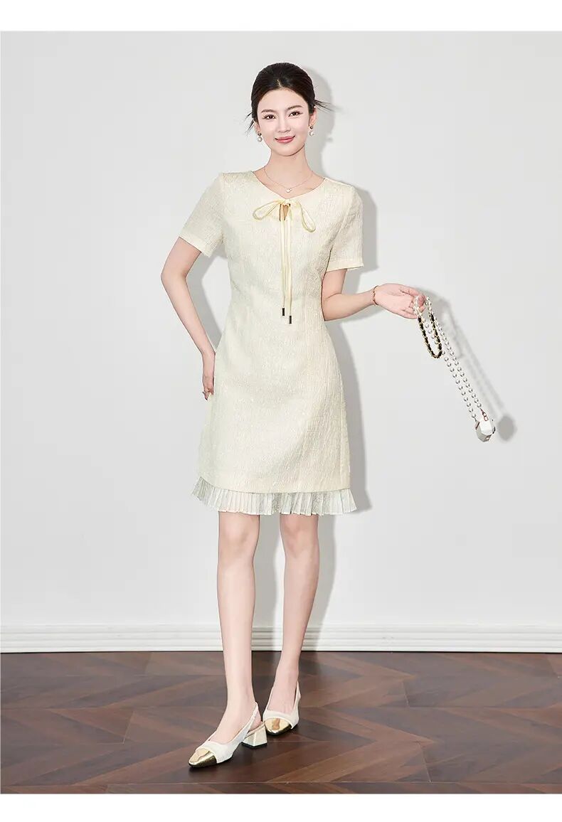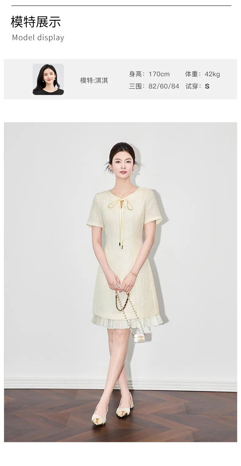 【高货wl】全新升级【铂金会员330/天猫439/差价109】(01349) 洛诗琳新款雅致小香风系带领高级感时髦拼接百褶连衣裙