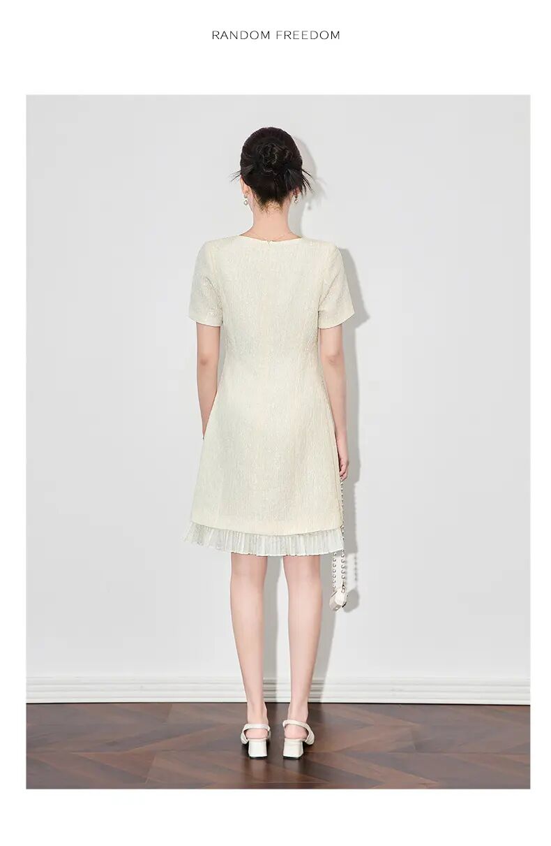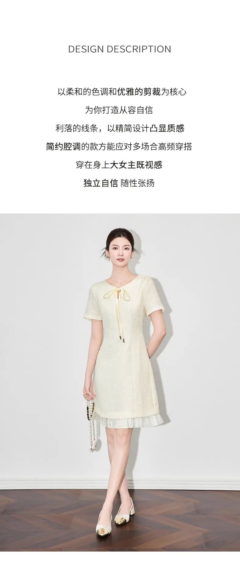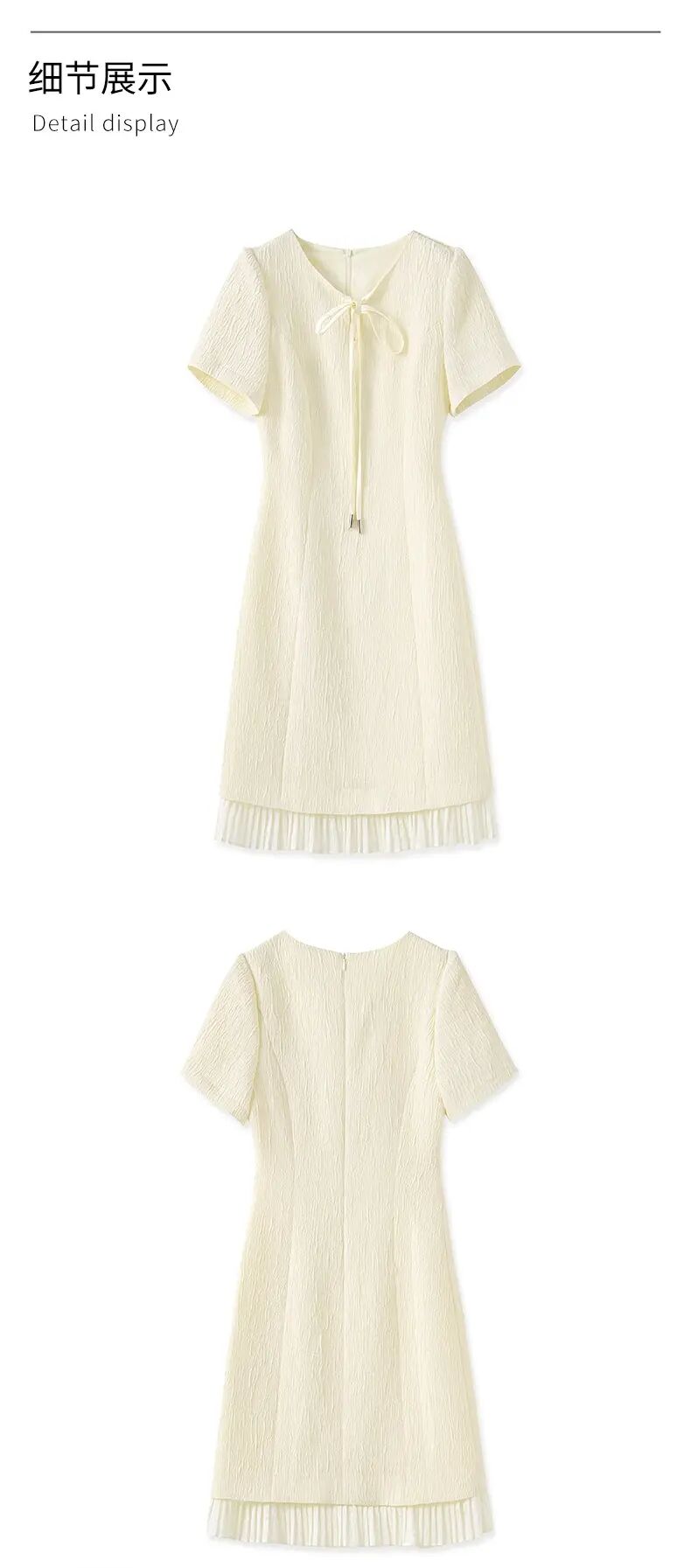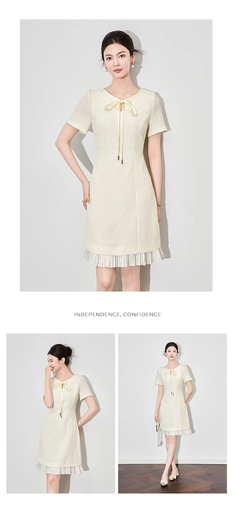 【高货wl】全新升级【铂金会员330/天猫439/差价109】(01349) 洛诗琳新款雅致小香风系带领高级感时髦拼接百褶连衣裙