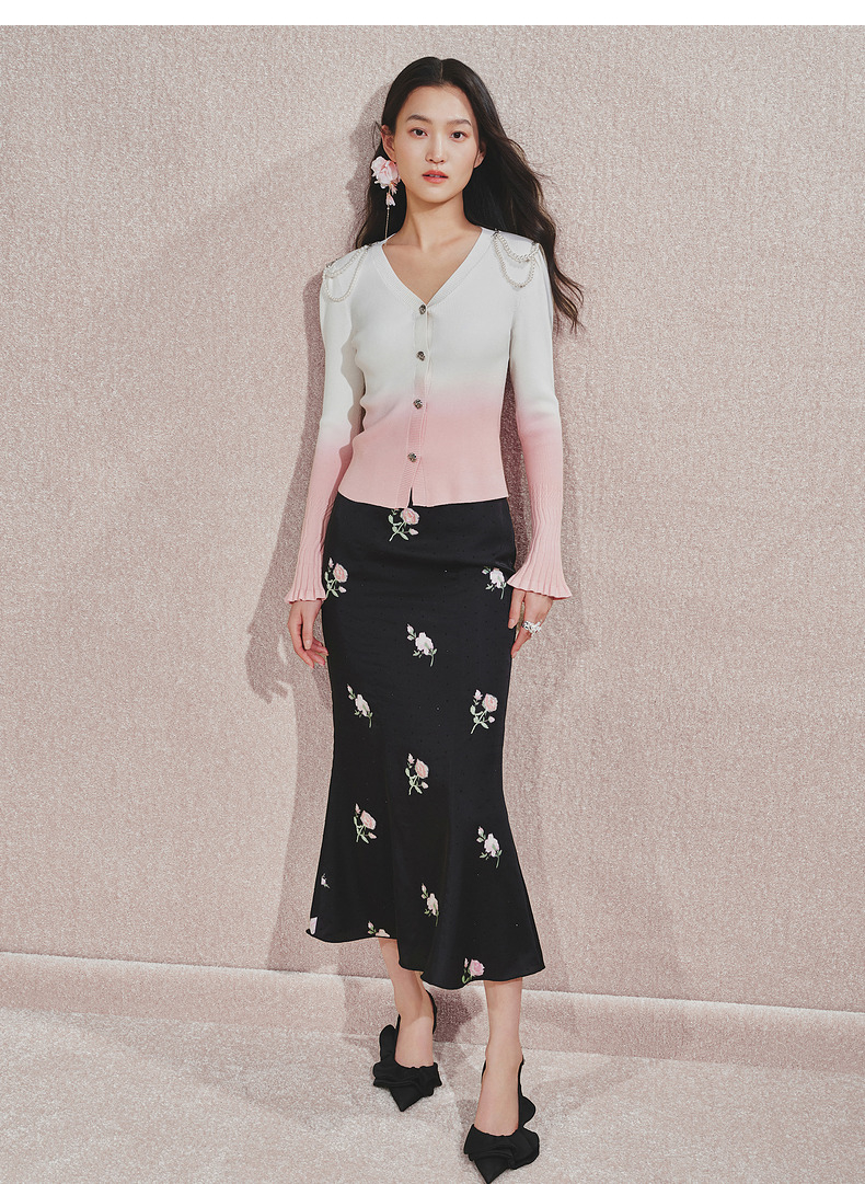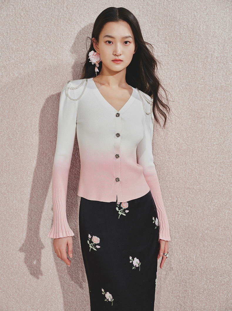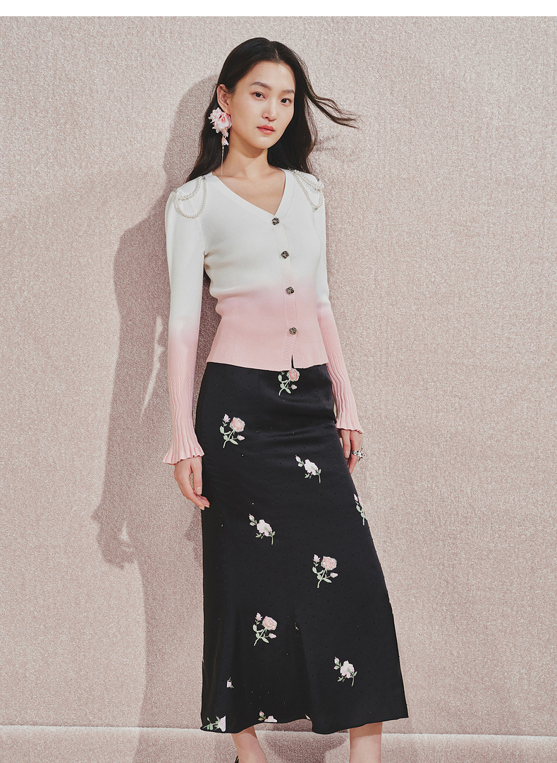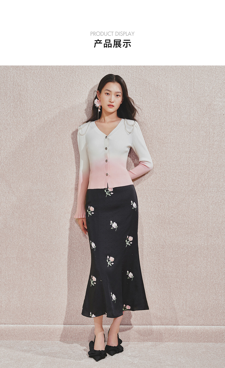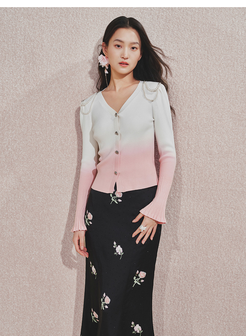 【贵雅日常-商场同款】MAXRIENY复古少女感玫瑰扣喇叭袖针织开衫(货号:MC85SW508)
