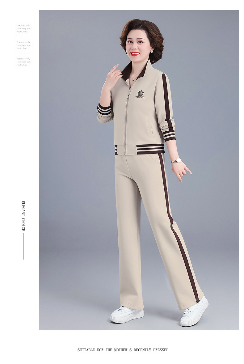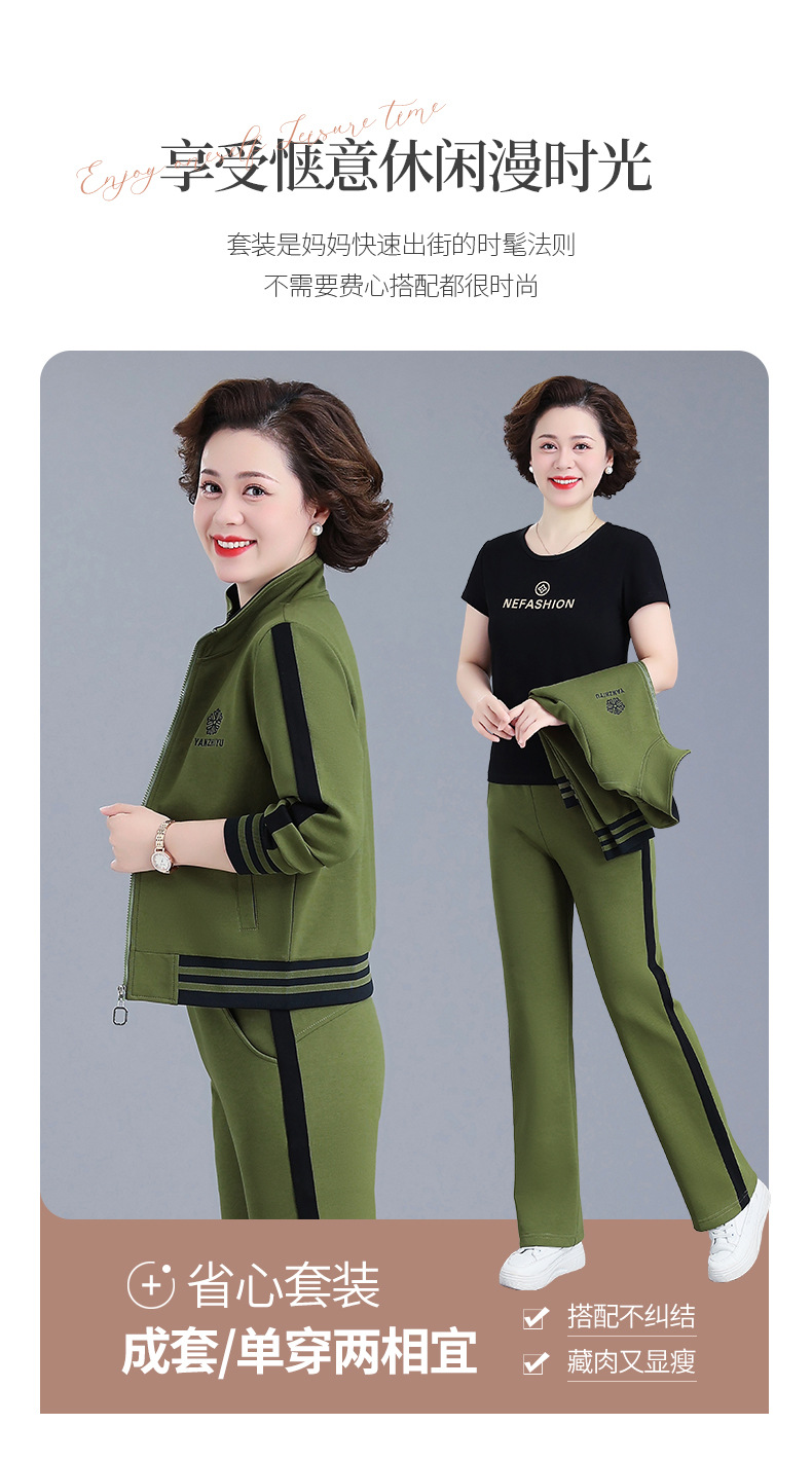 SP52-6003 中老年妈妈秋装新款大码女装套装40岁妈妈运动套装女印花两件套