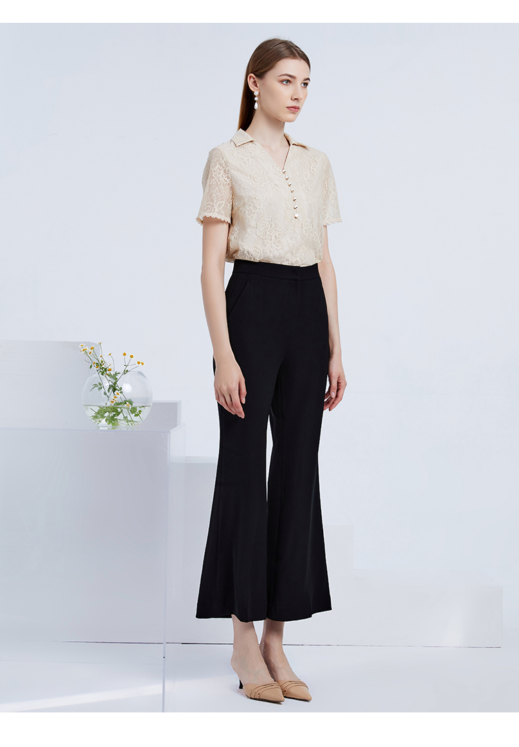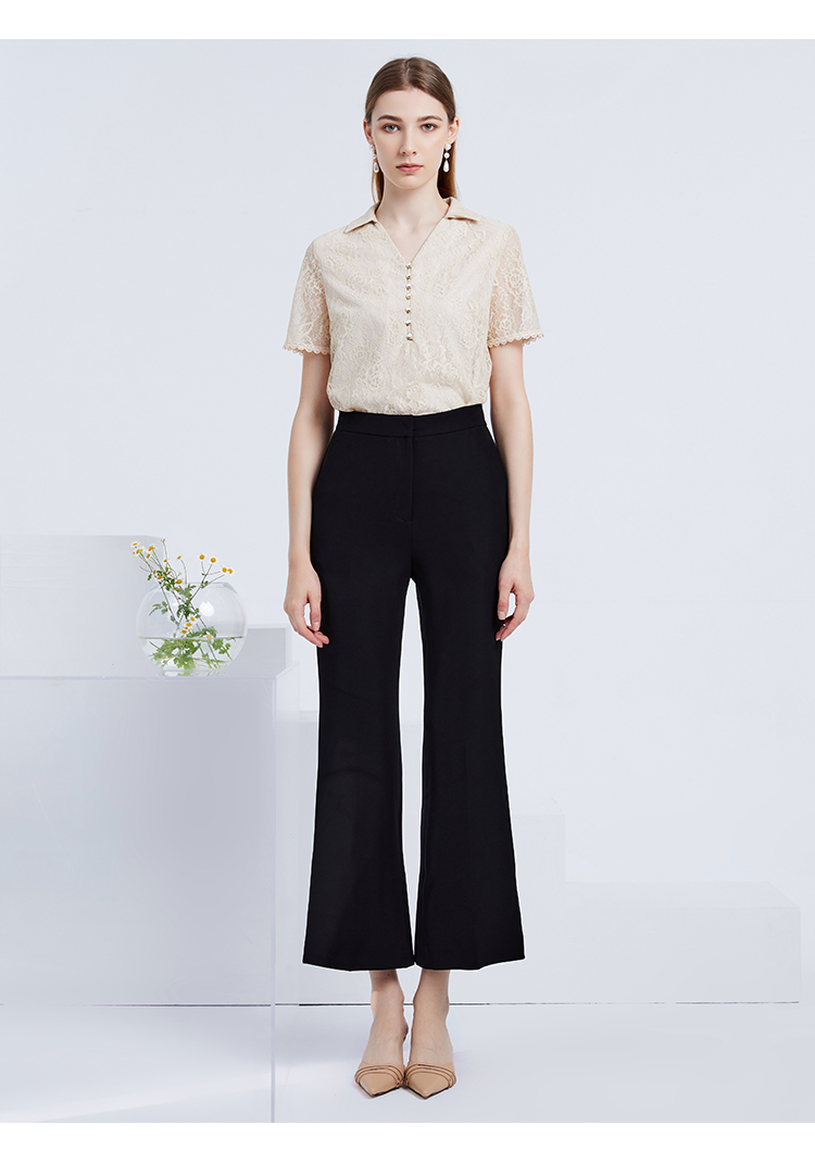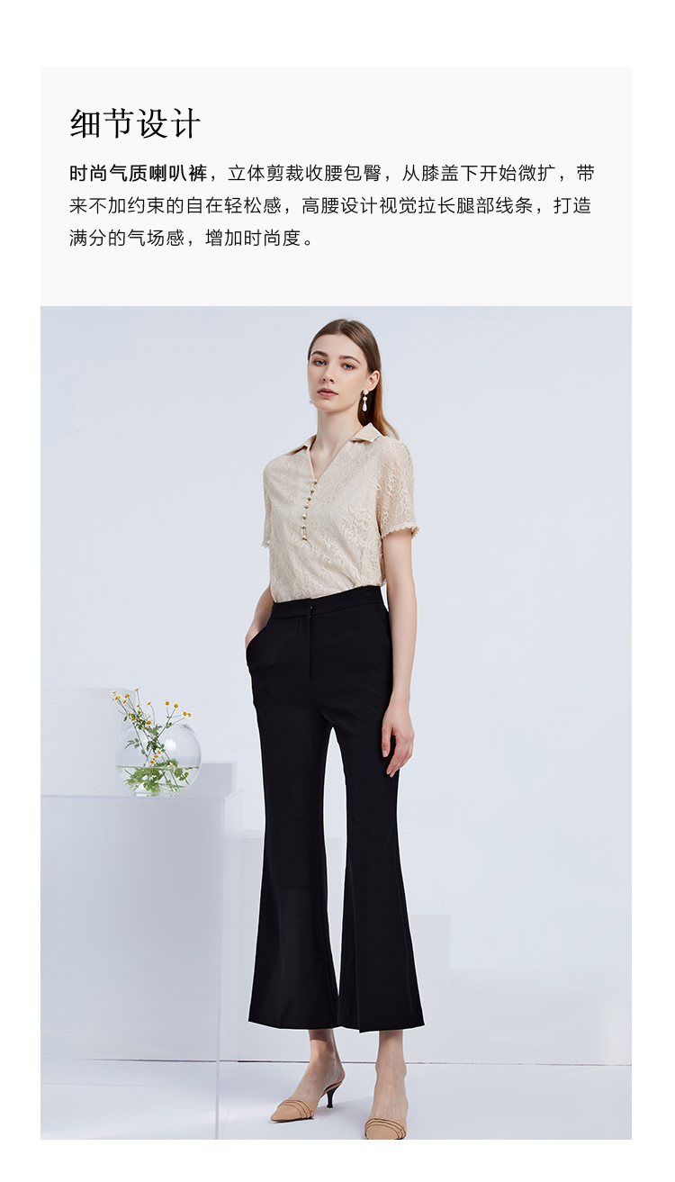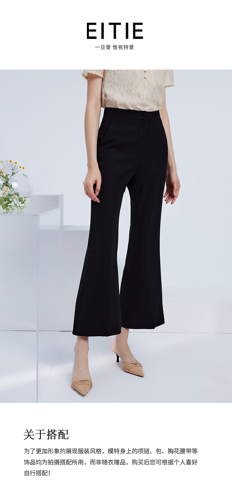 EITIE爱特爱夏季新款通勤职业气质百搭薄款微喇显瘦九分裤女