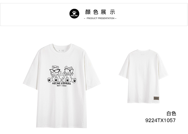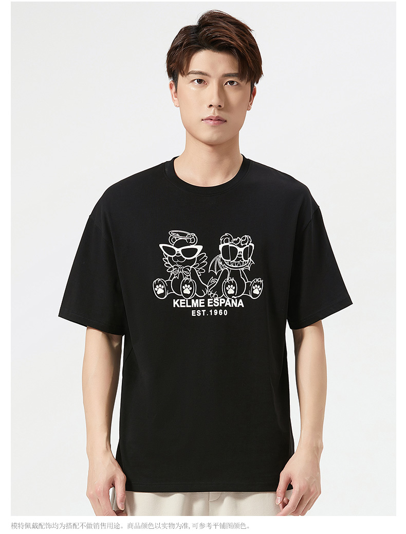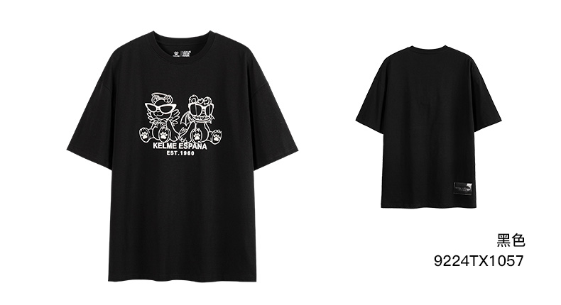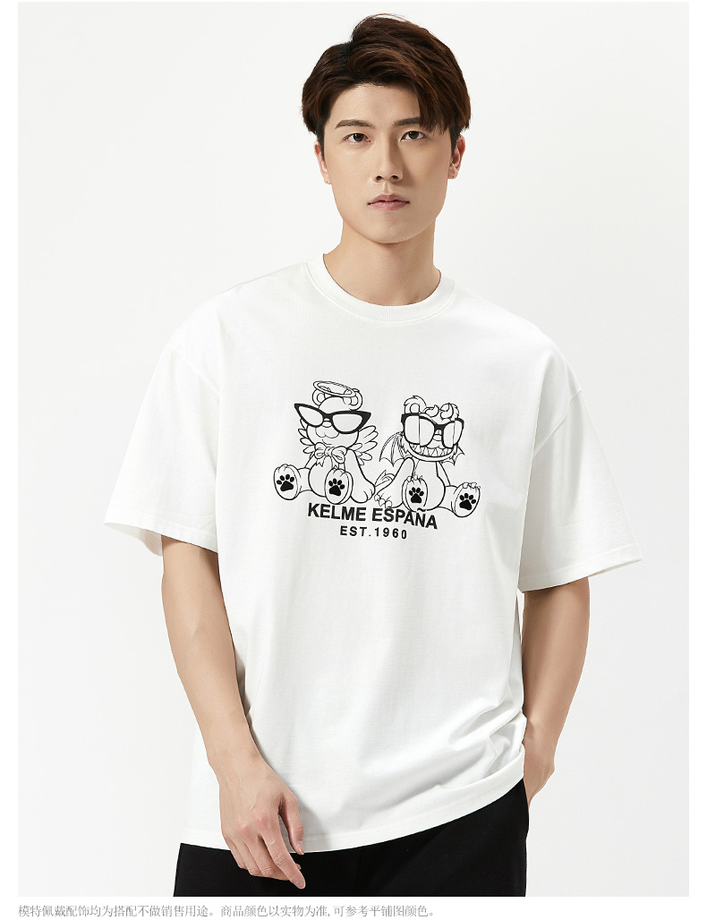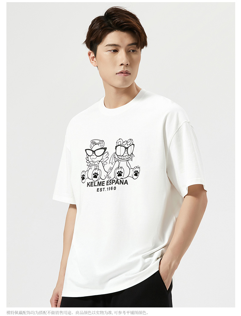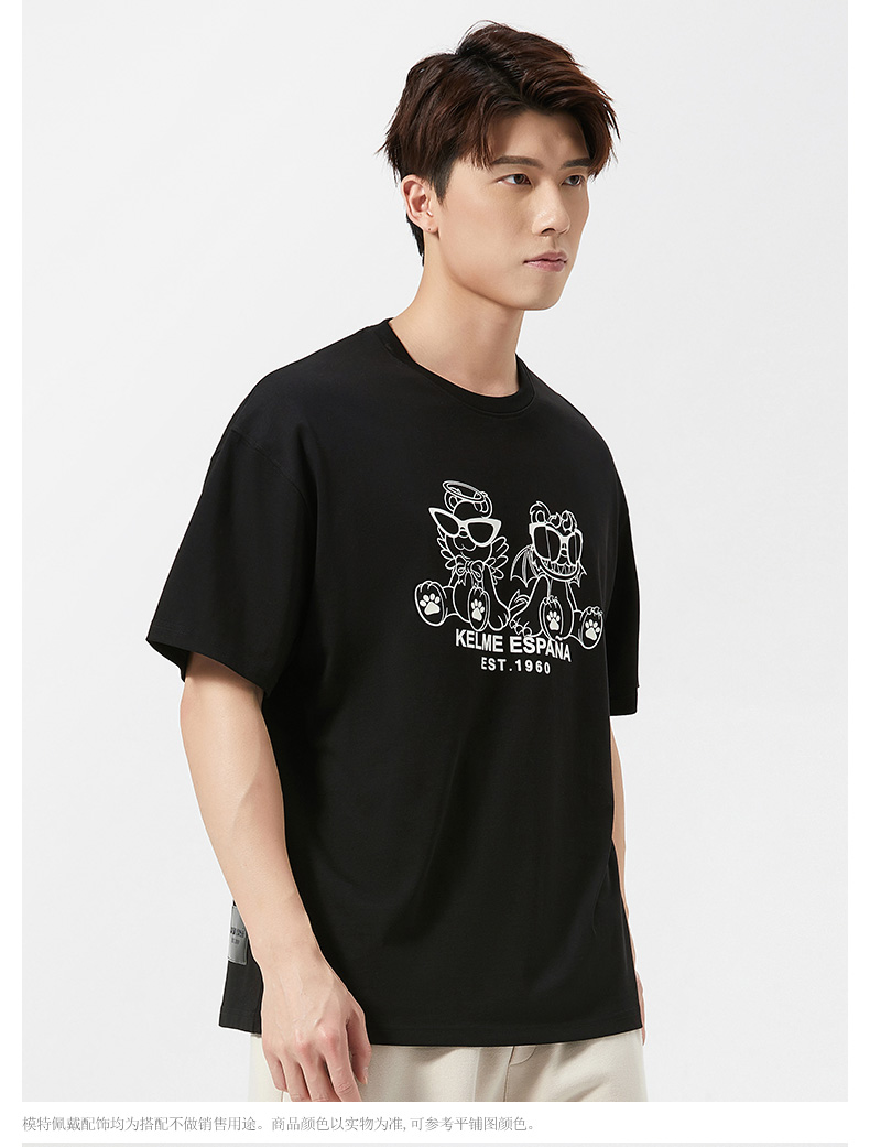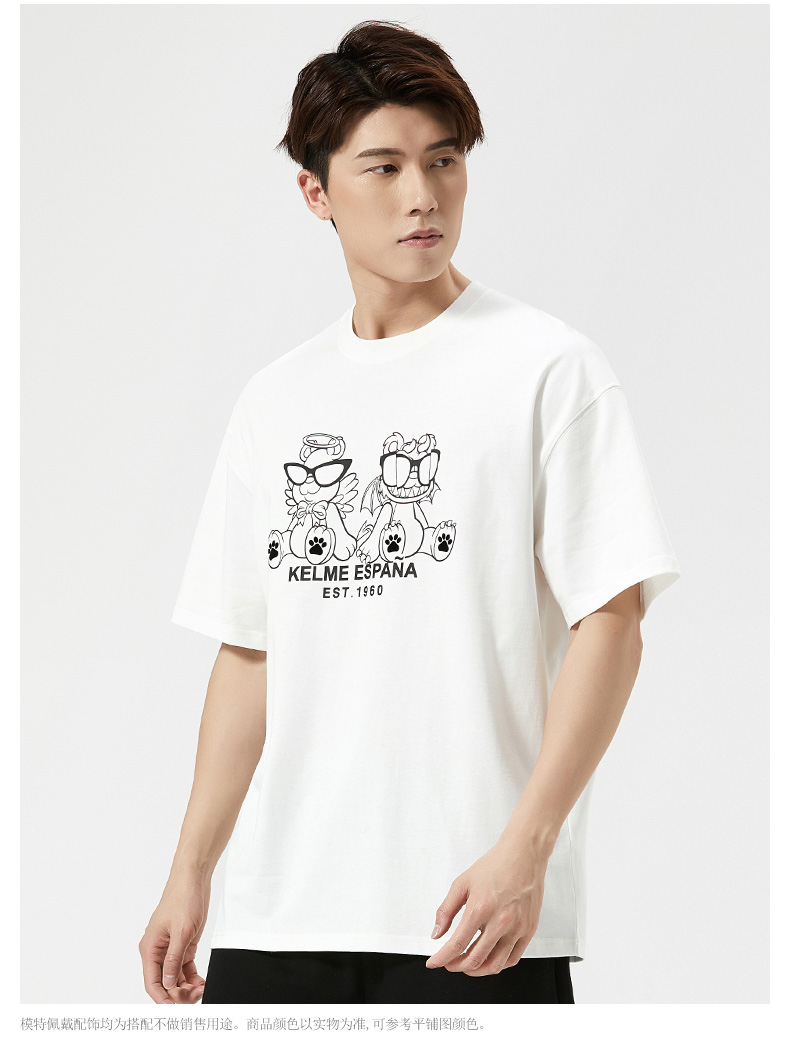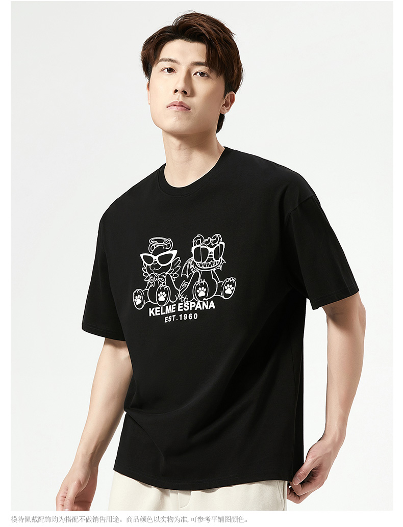 卡尔美短袖T恤男2022新款创意卡通小恐龙圆领套头体恤宽松版