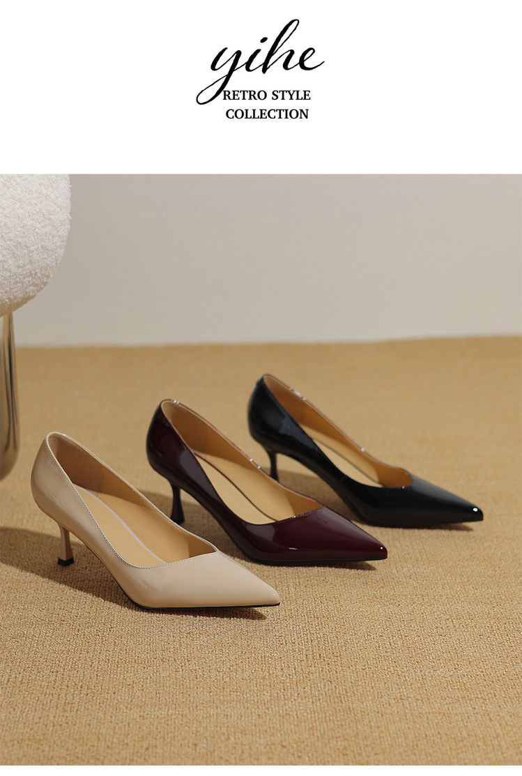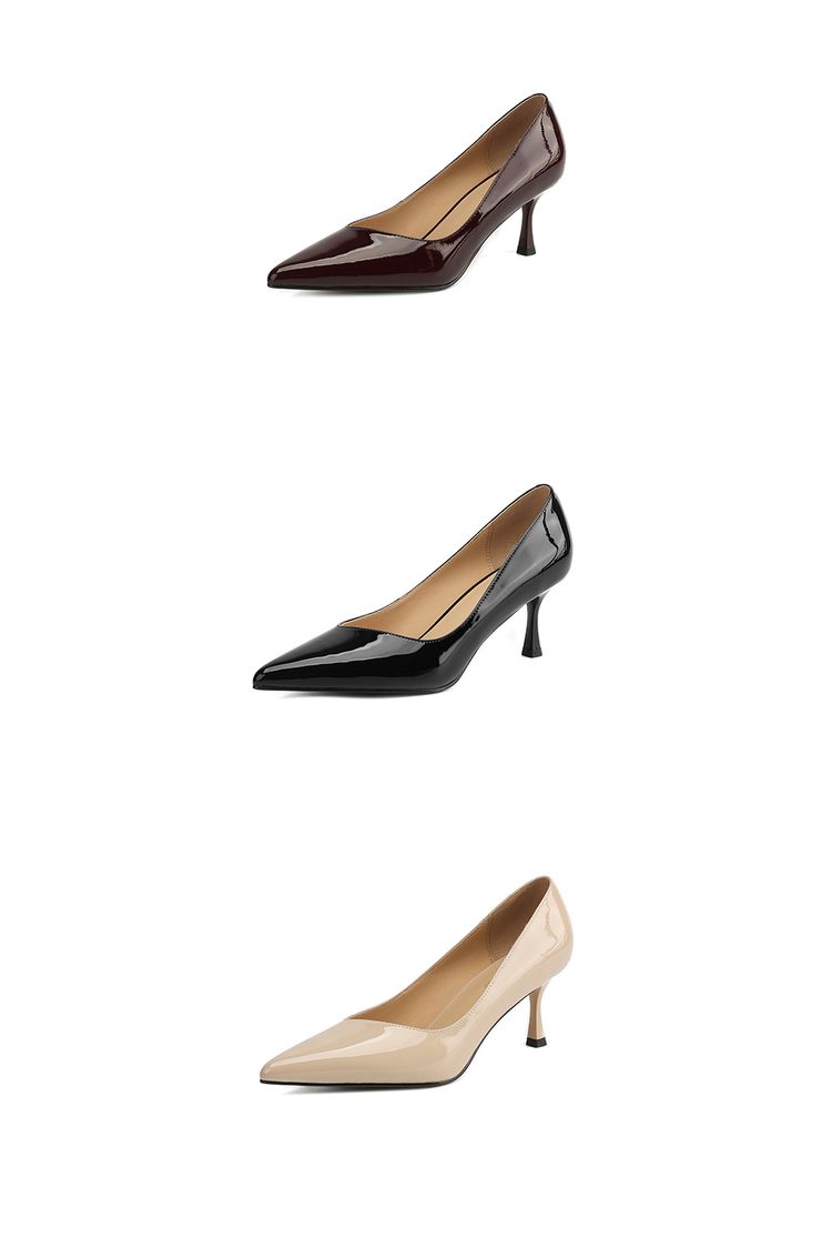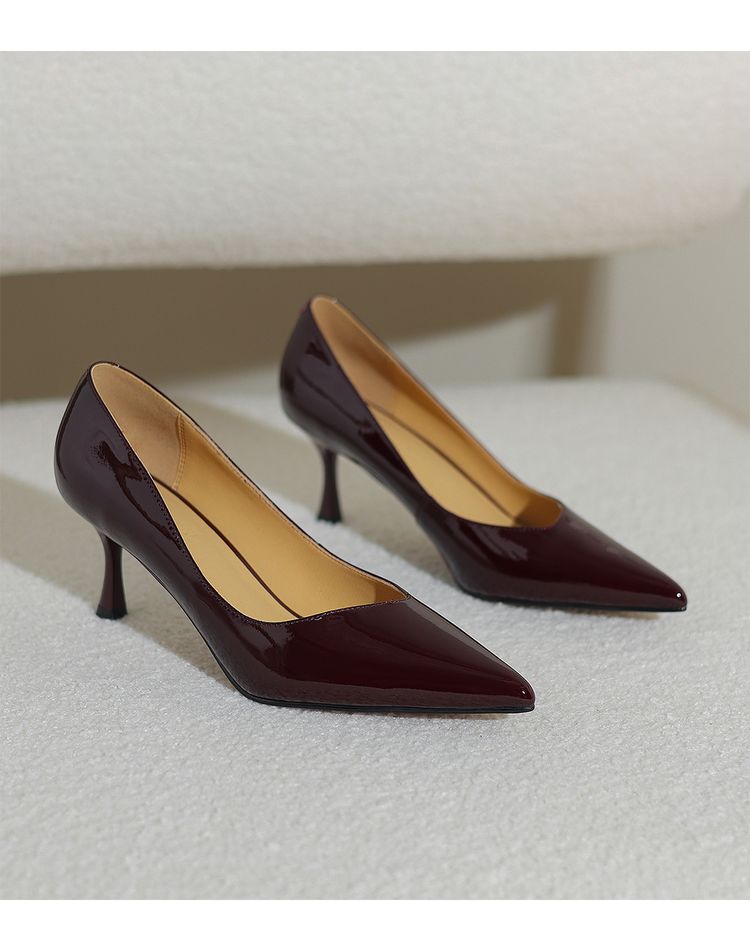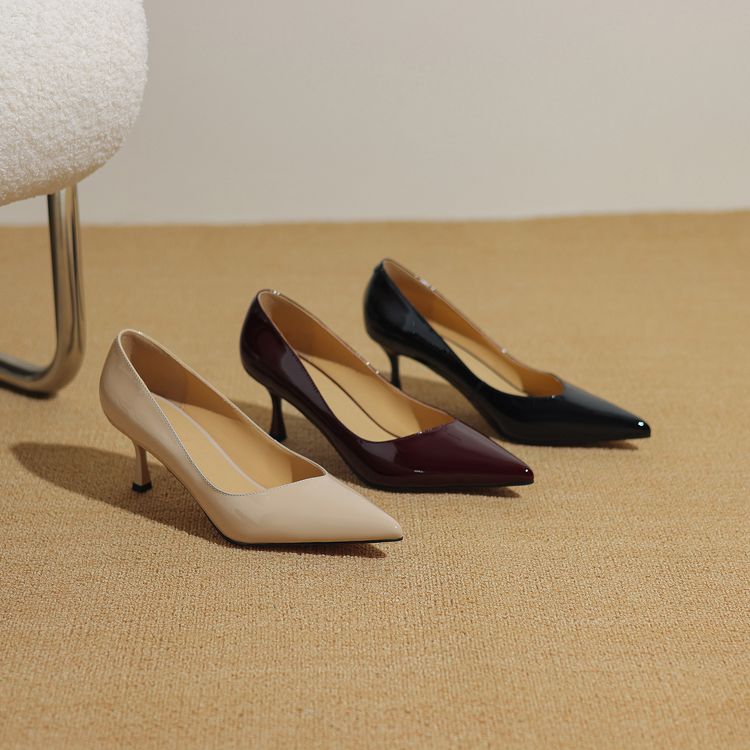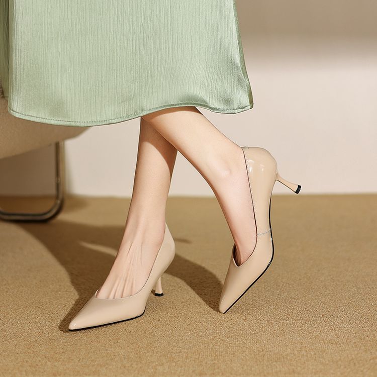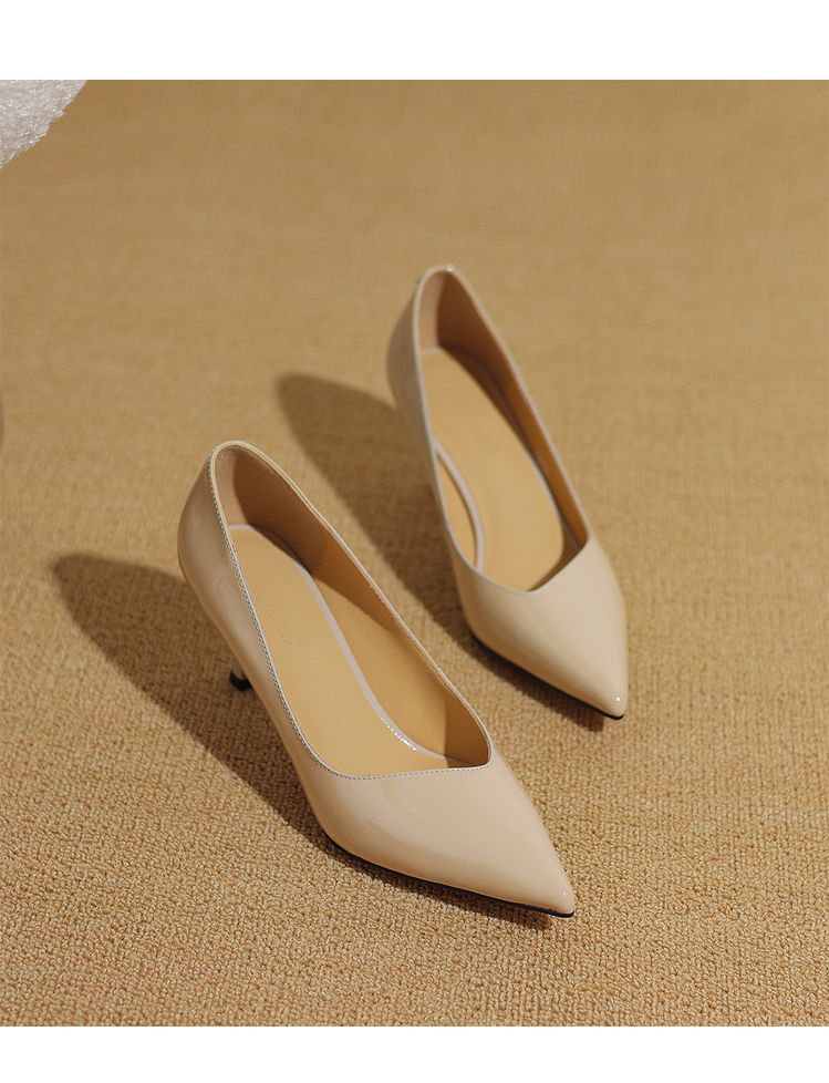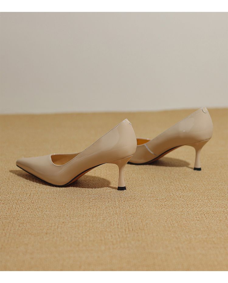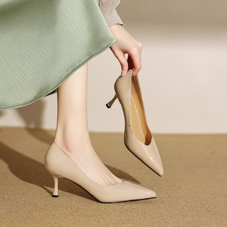 【预售5天】裸色高跟鞋女细跟春秋新款漆皮尖头单鞋配裙子职业工作鞋单鞋ZF&25001