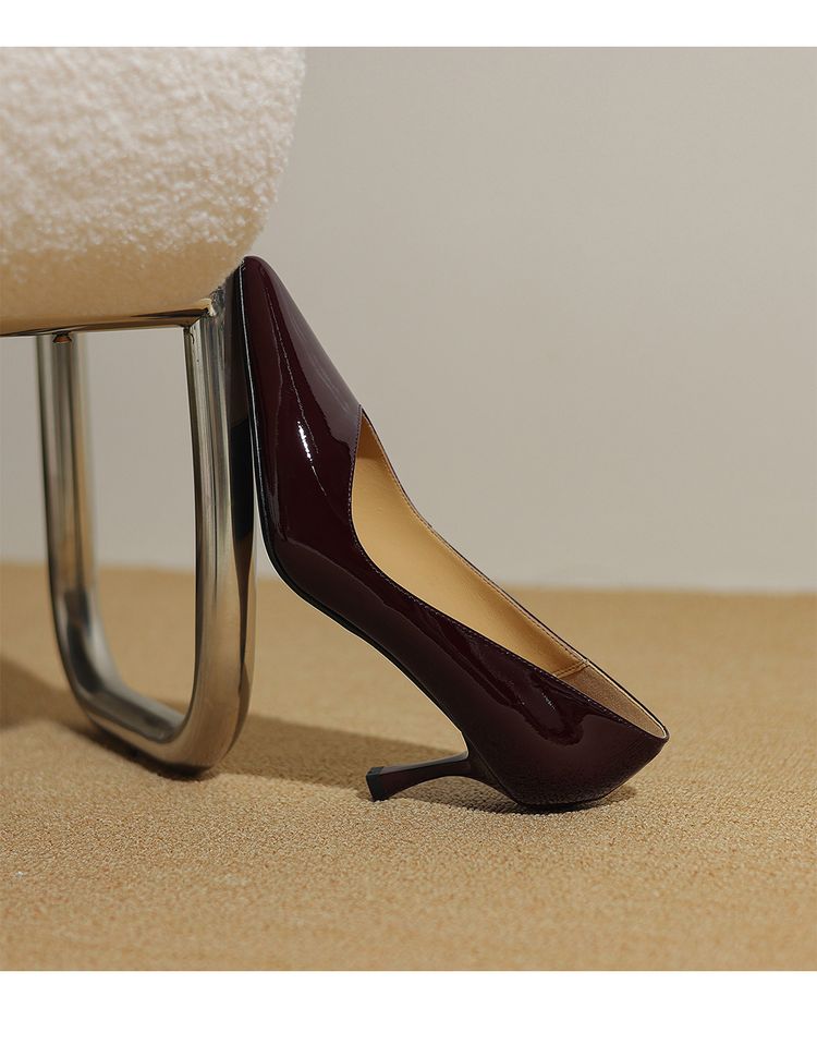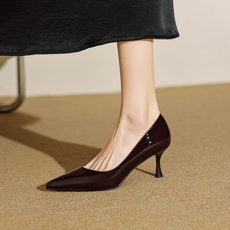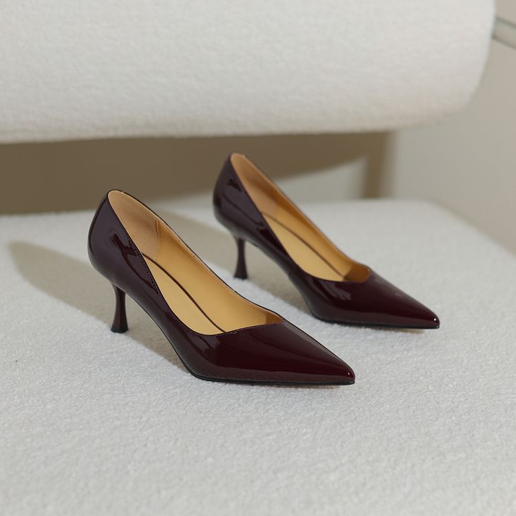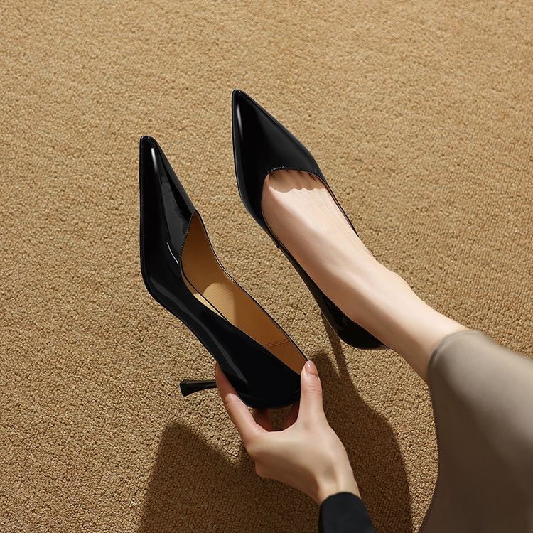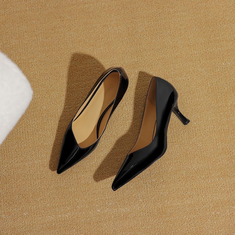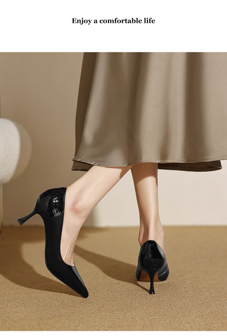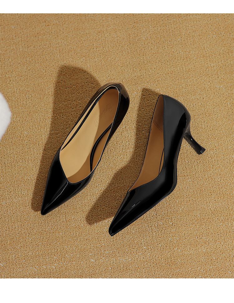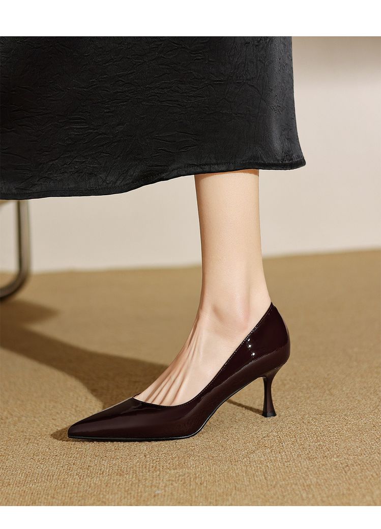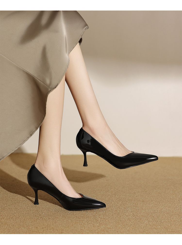 【预售5天】裸色高跟鞋女细跟春秋新款漆皮尖头单鞋配裙子职业工作鞋单鞋ZF&25001