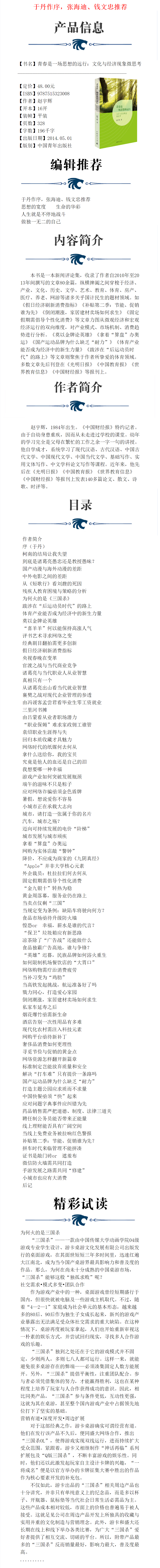 青春是一场思想的远行:文化与经济现象微思考 赵宇辉著 中国青年出版社