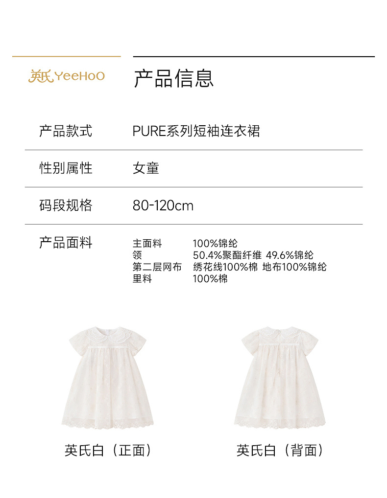 【高定系列】英氏儿童裙子女童连衣裙夏季新款短袖裙子可爱公主裙