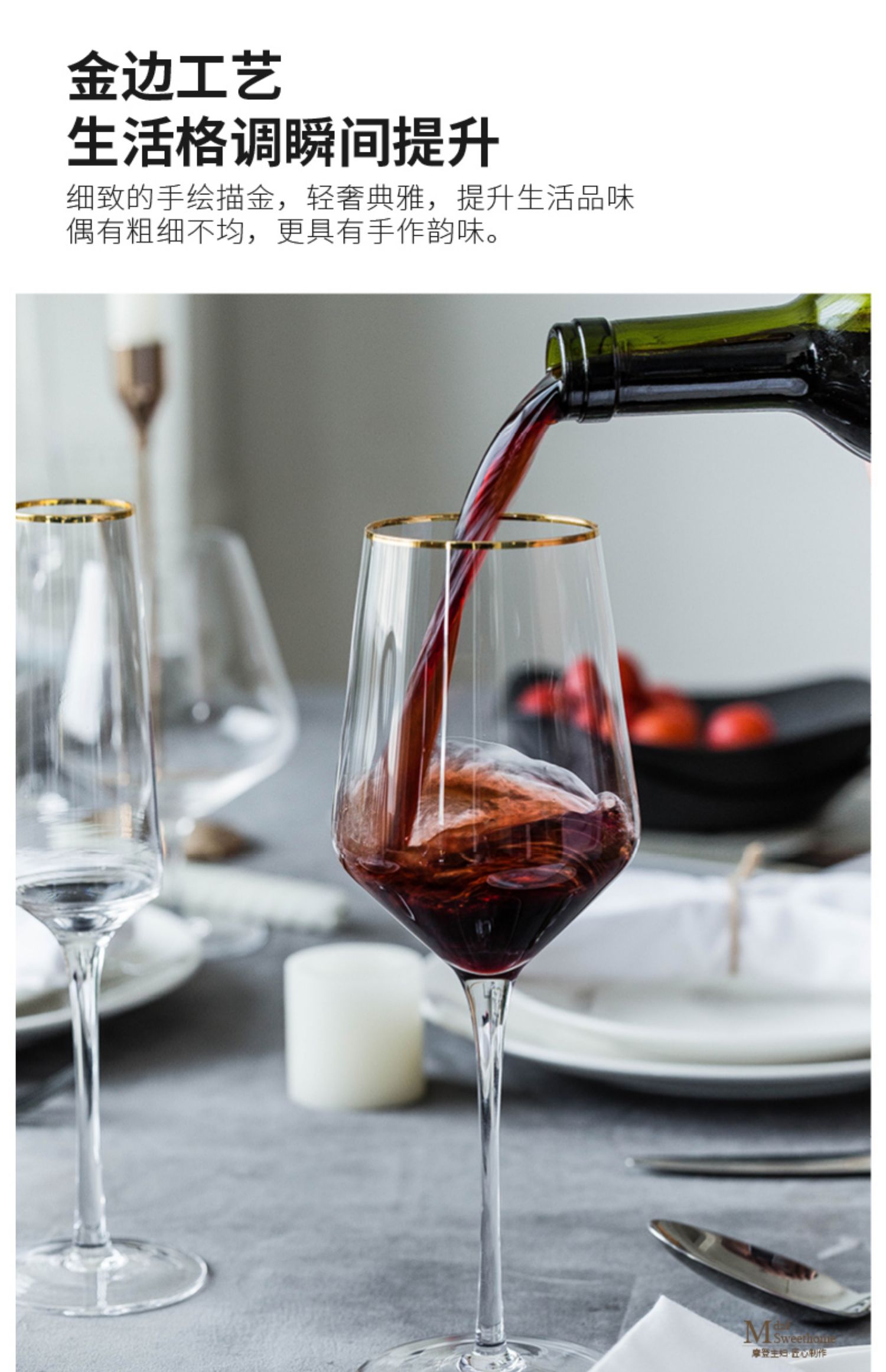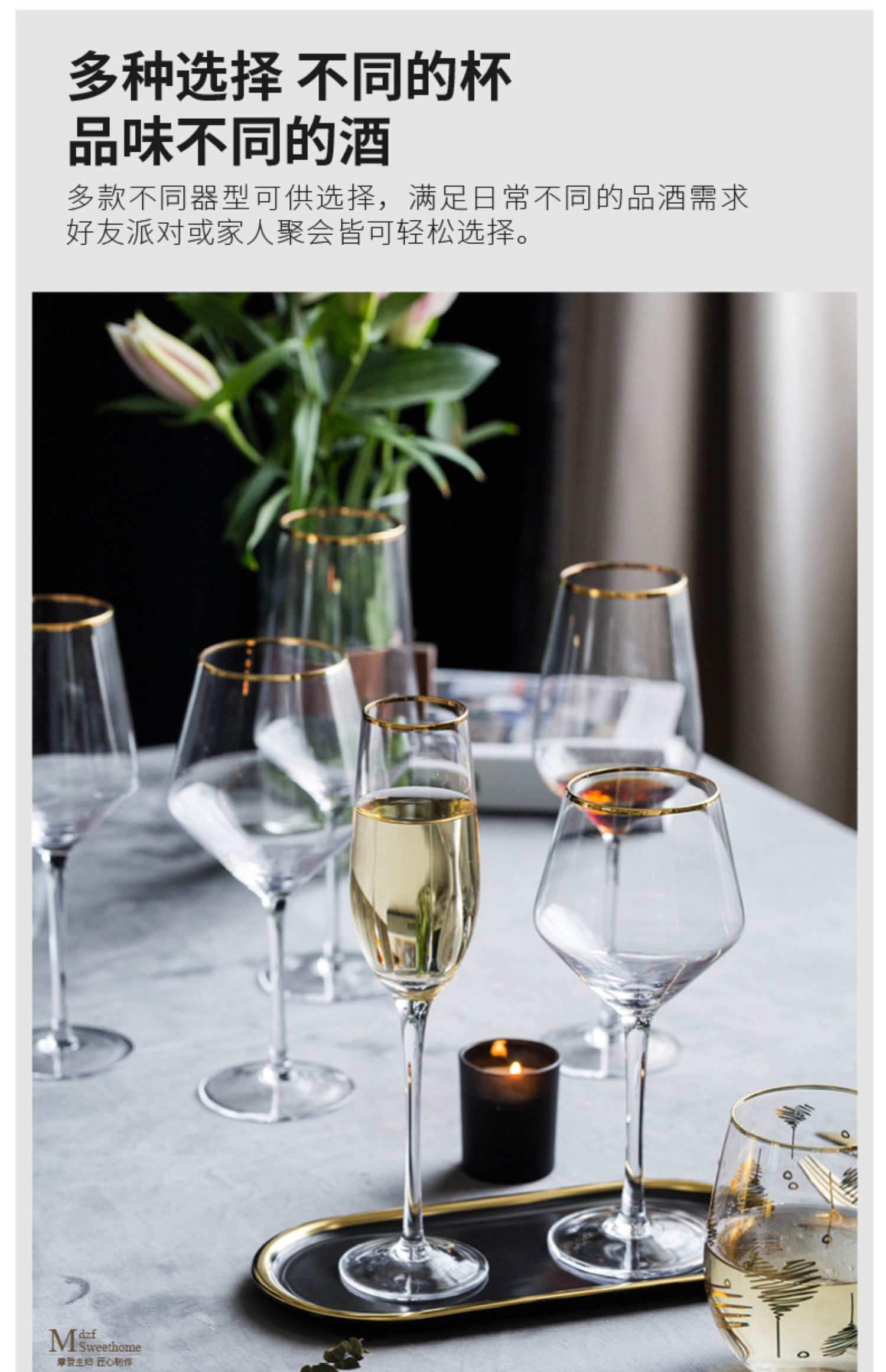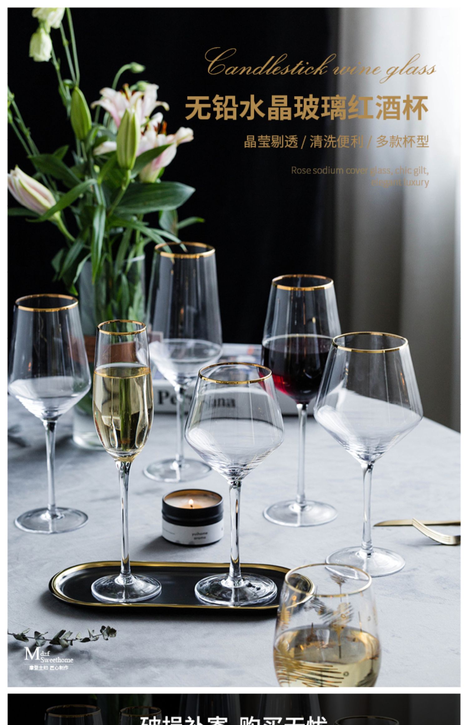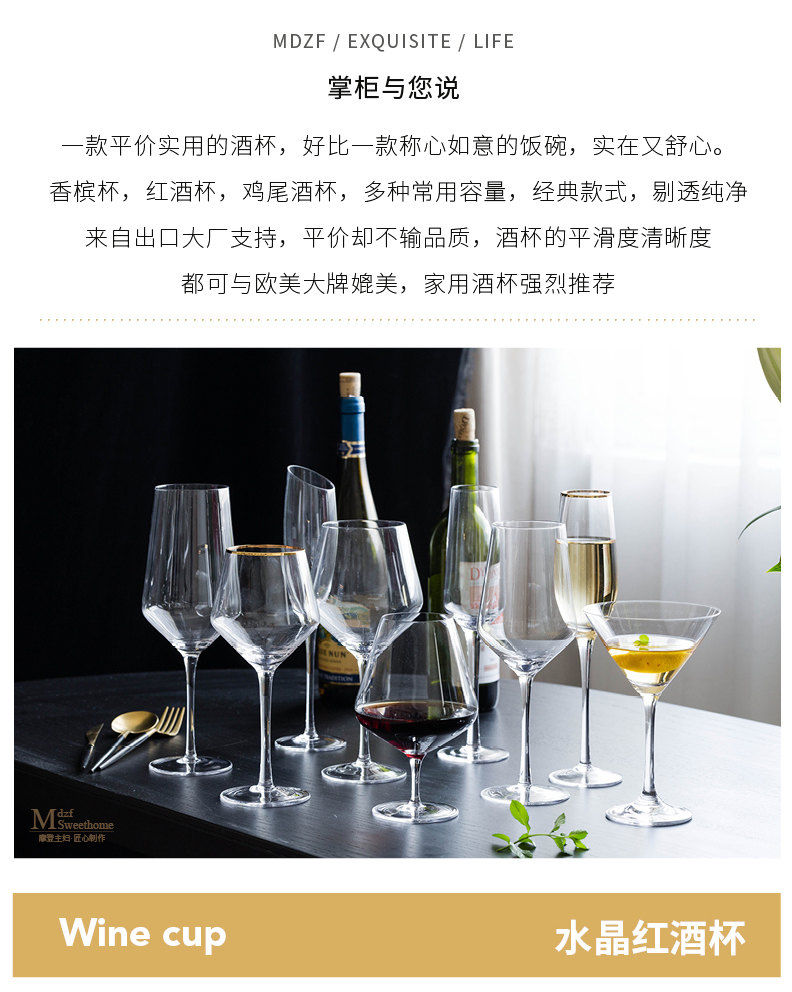 摩登主妇金边香槟杯鸡尾酒杯高脚杯红酒杯醒酒器套装家用杯子酒杯