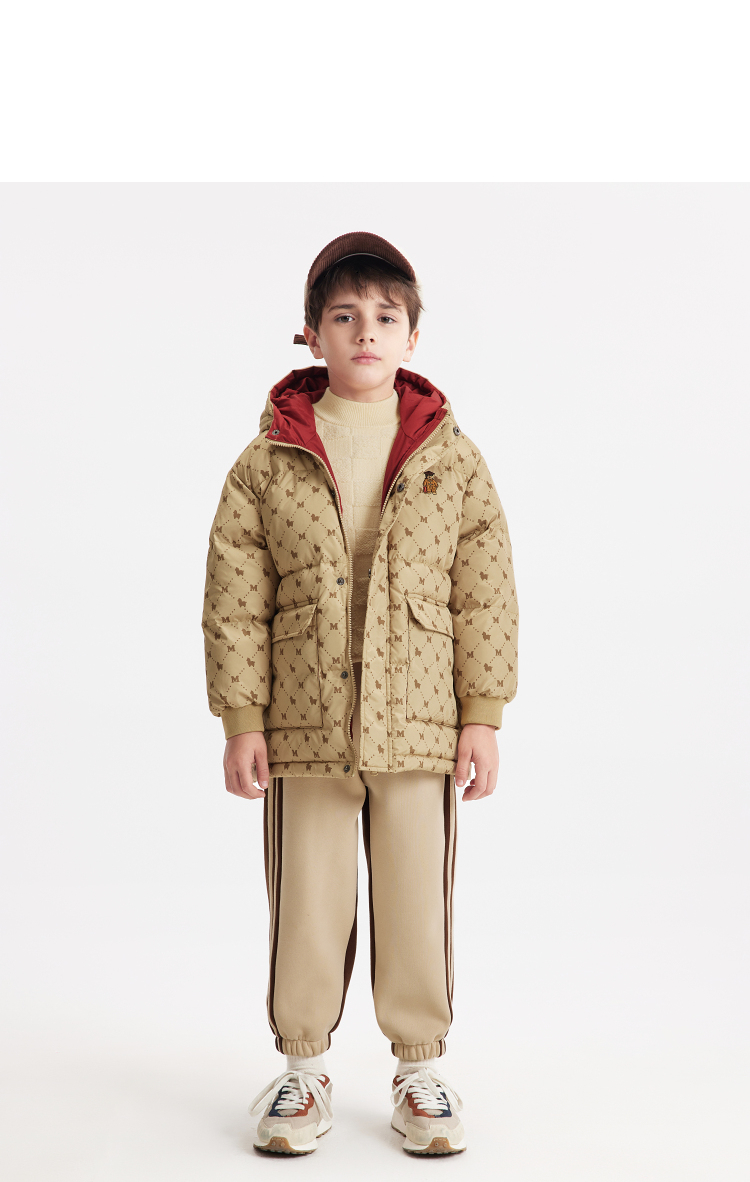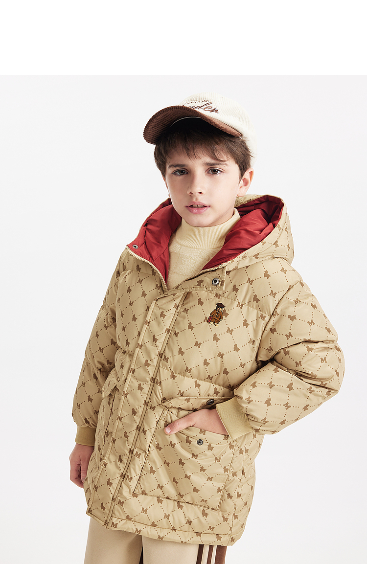 【秒】【MQD】童装儿童羽绒服冬季新款*老花时尚复古学院风中长冬装羽绒