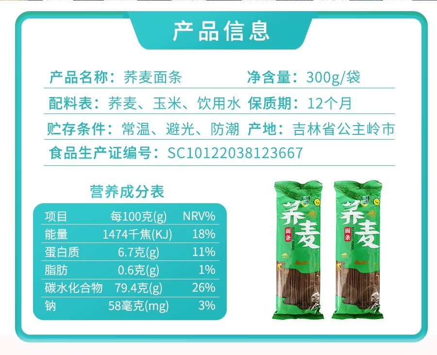 【高校专属&全场满99包邮】健亿荞麦面条300g*10袋JL