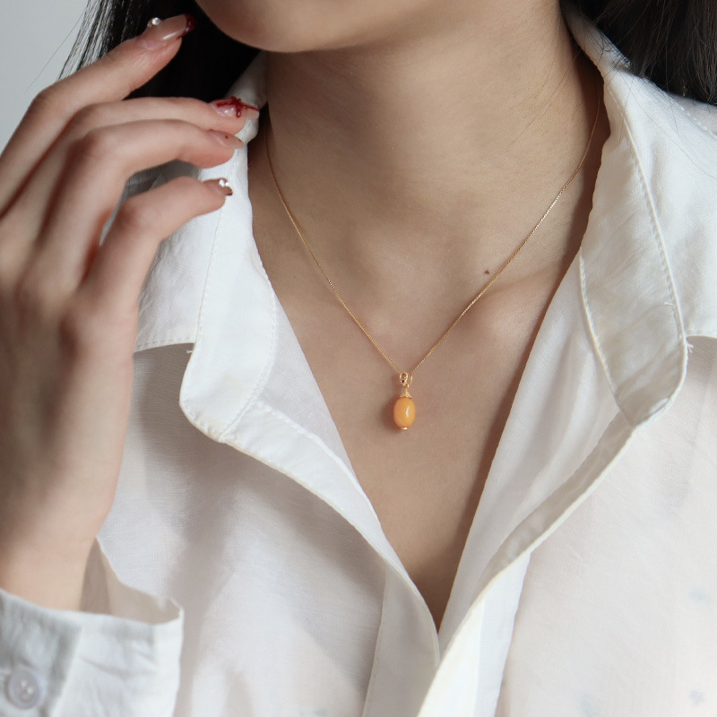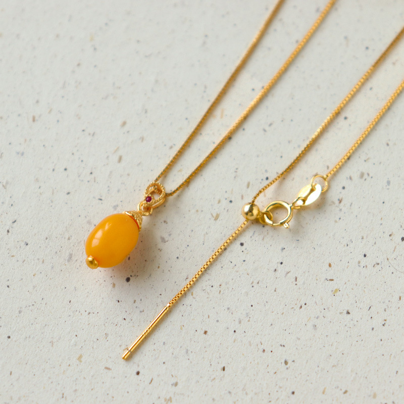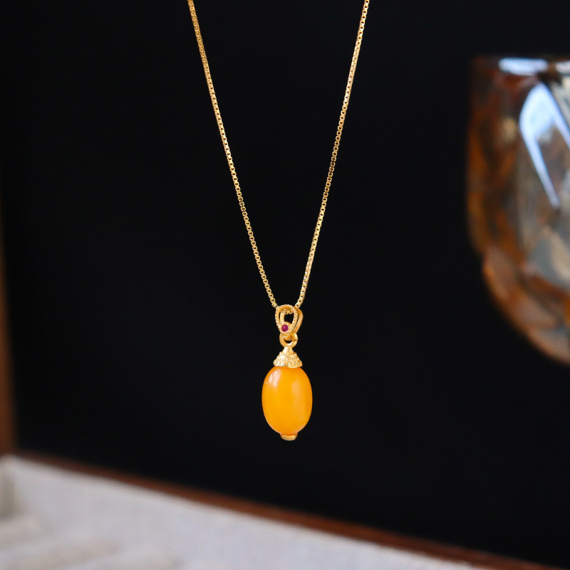 【预售3天】新中式复古精致蜜蜡吊坠925银项链简约高级感时尚百搭锁骨链DMSY-00700
