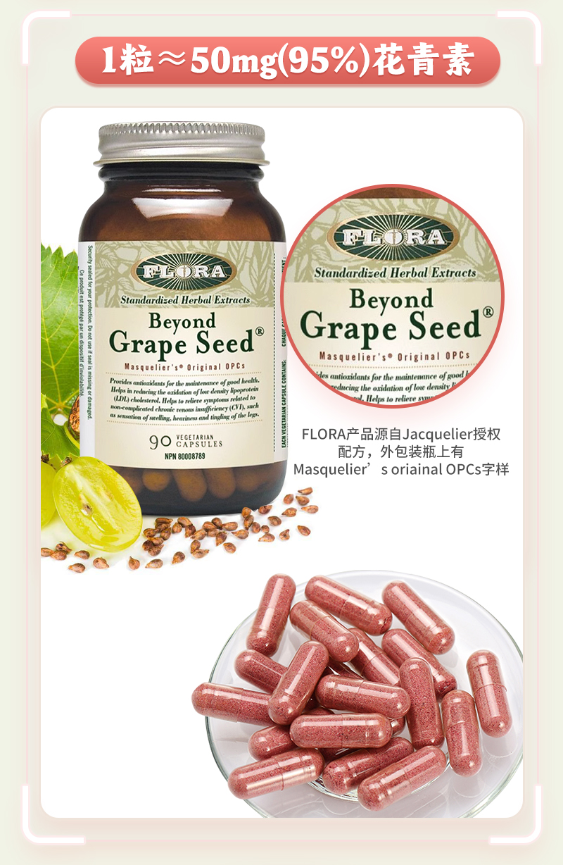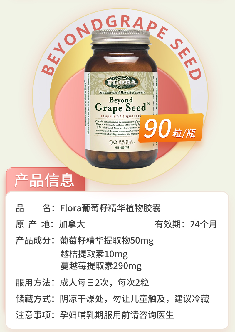 【FLORA】加拿大富兰 葡萄籽胶囊90粒/瓶