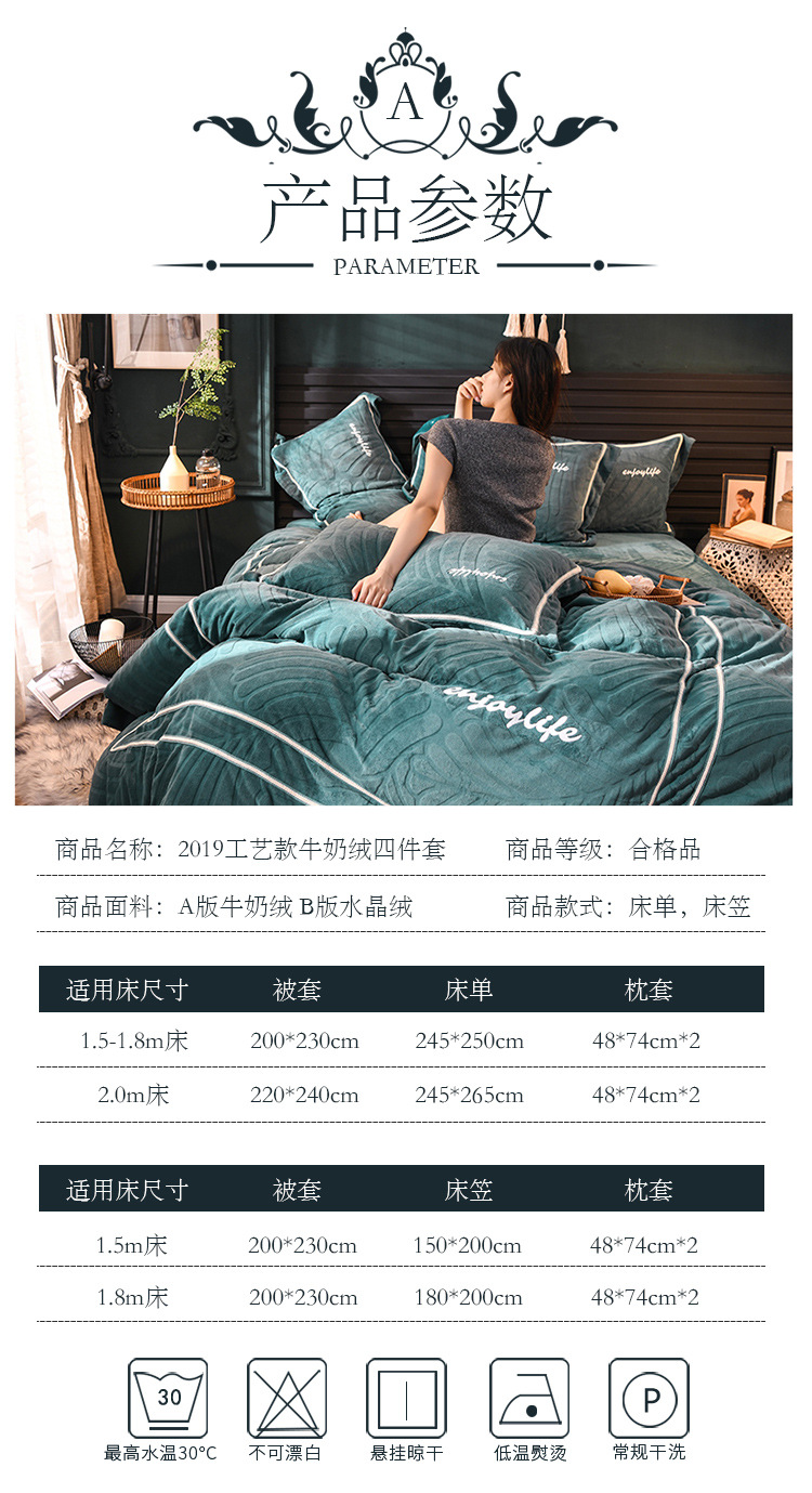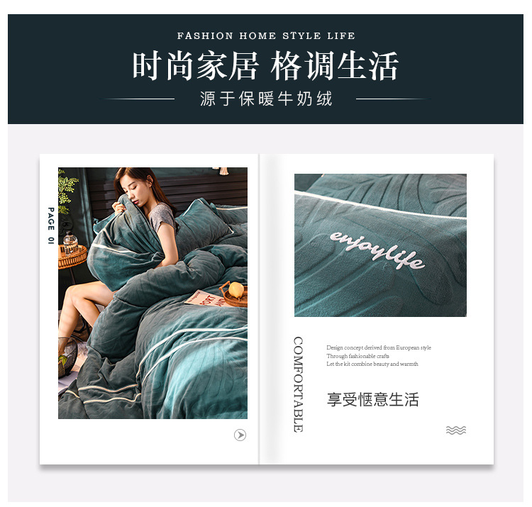 ABC-YMF-LL64465冬季加厚牛奶绒床上用品四件套