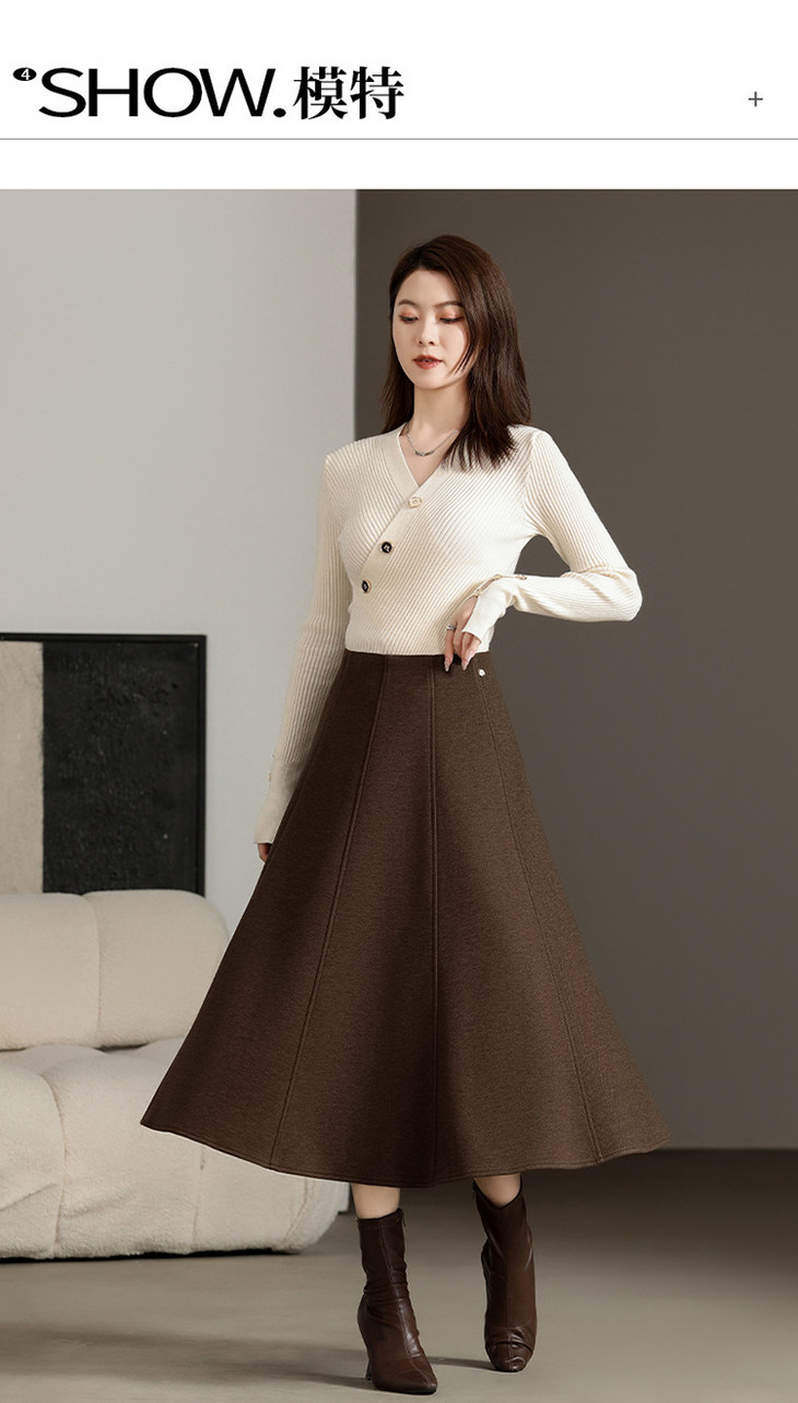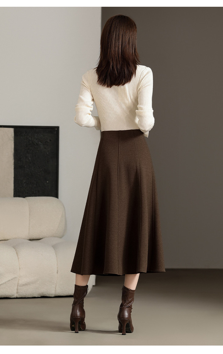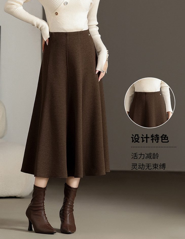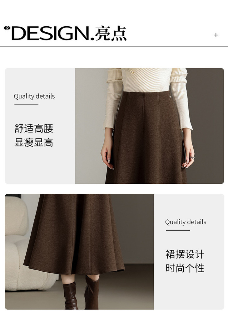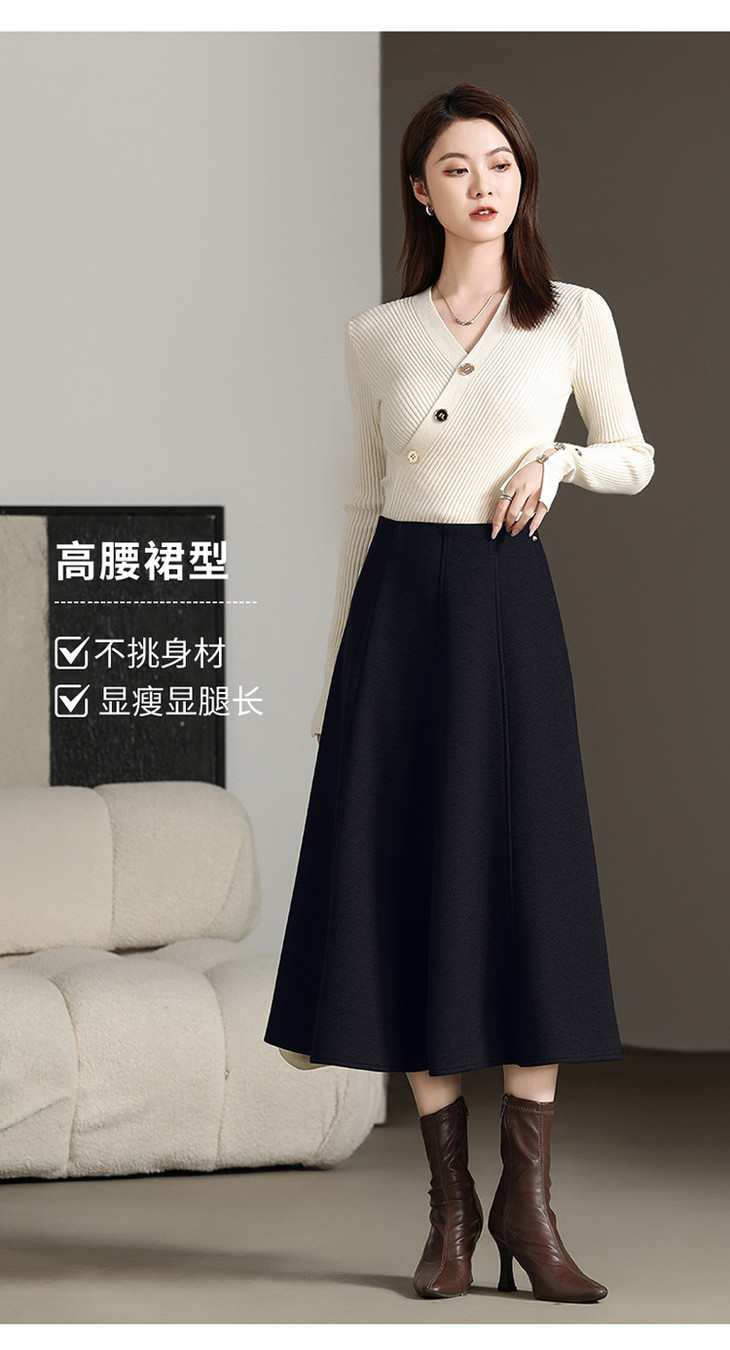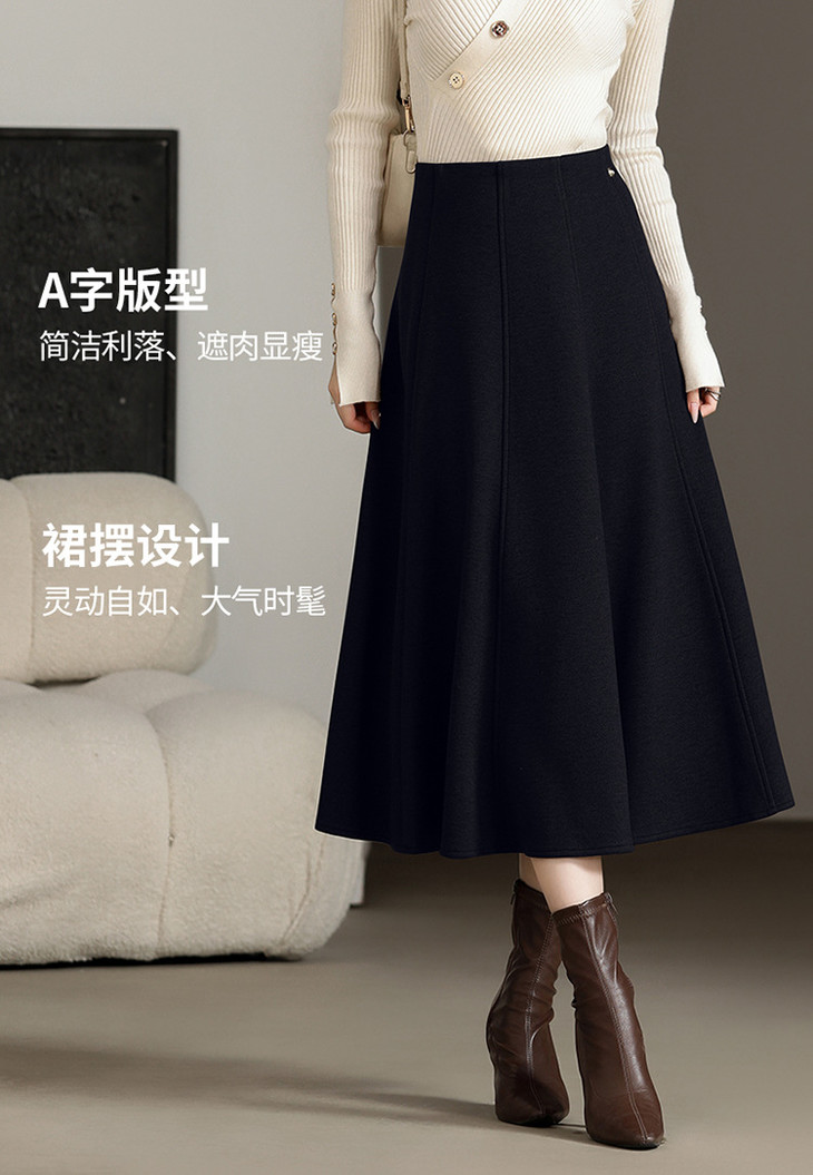 羊毛裙秋冬季新款,高腰显瘦中长款半身裙YGLR7073