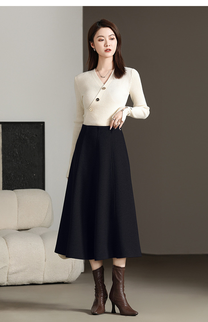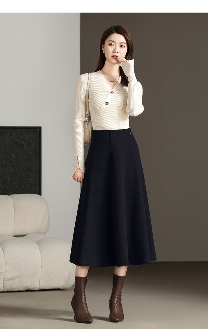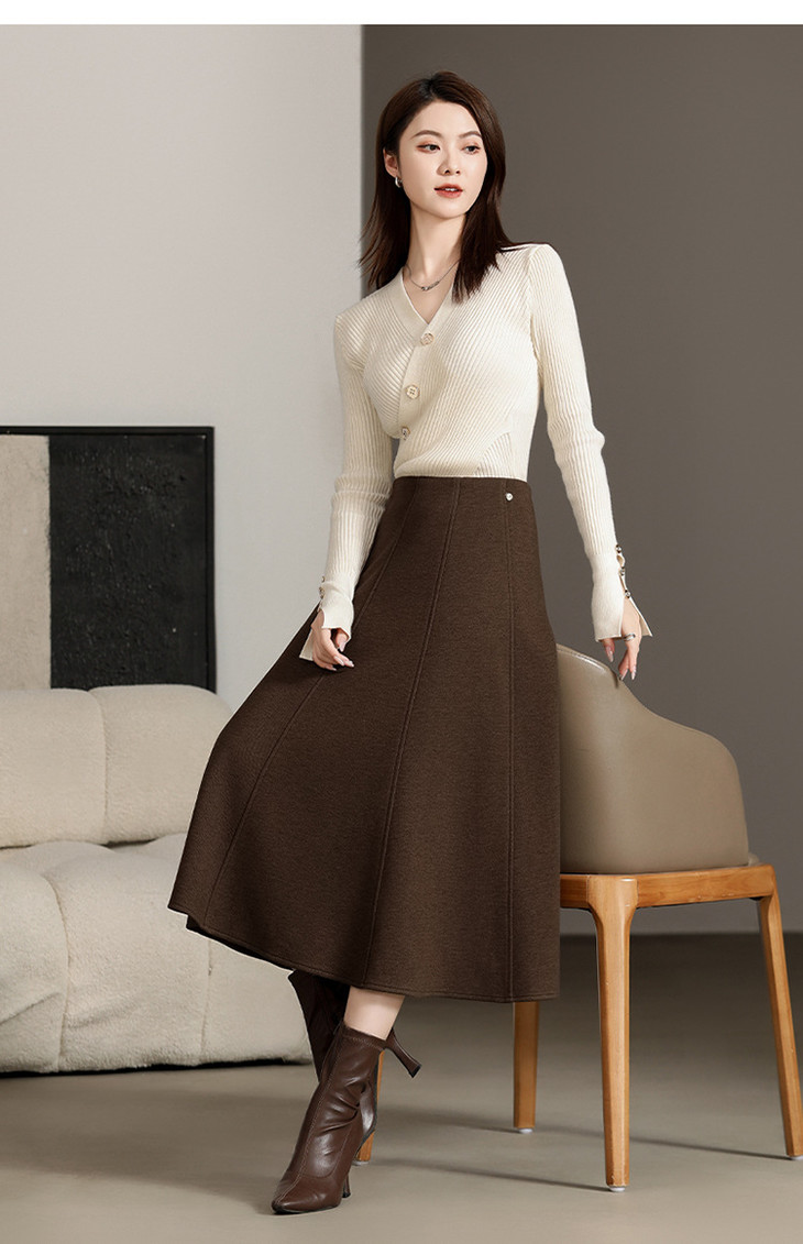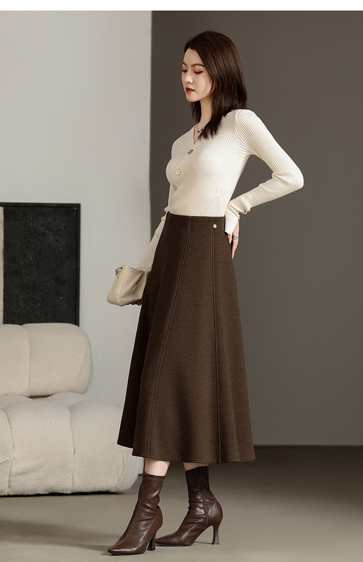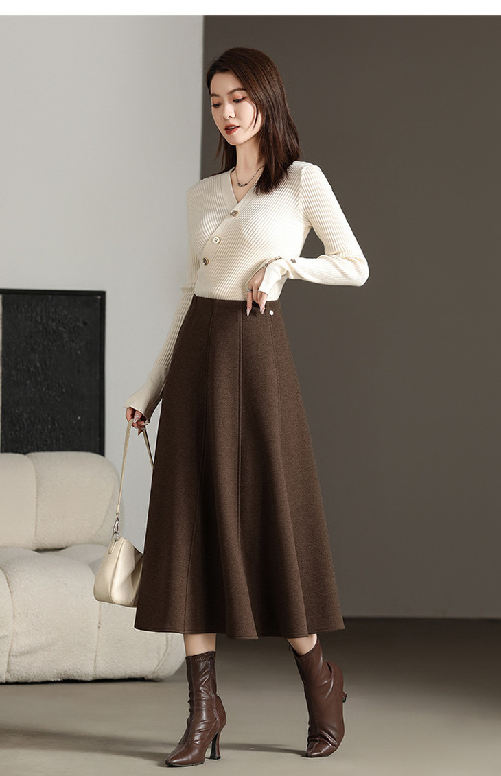 羊毛裙秋冬季新款,高腰显瘦中长款半身裙YGLR7073