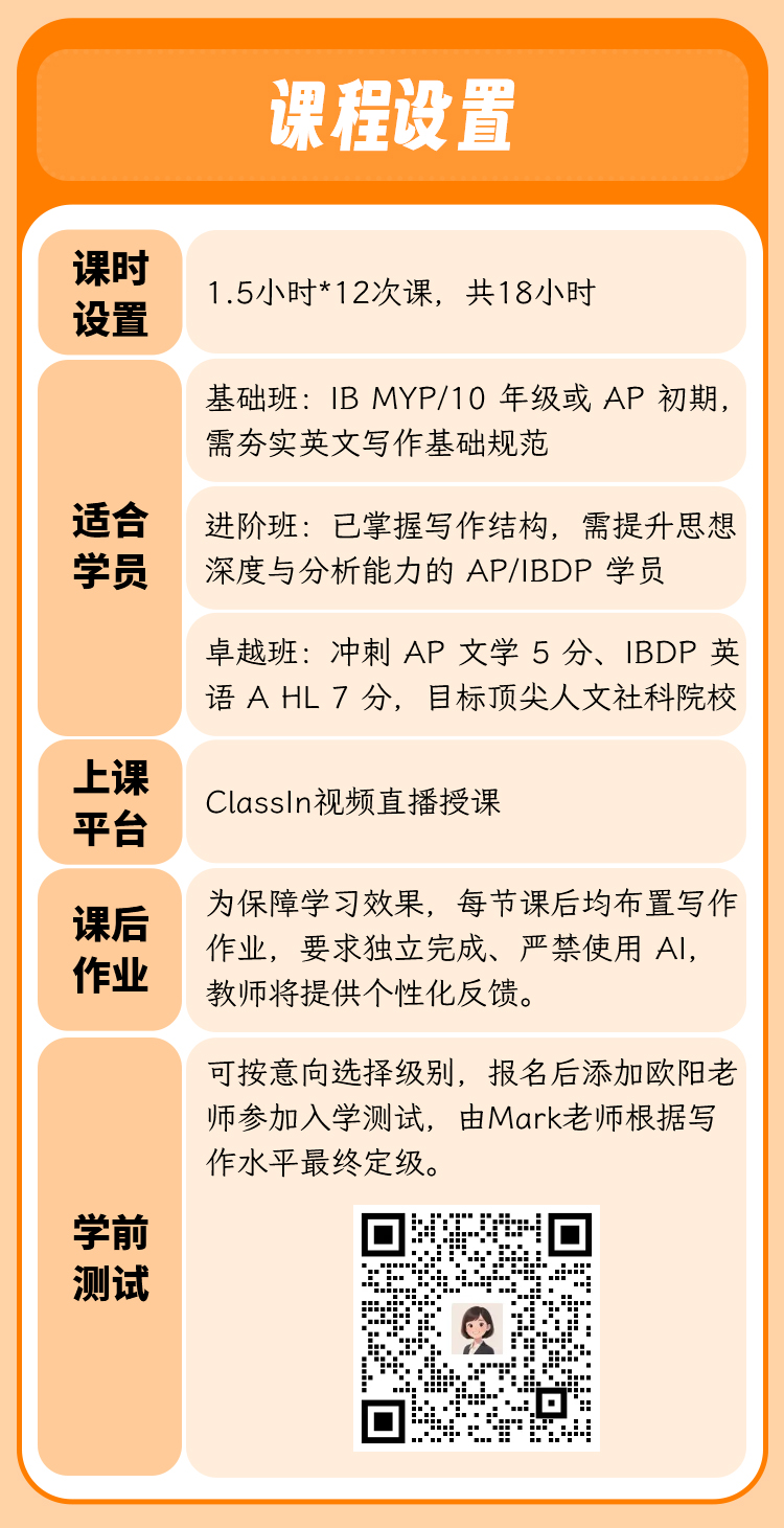 2026年 暑假班 国际高中英语文学精读&写作课