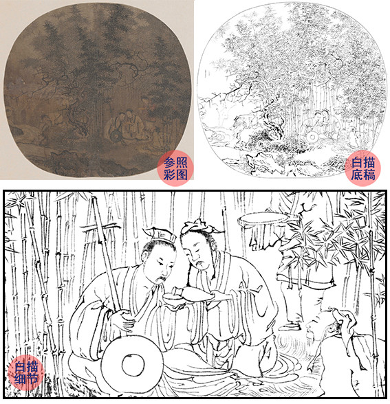 宋画人物小品白描底稿-佚名-《竹林拨阮图》-多种白描尺寸可选-GD30