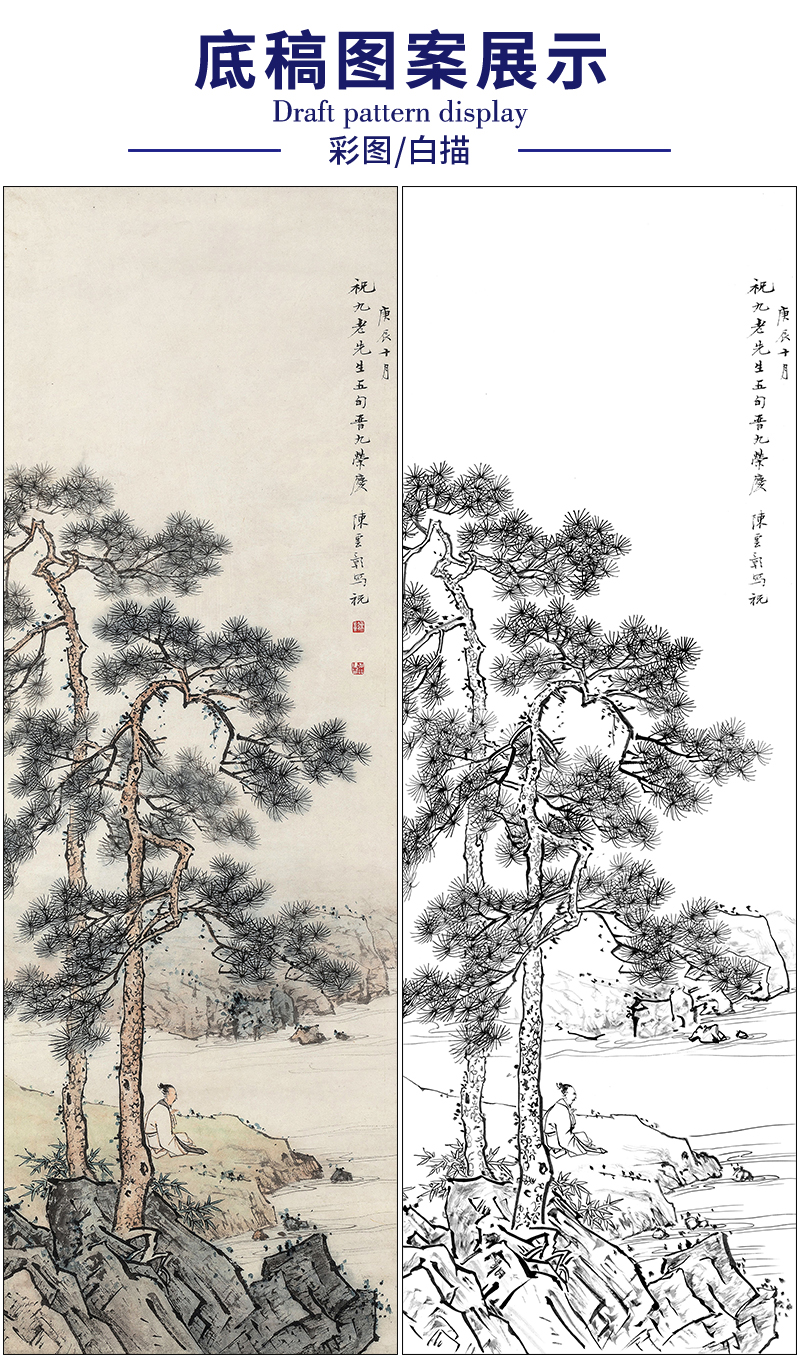 陈少梅山水人物工笔画白描底稿《松下高士图》临摹勾线高清打印稿SM45
