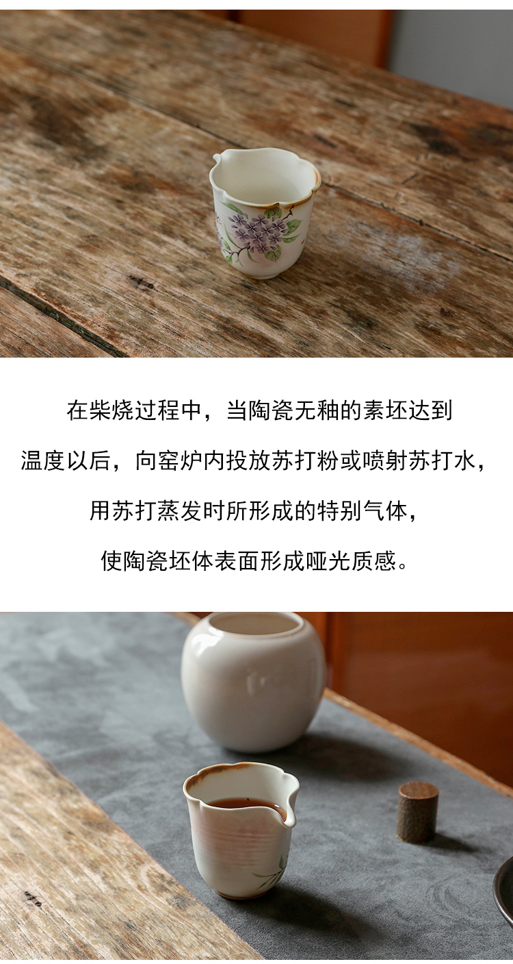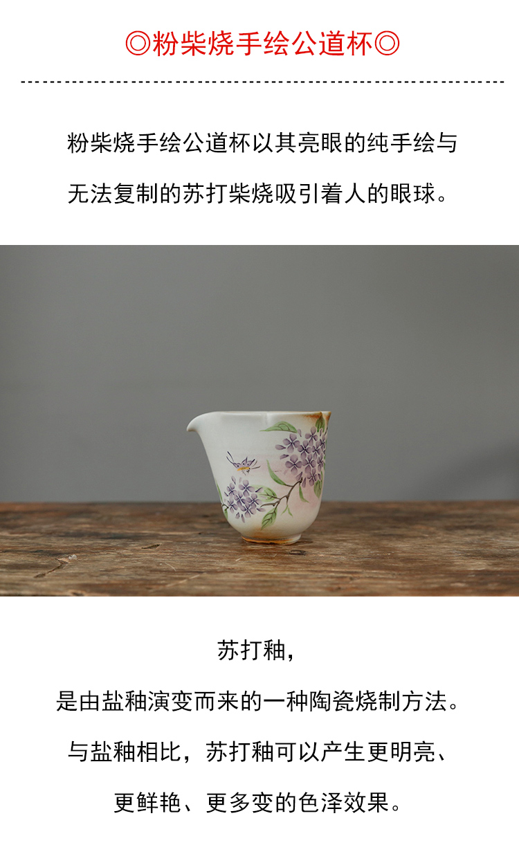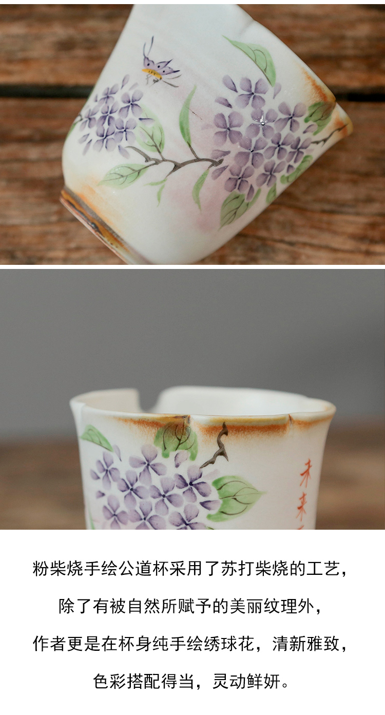 茶香记 粉柴烧手绘公道杯 全手绘 绣球花 苏打柴烧 精致细腻 鲜妍灵动 趣味性 随机性 茶具