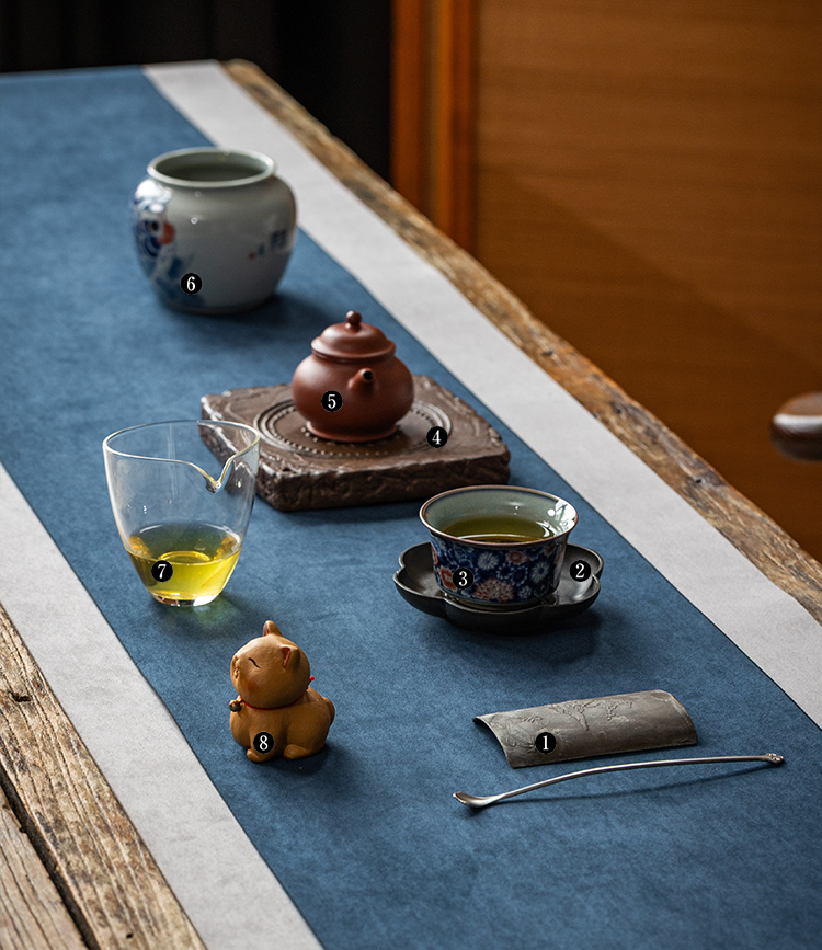 茶香记仿旧古锡浮雕茶则两件套茶坞茶匙茶勺茶荷茶道配件