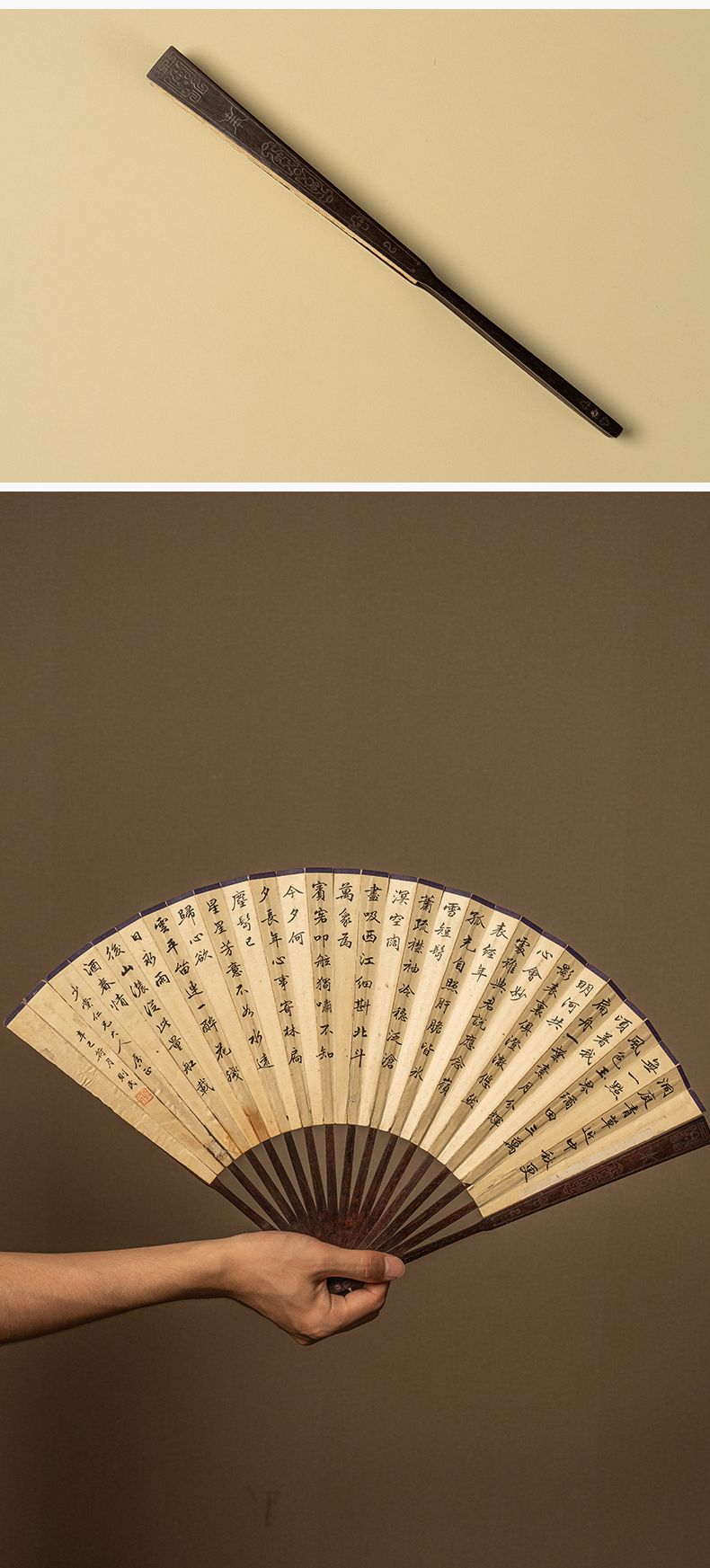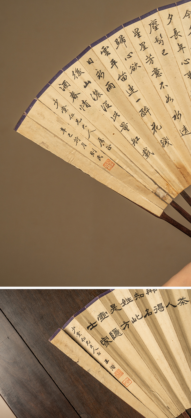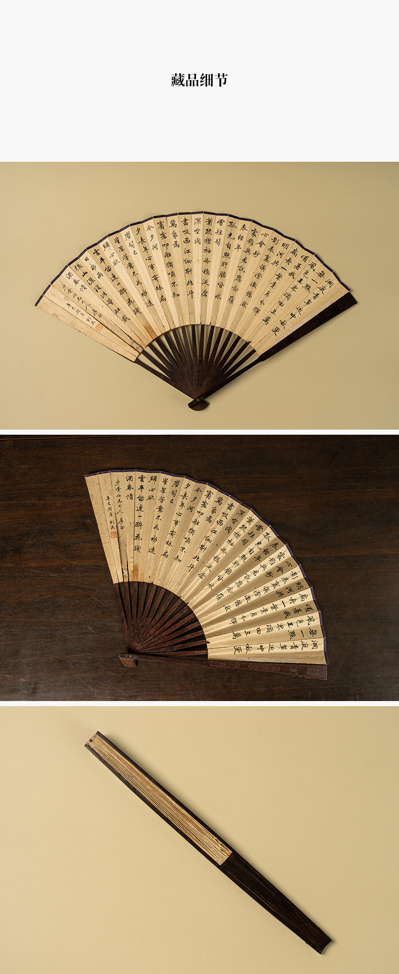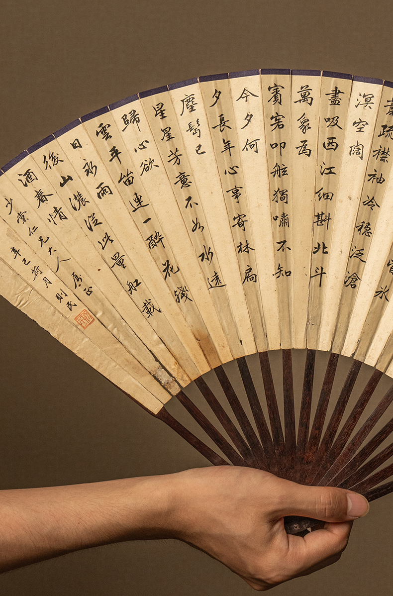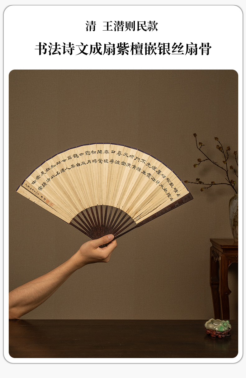 清 王潜则民款书法诗文成扇紫檀嵌银丝扇骨