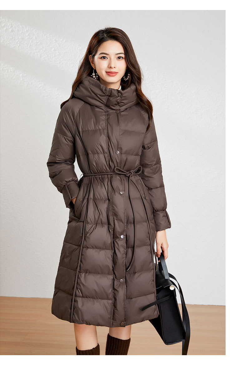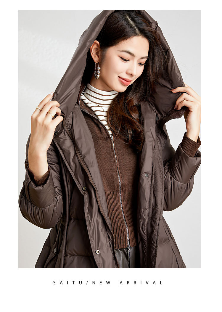 【高货kbnq】全新升级【铂金会员910/天猫1239/差价329】(22606) 洛诗琳新款简约风时尚修身90绒加厚保暖连帽冬天外套