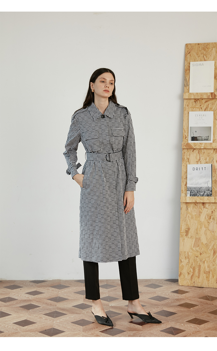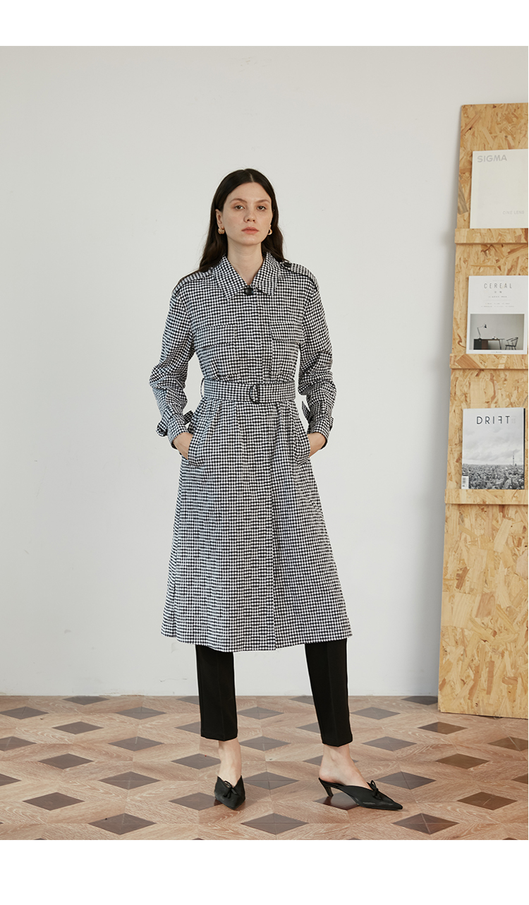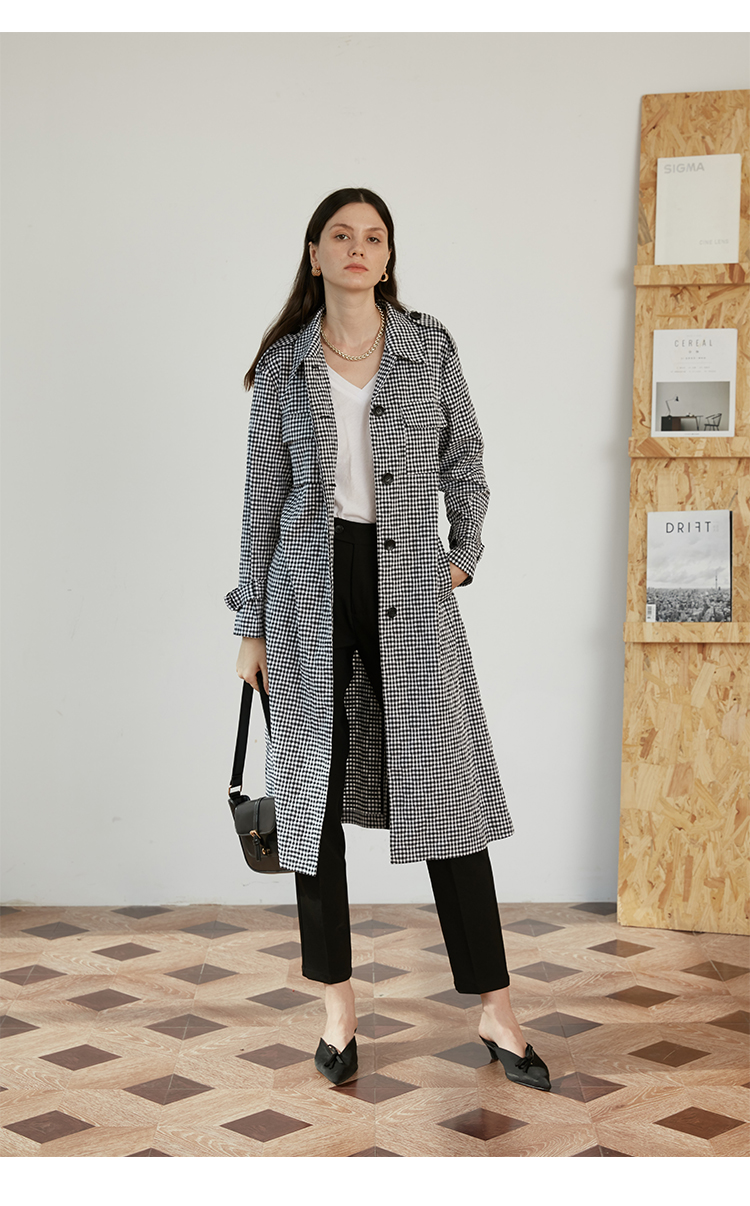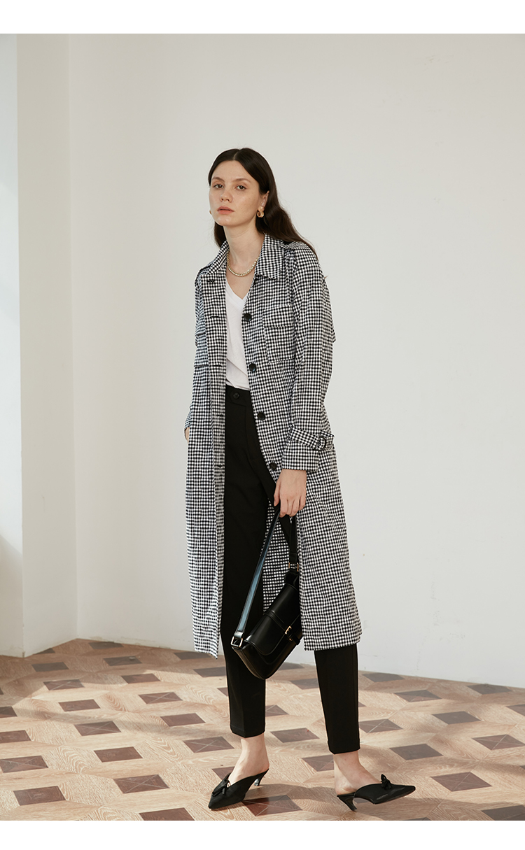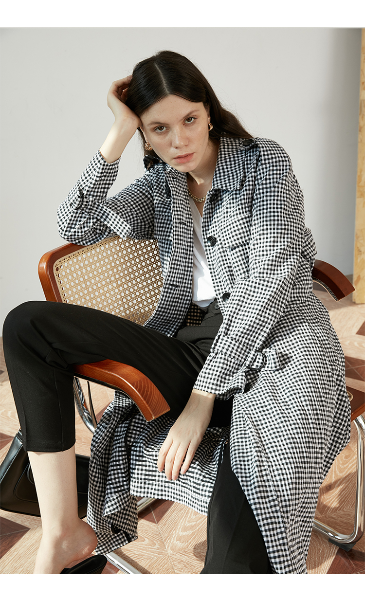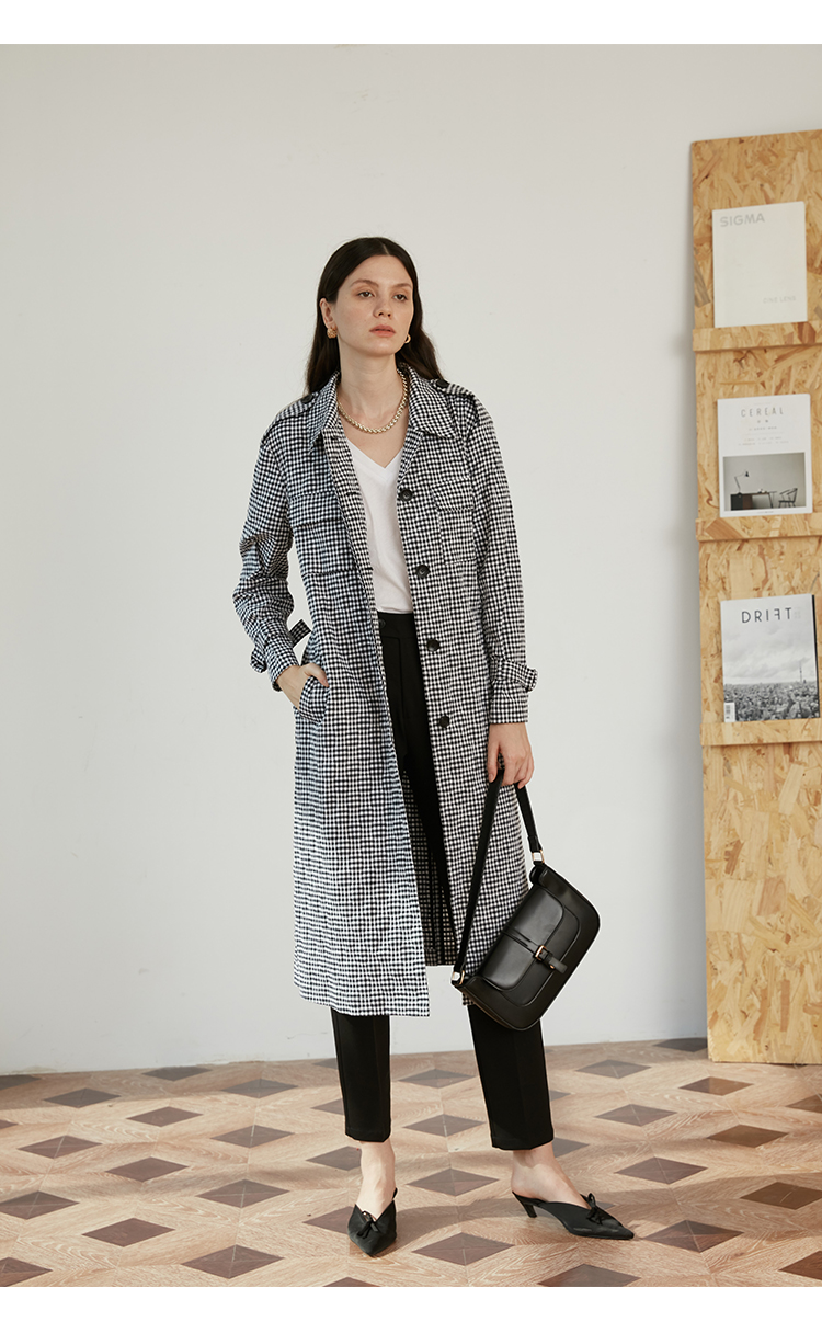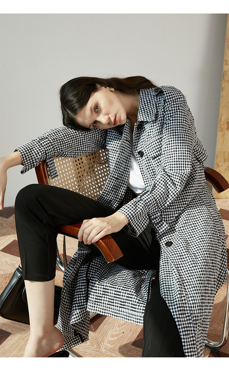 打造都市新女性, 一件格纹风衣撑得起秋日的端庄优雅。 区别大格纹的张力和纯色系严肃, 法式清新的黑白维系格, 以du特的纹理, 让人在浓郁斑斓的秋季中释放无可取代的文雅气。 含蓄不张扬~ 多一份知性干练, 无论在任何场合都能展现出优雅大方姿态。 中性的修身肩章版型和加长的长度, 造就了当下推崇的gentlewoman style美学。 过膝的款式也是秋日里的保暖佳品, 上身十分挺拔提升精气神。 用它搭配打底衫 衬衫、 牛仔裤...英伦与都市的碰撞 打造一份简单随性的时髦。既不沉闷, 又能低调的于随性中葆有知识分子的文艺。 短靴一蹬依然够飒。 |