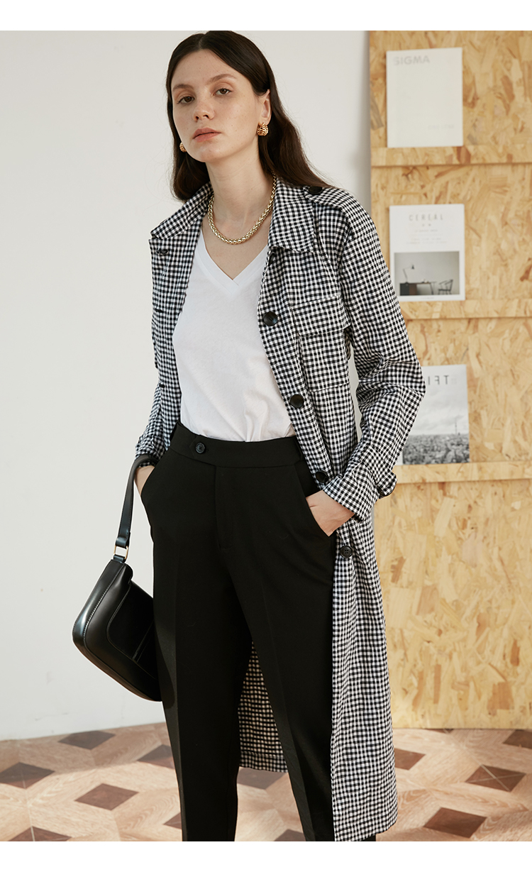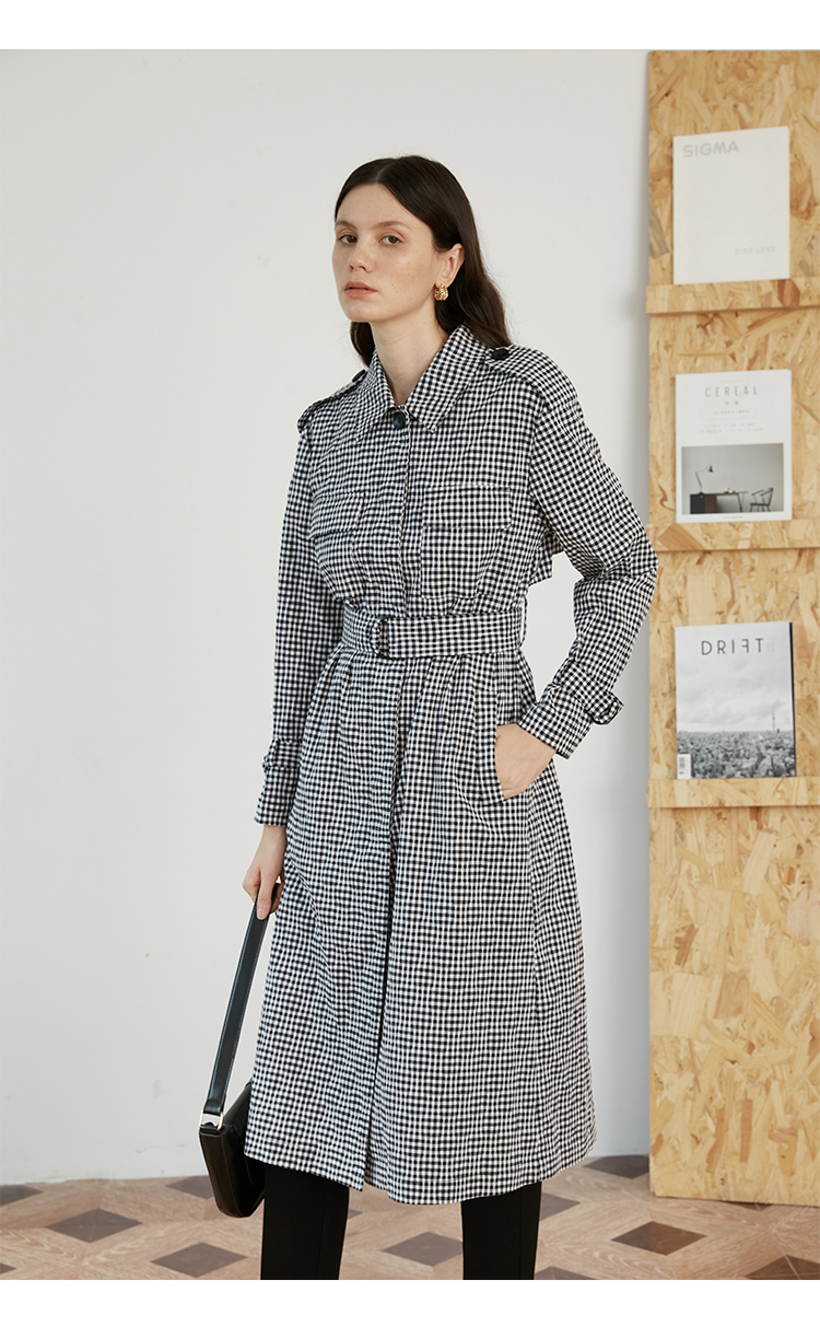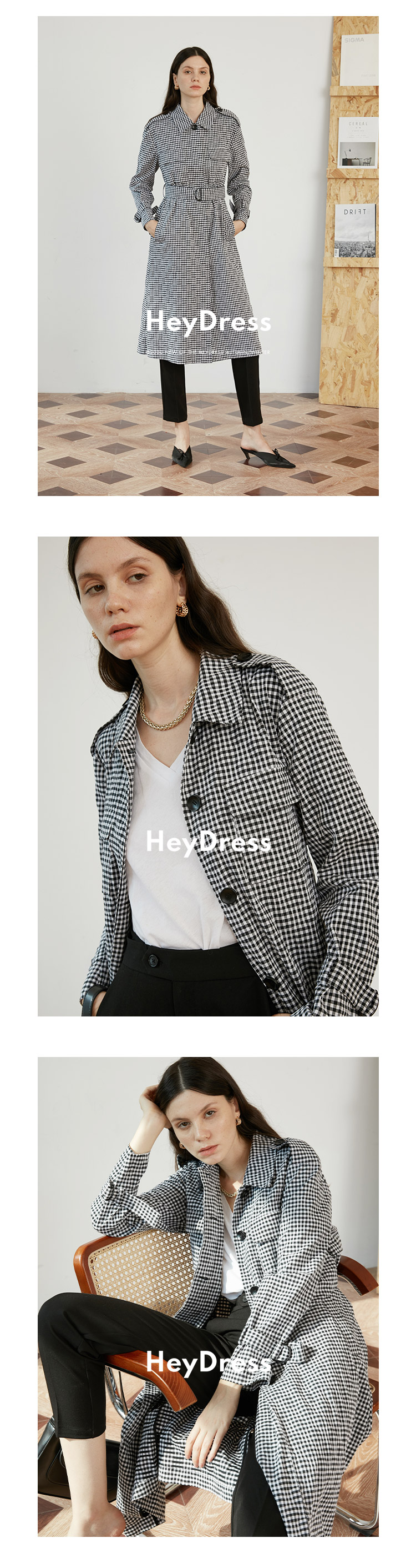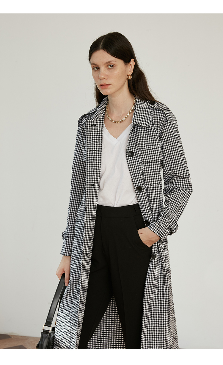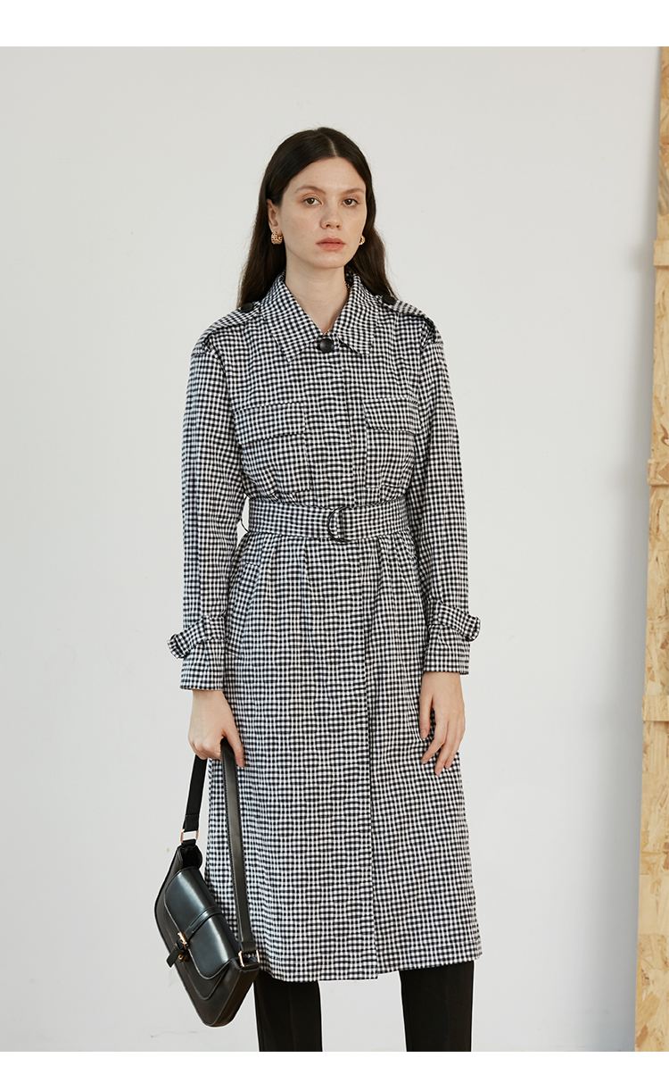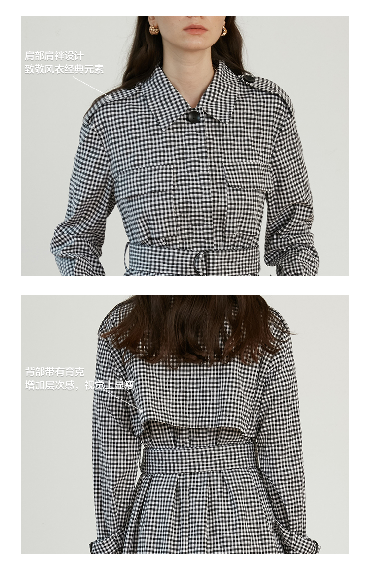 打造都市新女性, 一件格纹风衣撑得起秋日的端庄优雅。 区别大格纹的张力和纯色系严肃, 法式清新的黑白维系格, 以du特的纹理, 让人在浓郁斑斓的秋季中释放无可取代的文雅气。 含蓄不张扬~ 多一份知性干练, 无论在任何场合都能展现出优雅大方姿态。 中性的修身肩章版型和加长的长度, 造就了当下推崇的gentlewoman style美学。 过膝的款式也是秋日里的保暖佳品, 上身十分挺拔提升精气神。 用它搭配打底衫 衬衫、 牛仔裤...英伦与都市的碰撞 打造一份简单随性的时髦。既不沉闷, 又能低调的于随性中葆有知识分子的文艺。 短靴一蹬依然够飒。 |