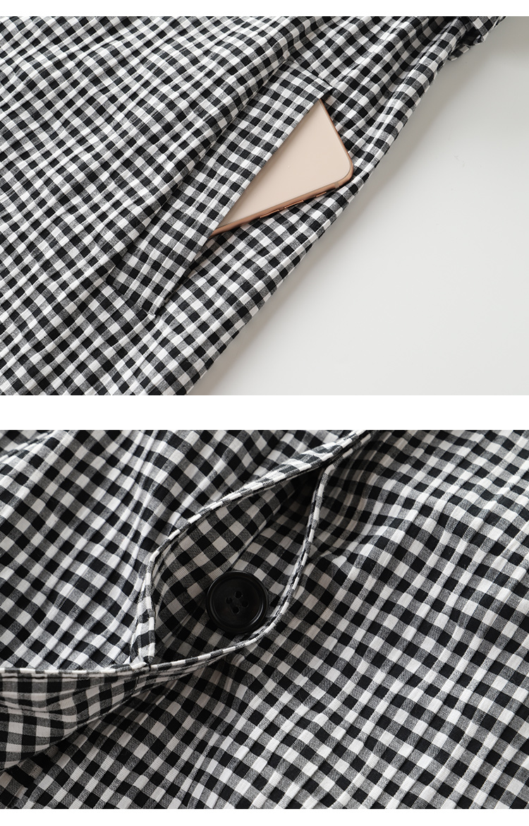 面料成分/Composition 面料名称:纯棉棋盘格纹面料 面料成分:100%棉