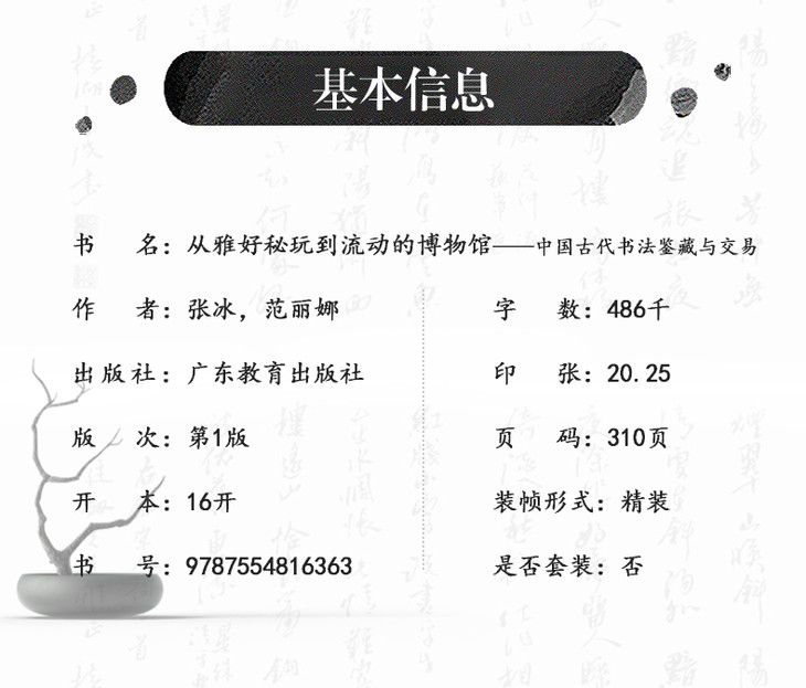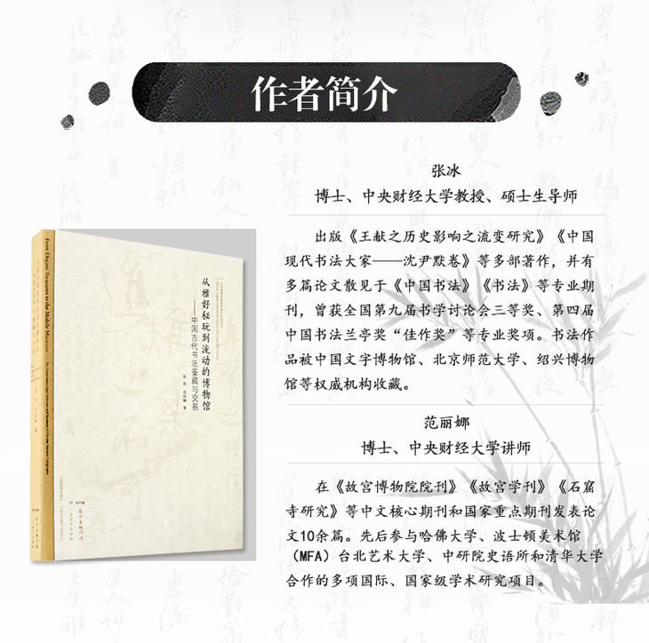 利用跨学科的社会经济学视角来介入书法史,张冰和范丽娜将书法作为文化经济交易品的发展历程,撰写了一部引人入胜的学术著作。本书在书法史学界开辟了新的天地,作者用他们广泛的探讨,为中国最伟大艺术形式的研究创建了一个新的视角。