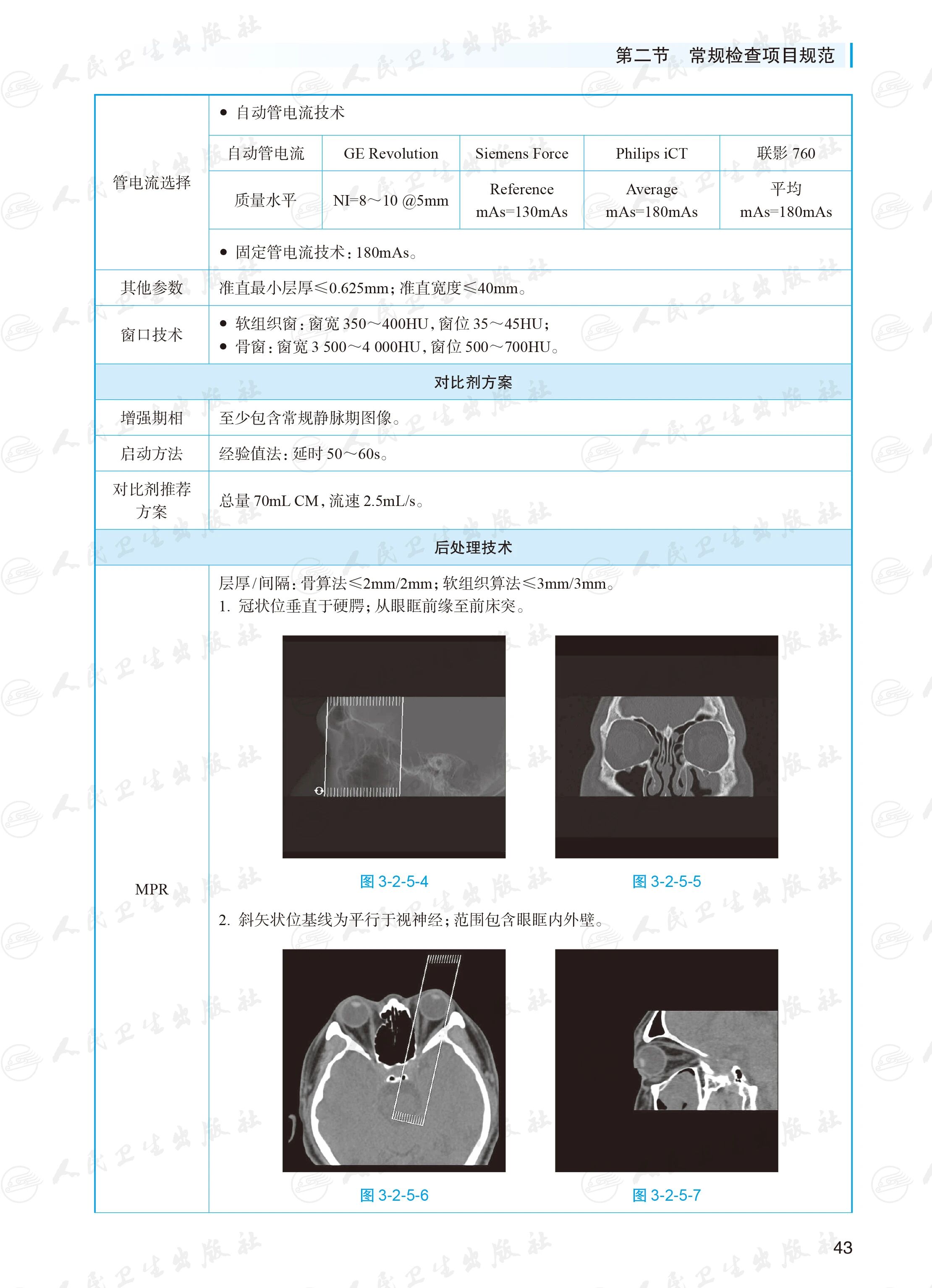 涵盖全身各部位CT检查项目,每个检查项目分为技术要点、质量要求和防护要求三部分,涉及扫描范围、成像参数、对比剂注射方案、重建算法、后处理方法、标准图像和伪影等。