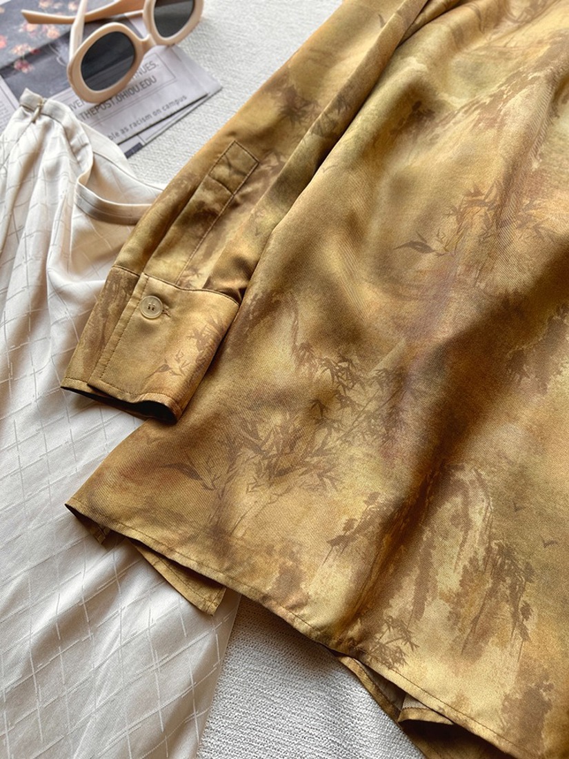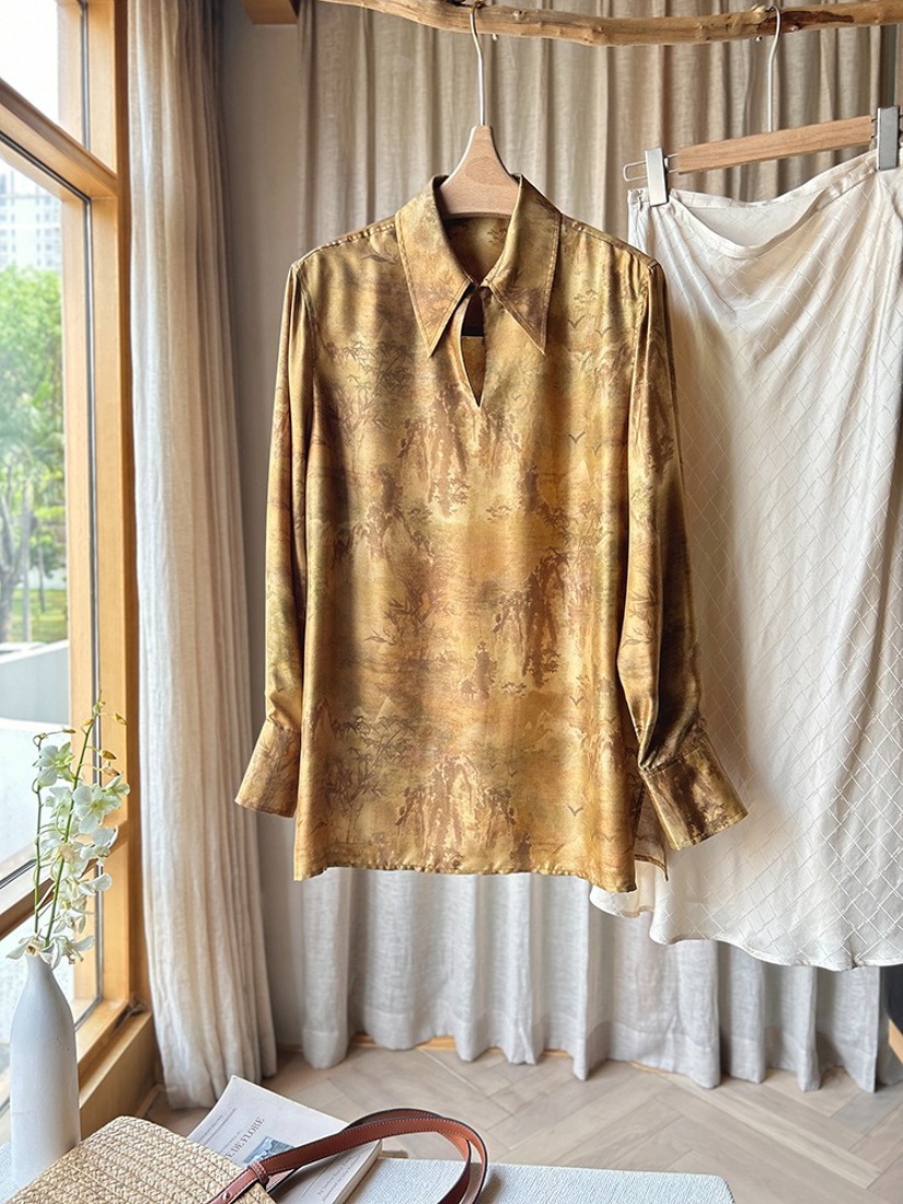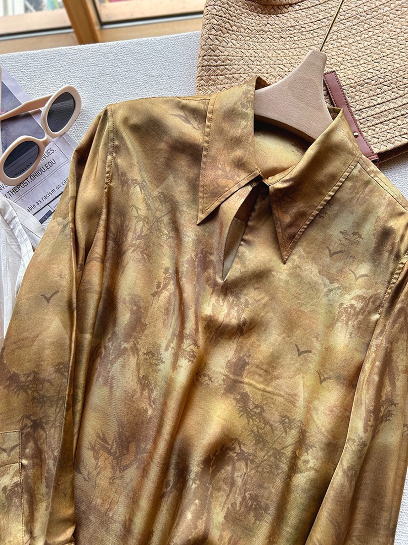 【包邮发顺丰】54742 洛诗琳夏季新款美拉德色系山水秘境真丝套头式衬衫 KDN0528