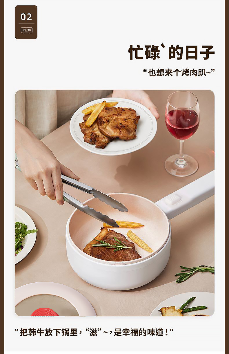 MILPICK云顾电火锅家用计时多功能一体式电煮锅电热锅炒菜不粘锅