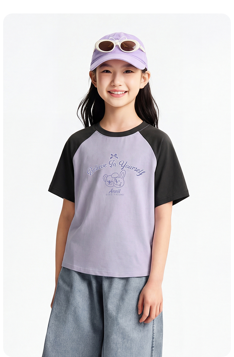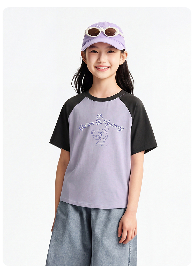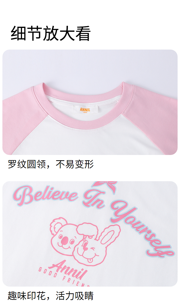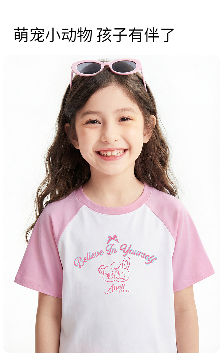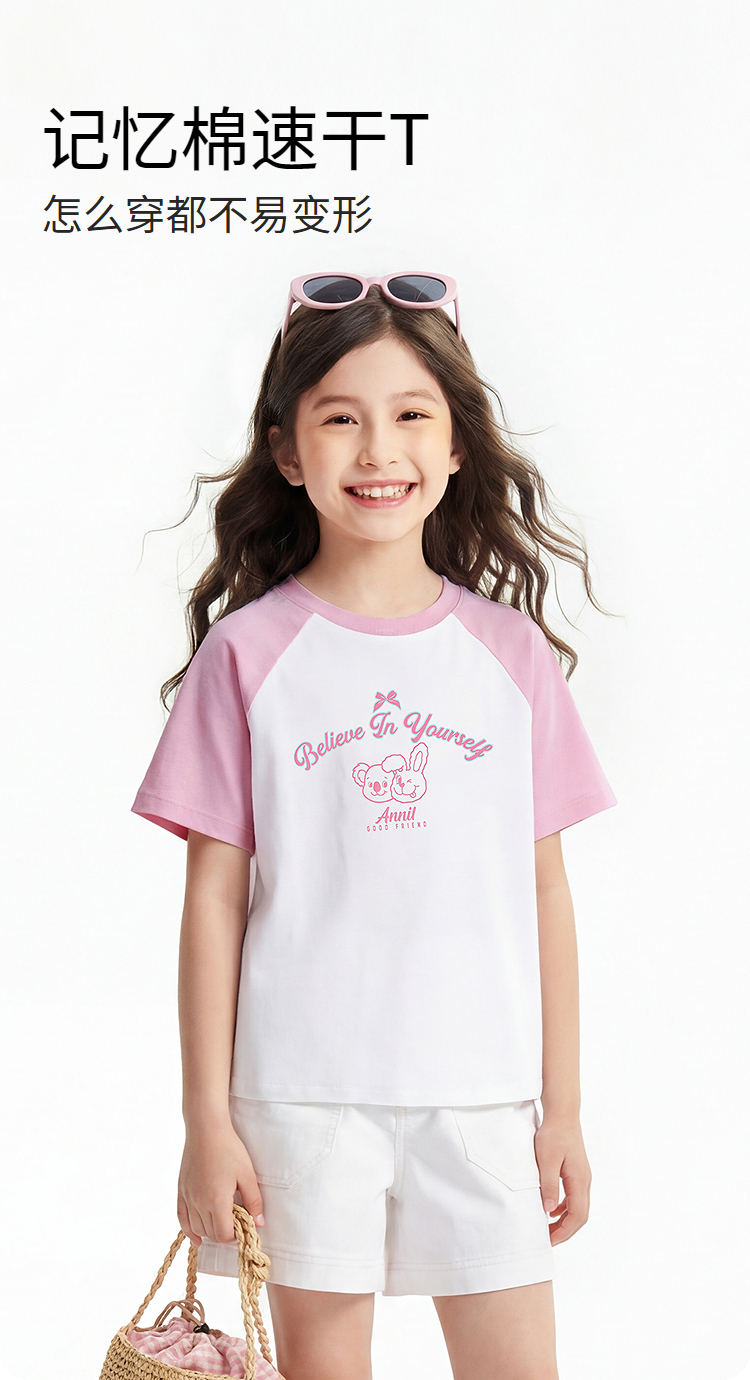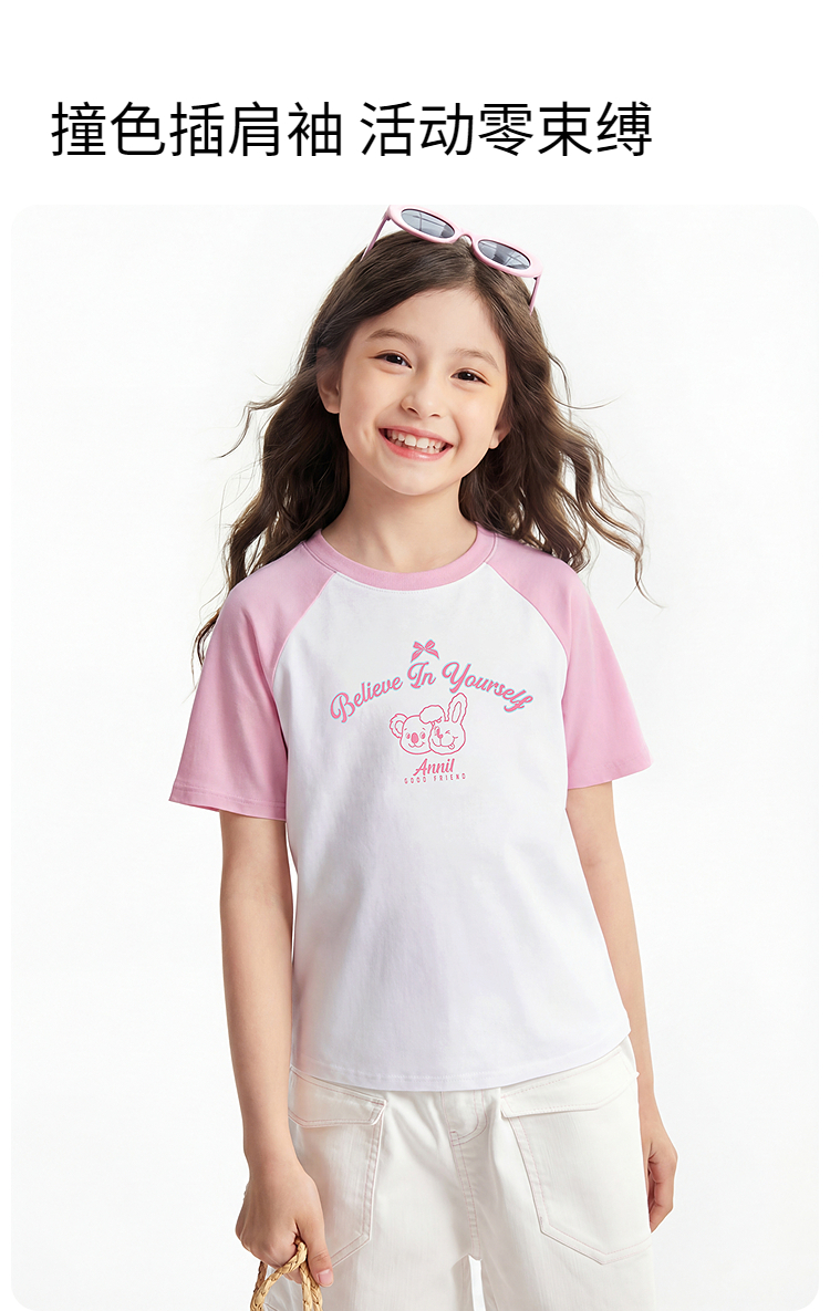 男女童圆领短袖针织衫夏季新款安奈儿童装EM621827