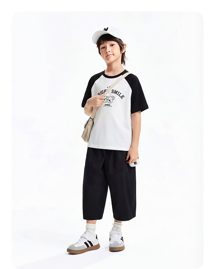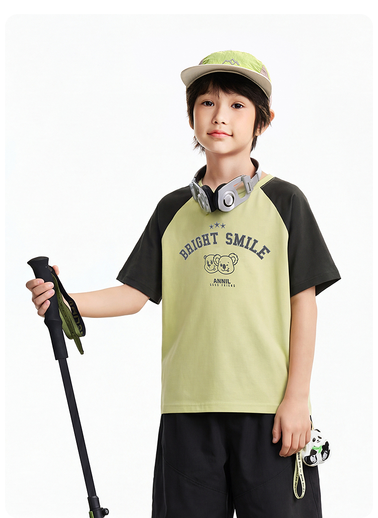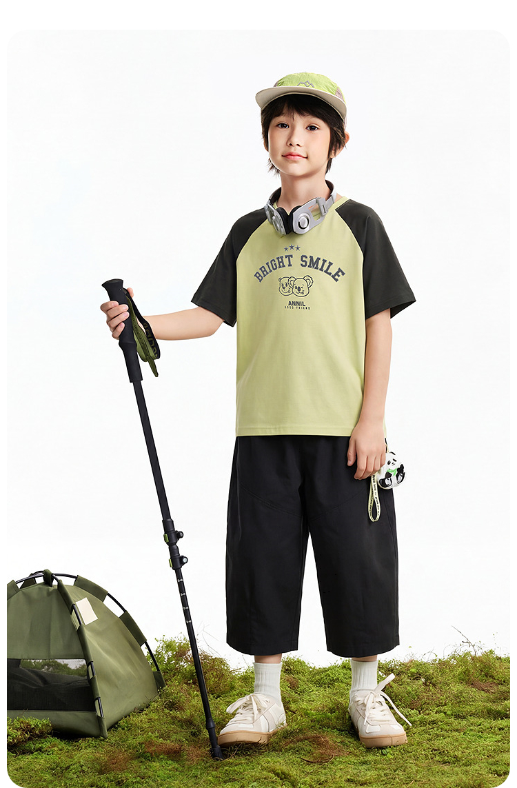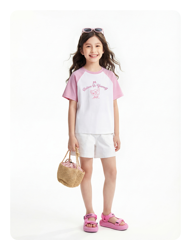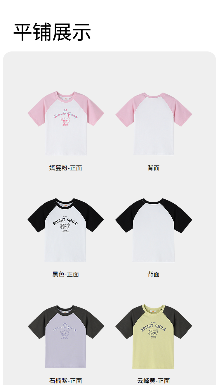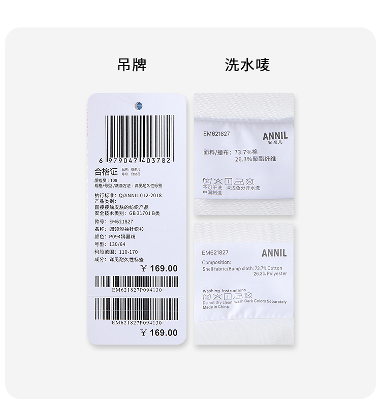 男女童圆领短袖针织衫夏季新款安奈儿童装EM621827