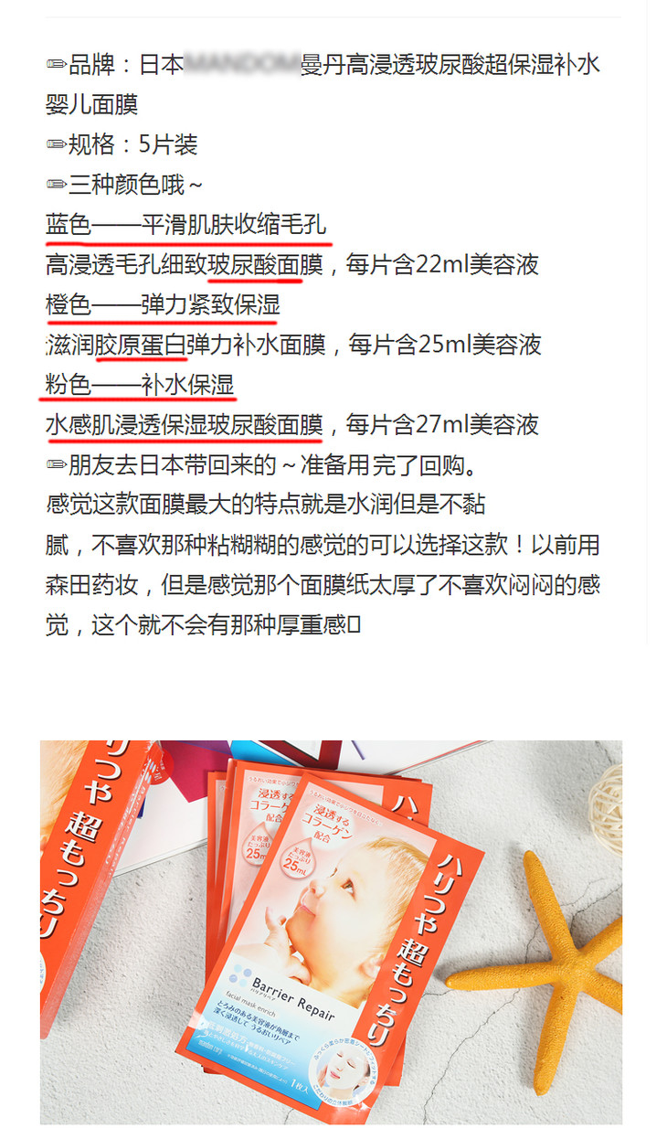 日本 曼丹婴儿肌面膜-5片(多款可选)