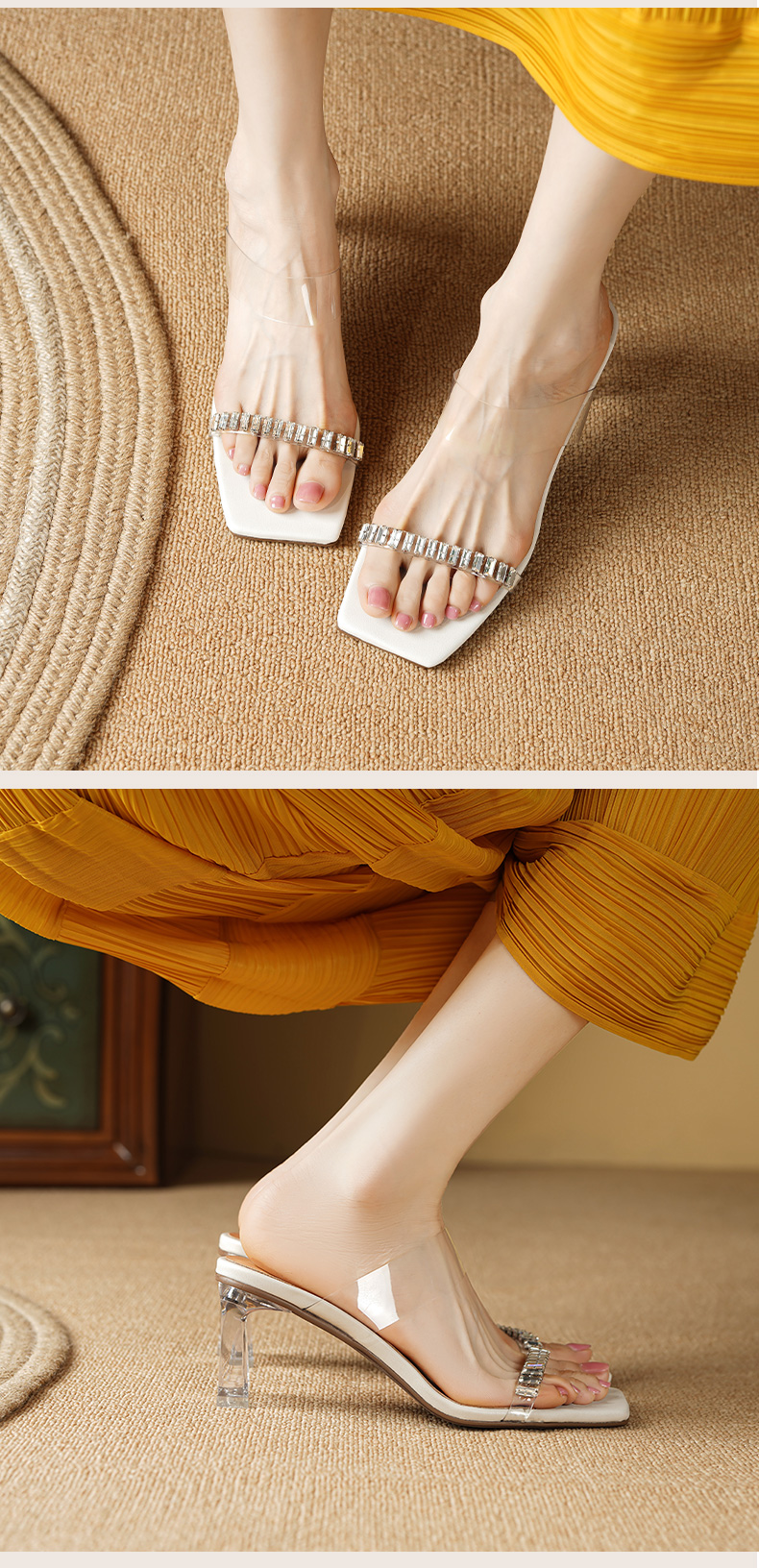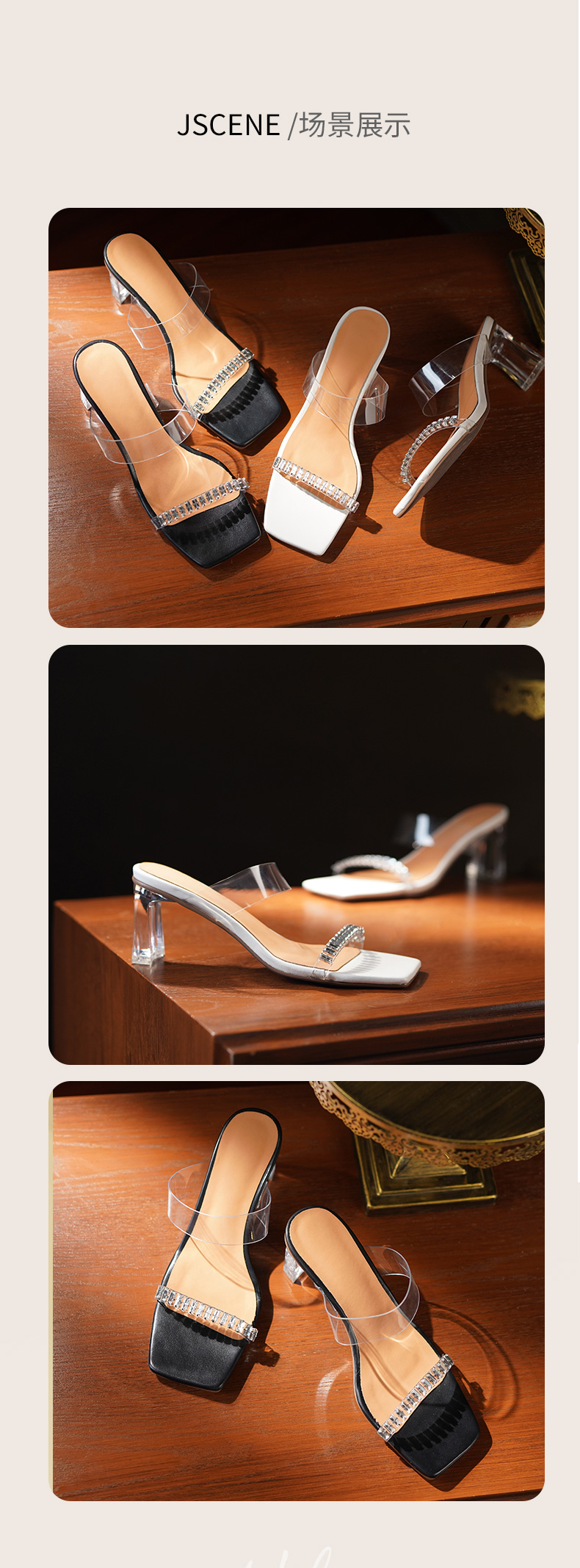 优雅百搭,水钻亮片露趾水晶跟凉拖YD-AS311