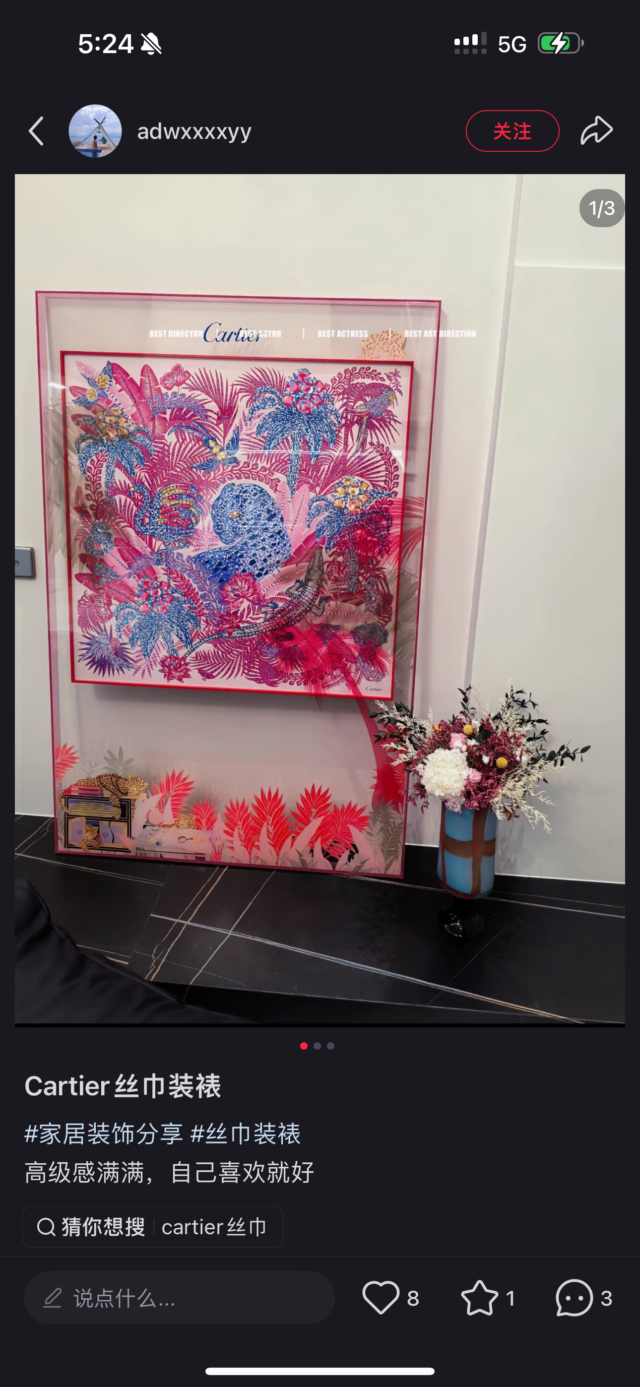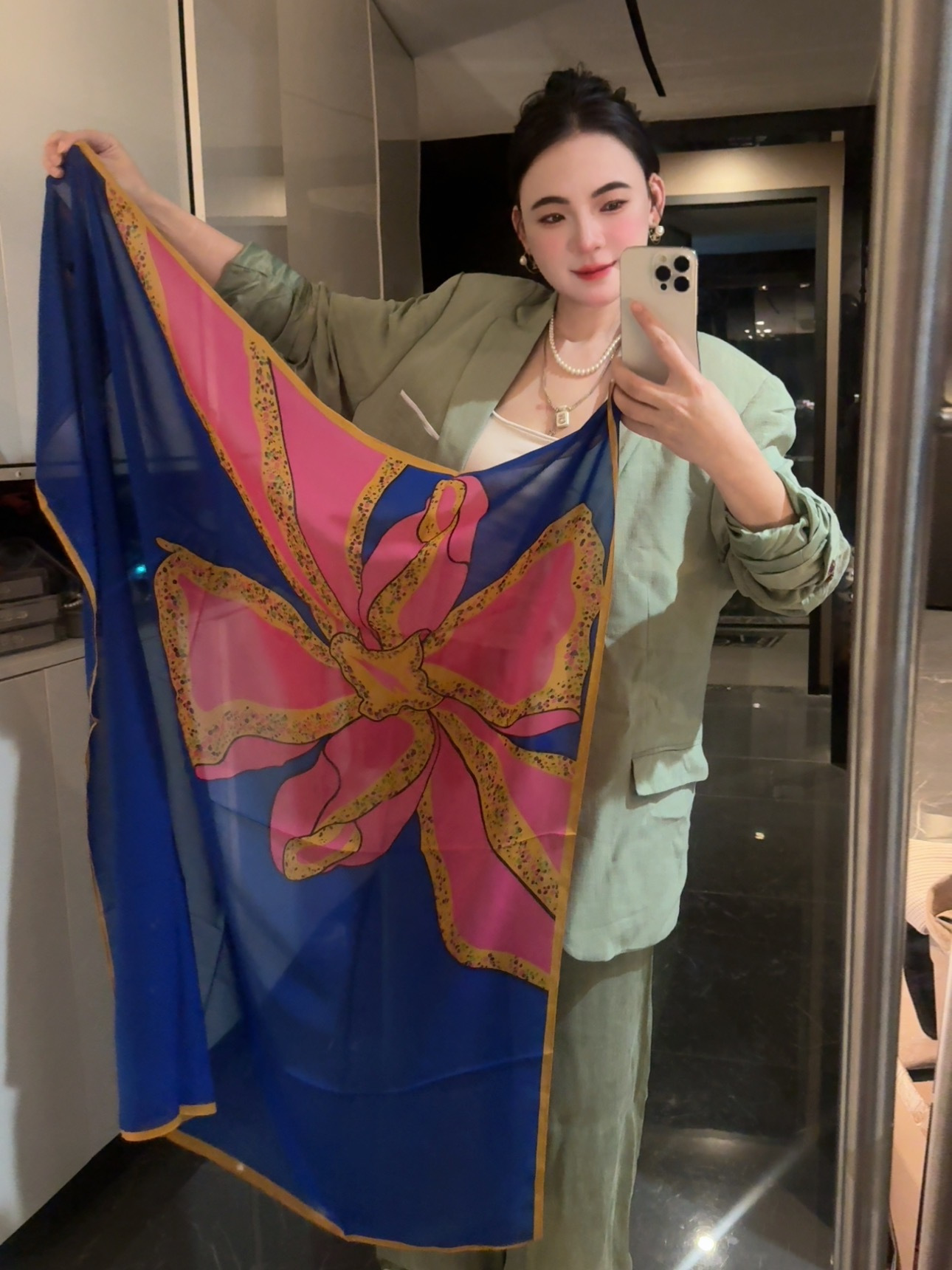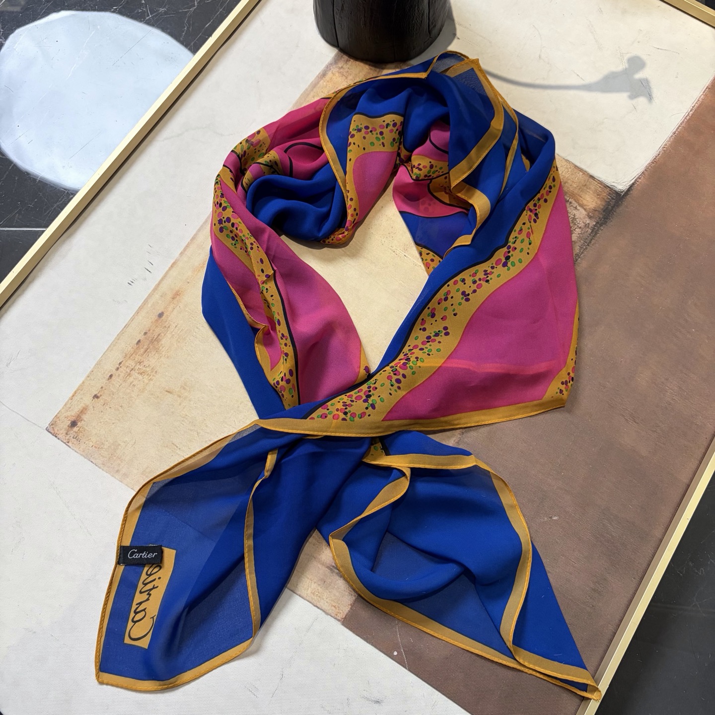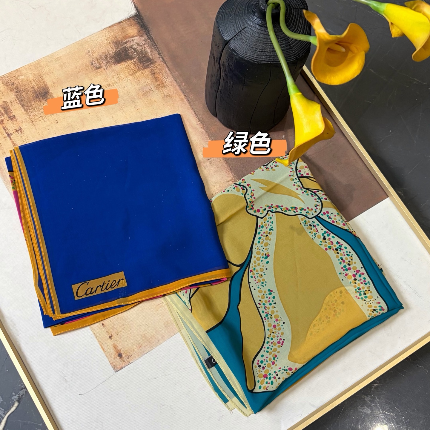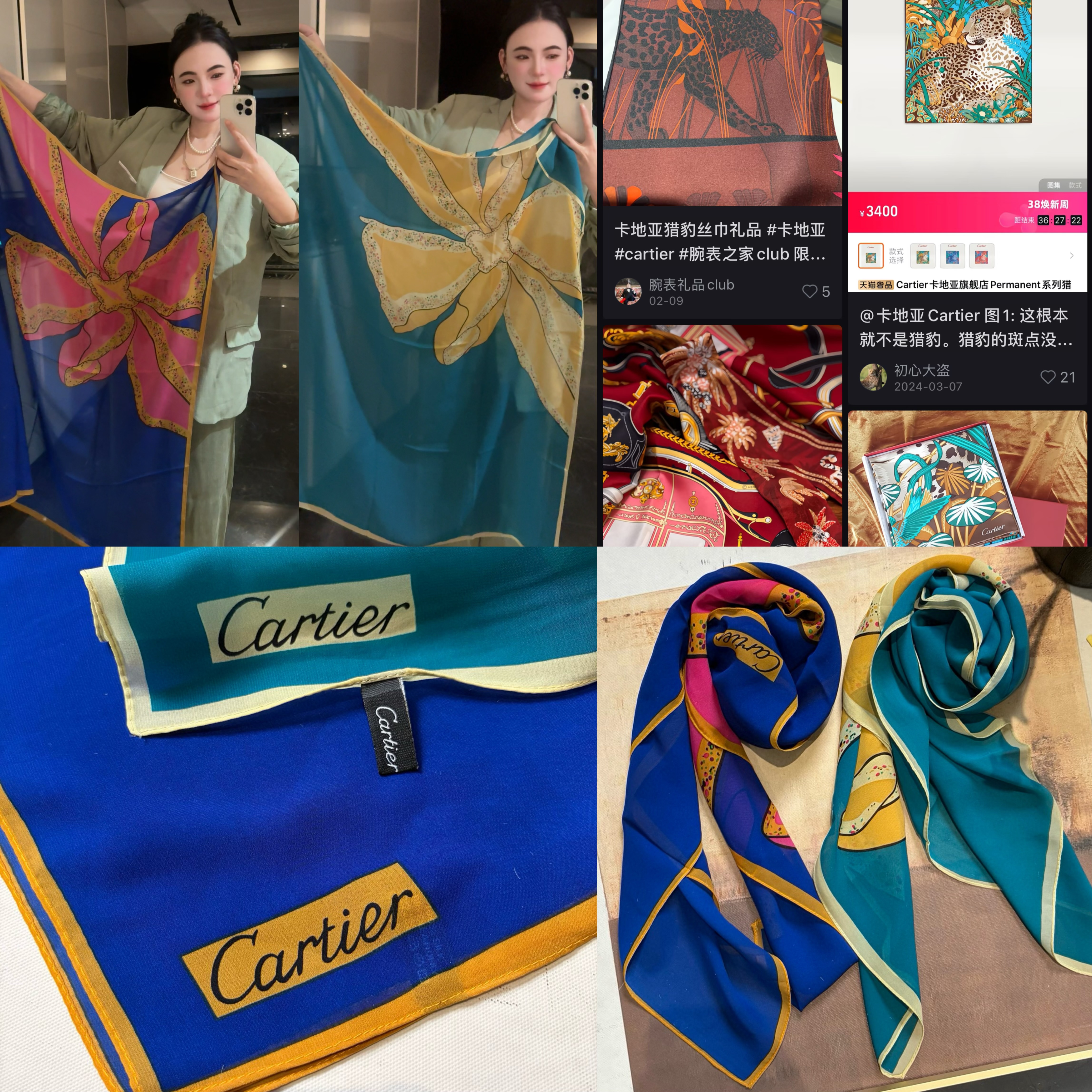 正品‼️ 下单送🎁手提袋一个🉐真丝方巾!不仅仅可以佩戴还可以婊画框🖼️!正品!印花薄款100%真丝巾 采用轻薄柔软的真丝材质,表面光滑有光泽感。抽象花卉+彩色点缀,复古又活泼,尺寸约105x105,丝巾带有“Cartier”标识!这类丝巾通常作为服饰搭配单品,可用于颈部装饰、包袋点缀等,适用于日常穿搭或轻正式场合的造型提升。数量稀少 秒完无补‼️