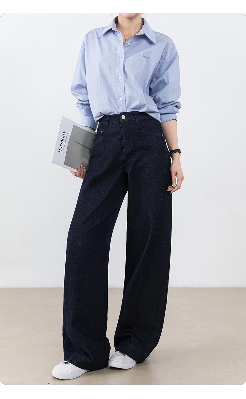雀说防掉色牛直筒阔腿裤女弯刀宽松镰刀裤2025新款时髦显瘦香蕉裤子ALW52122