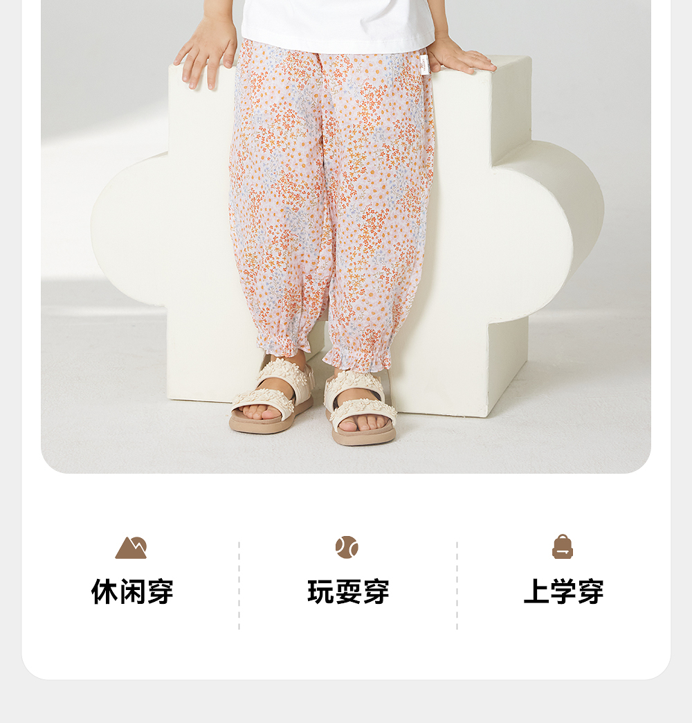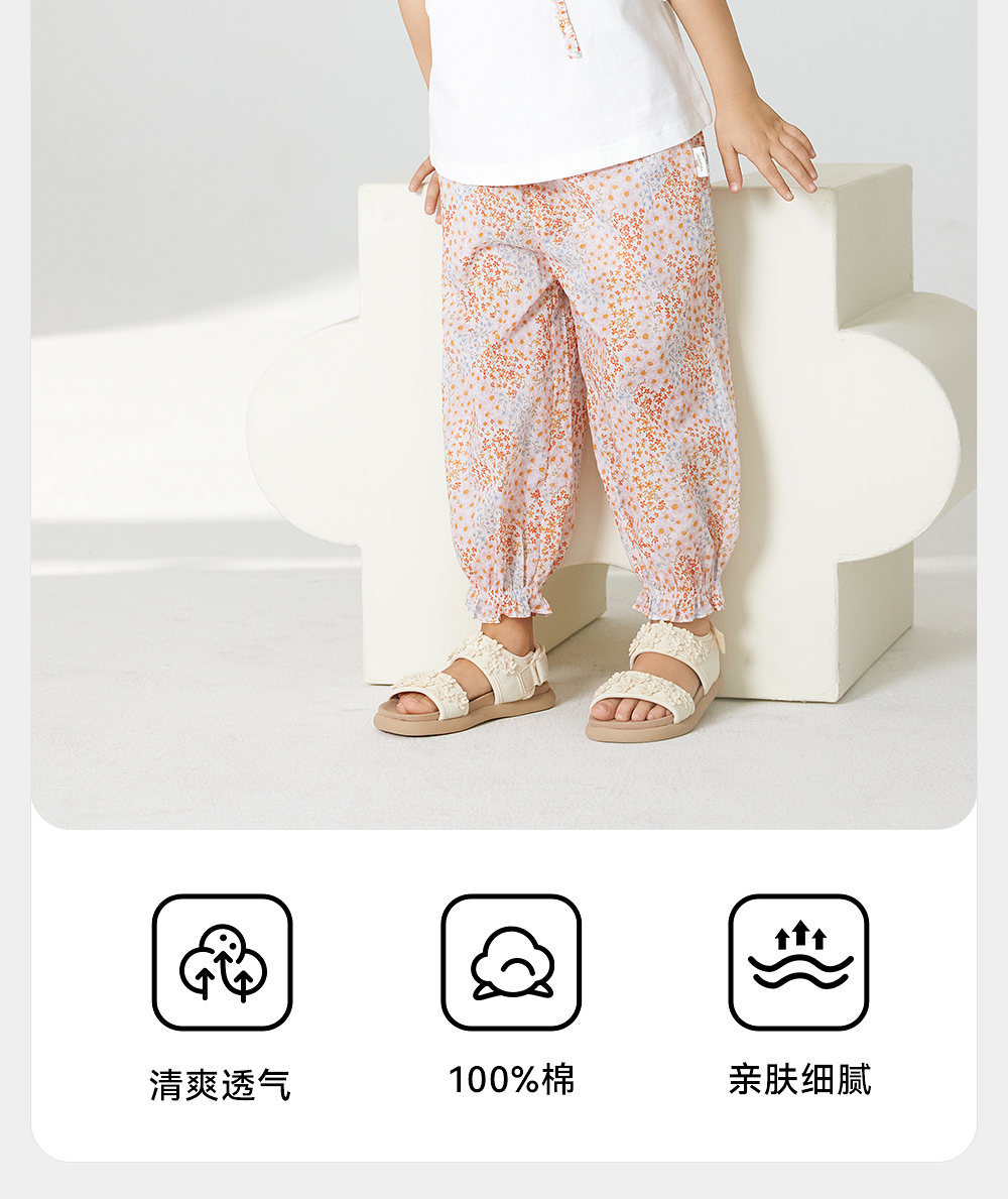 【商场同款】英氏儿童裤子夏季透气百搭女童防蚊裤纯棉2025新款