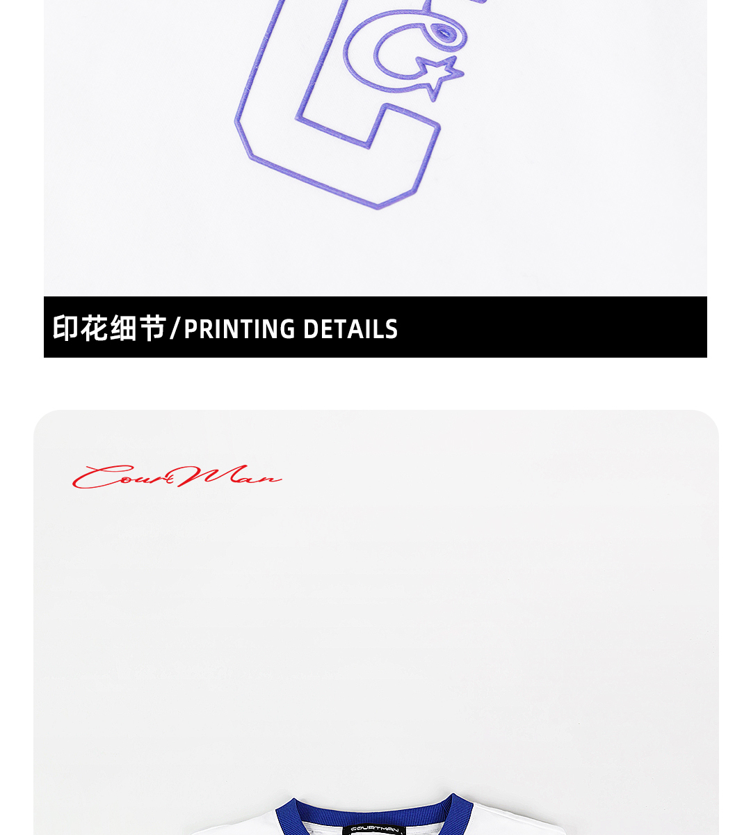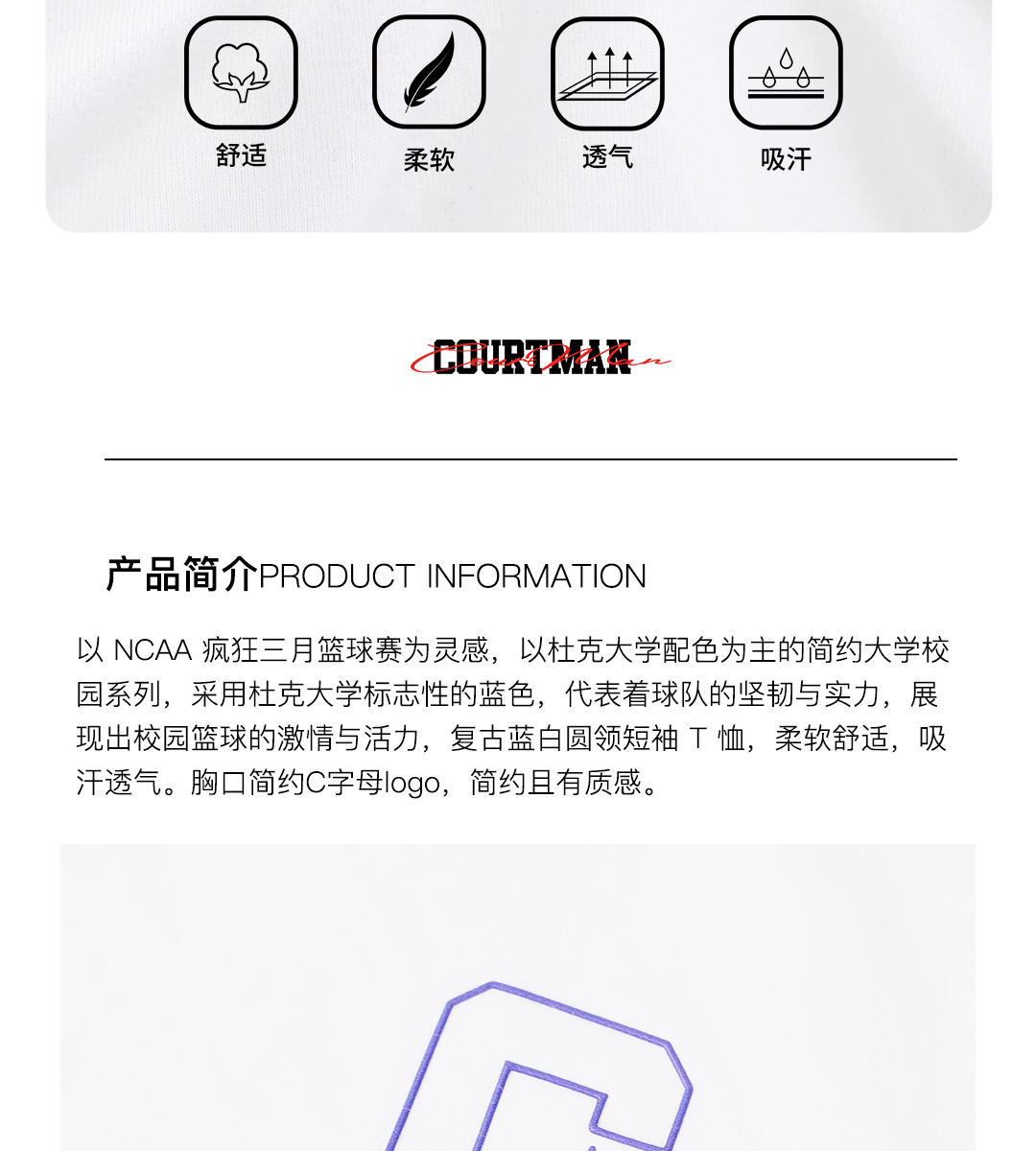 COURTMAN野球帝运动休闲T恤男女同款美式篮球短袖C标螺纹系列款